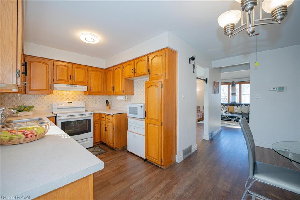 Amazing opportunity to own a 4-level side-split Detached in a vibrant community of Kitchener. Spacious living/Dining combined room w/ laminate fooring & full of sunlight. Separate Family room w/ gas freplace, laminate flooring & w/o to deck. Eat-in kitchen combined w/breakfast area. Full 3 pc washroom on main foor. 2nd foor master bedroom w/ laminate fooring & closet. 2 other good sized bedrooms & 3pc washroom on 2nd foor. Finished walk-up basement w/kitchen, 2 bedrooms & 3pc washroom. Separate laundry in the basement & 2nd laundry connection in garage. Custom Deck & garden shed in backyard. Hot water tank is owned. 200amp connection w/ subpanel in basement. Close to schools, bus, plaza, parks, shopping , HWY & much more. Motivated Seller