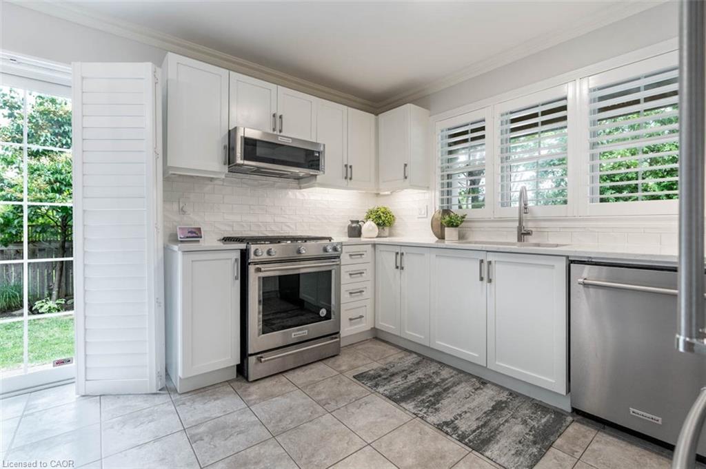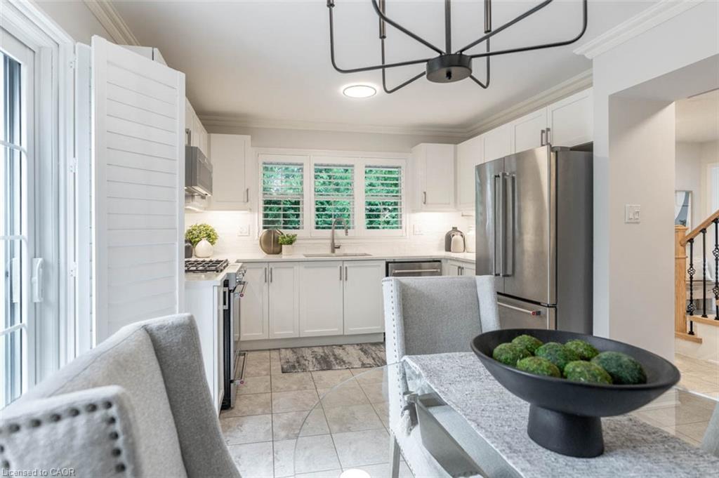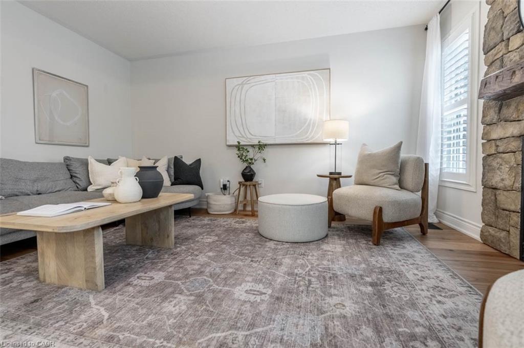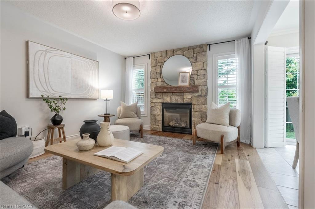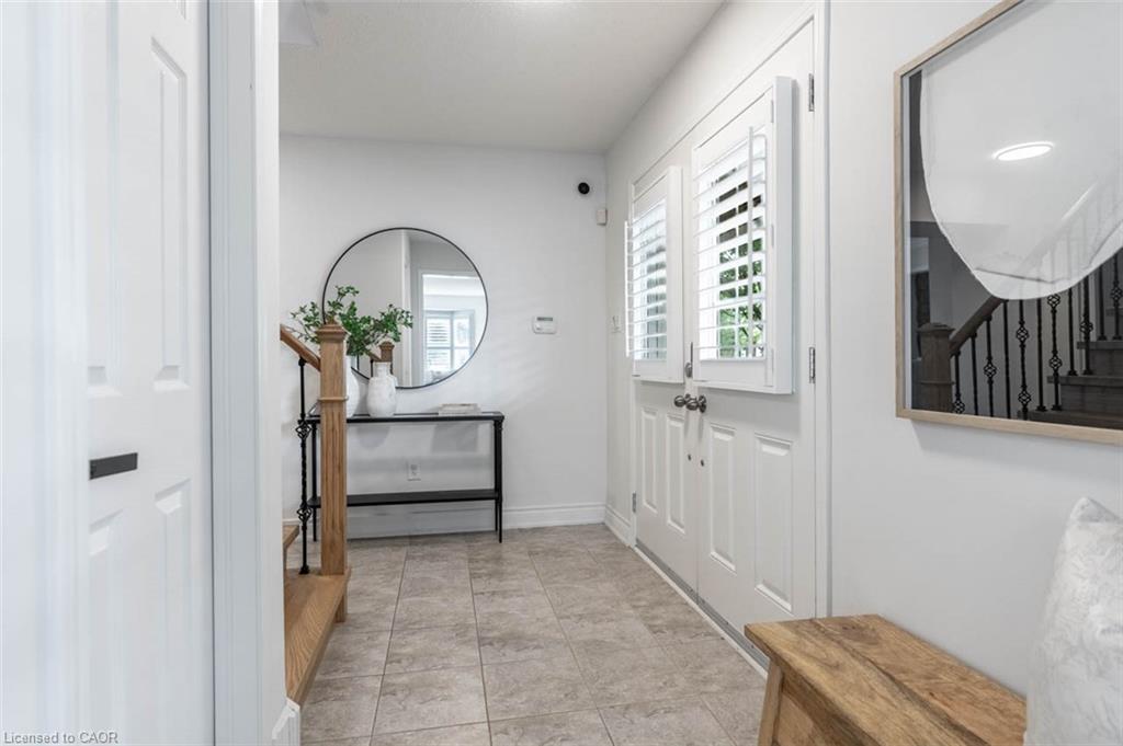 Modern family living comes to life in Milton’s Coates neighbourhood with this beautifully updated 4-bedroom, 4-bath detached home. Thoughtful design and quality finishes shine from the moment you arrive, with a double-door entry, interlocking stone walkway, and an inviting covered porch. Inside, you’re welcomed by luxurious 7.5” brushed Hickory hardwood floors, smooth ceilings with crown moulding, and a family room anchored by a natural gas fireplace framed in floor-to-ceiling stone. The kitchen is a true centrepiece, featuring shaker-style cabinets with under-cabinet lighting, quartz counters, and a premium KitchenAid® stainless-steel appliance package. A sliding door opens onto a fully fenced backyard where an expansive interlock stone patio and dual natural gas connections set the stage for summer BBQs and family gatherings. Upstairs, the primary suite offers a peaceful escape, complete with a deep soaker tub, frameless glass shower, and generous walk-in closet. Three additional bedrooms and a four-piece main bathroom provide space for the whole family, while the second-floor laundry room with LG ThinQ washer/dryer keeps daily life running smoothly. The finished basement extends your living space with a recreation room featuring built-in surround sound speakers, a stylish two-piece bath, and plenty of storage for busy family life. Extras include smart home features like a Nest® thermostat and doorbell, Yale® WiFi keyless entry, a Beam® central vacuum system, and Craftsman® garage door opener with MyQ control. Enjoy proximity to parks, schools, shopping, and highways, all in a neighbourhood known for its friendly community vibe. This is more than just a house — it’s a place where family memories are waiting to be made. See how it could fit your family’s next chapter.