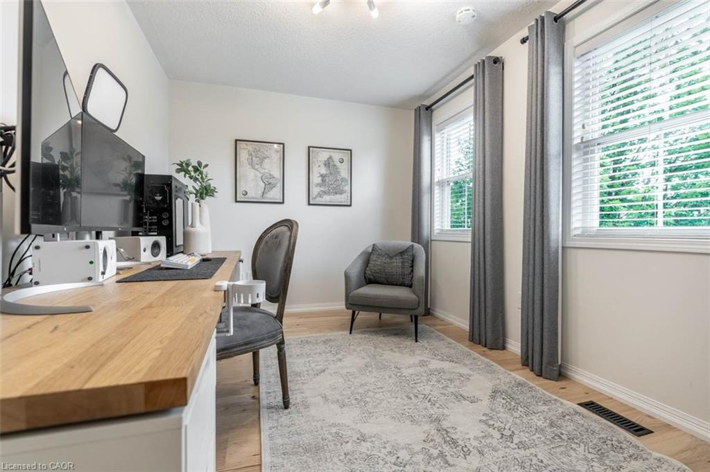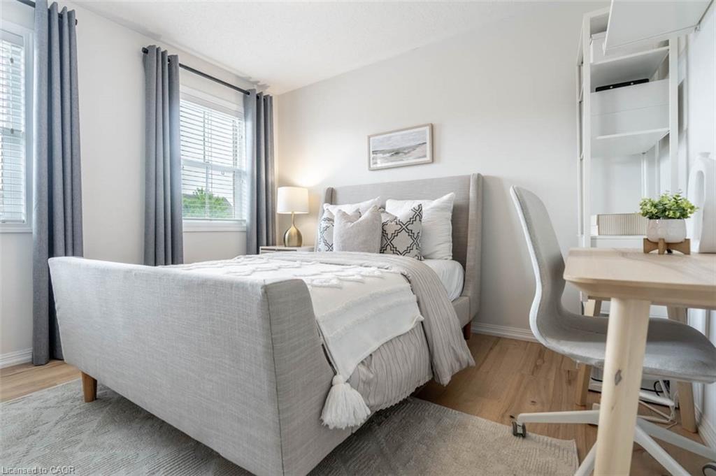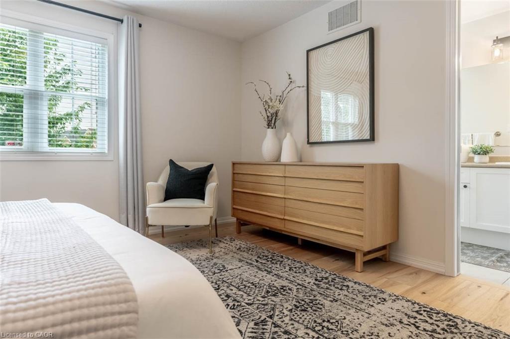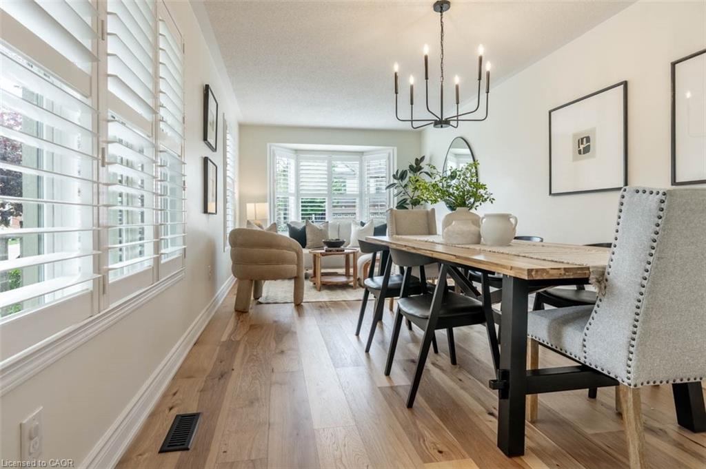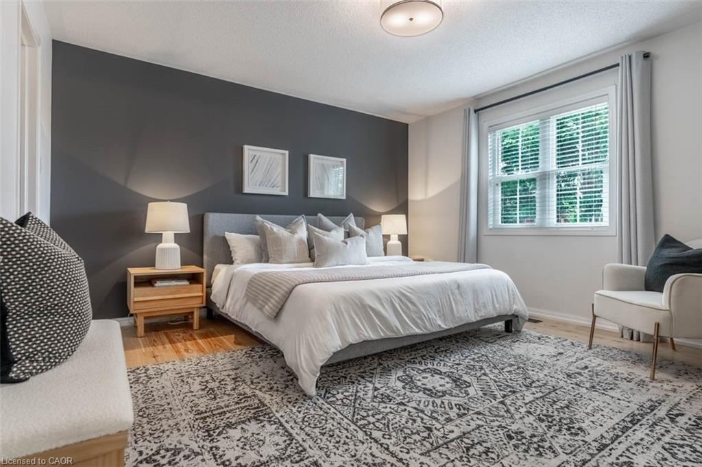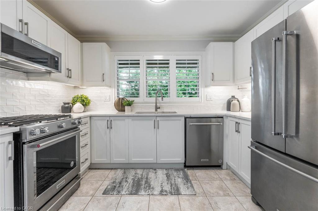 Modern family living comes to life in Milton’s Coates neighbourhood with this beautifully updated 4-bedroom, 4-bath detached home. Thoughtful design and quality finishes shine from the moment you arrive, with a double-door entry, interlocking stone walkway, and an inviting covered porch. Inside, you’re welcomed by luxurious 7.5” brushed Hickory hardwood floors, smooth ceilings with crown moulding, and a family room anchored by a natural gas fireplace framed in floor-to-ceiling stone. The kitchen is a true centrepiece, featuring shaker-style cabinets with under-cabinet lighting, quartz counters, and a premium KitchenAid® stainless-steel appliance package. A sliding door opens onto a fully fenced backyard where an expansive interlock stone patio and dual natural gas connections set the stage for summer BBQs and family gatherings. Upstairs, the primary suite offers a peaceful escape, complete with a deep soaker tub, frameless glass shower, and generous walk-in closet. Three additional bedrooms and a four-piece main bathroom provide space for the whole family, while the second-floor laundry room with LG ThinQ washer/dryer keeps daily life running smoothly. The finished basement extends your living space with a recreation room featuring built-in surround sound speakers, a stylish two-piece bath, and plenty of storage for busy family life. Extras include smart home features like a Nest® thermostat and doorbell, Yale® WiFi keyless entry, a Beam® central vacuum system, and Craftsman® garage door opener with MyQ control. Enjoy proximity to parks, schools, shopping, and highways, all in a neighbourhood known for its friendly community vibe. This is more than just a house — it’s a place where family memories are waiting to be made. See how it could fit your family’s next chapter.