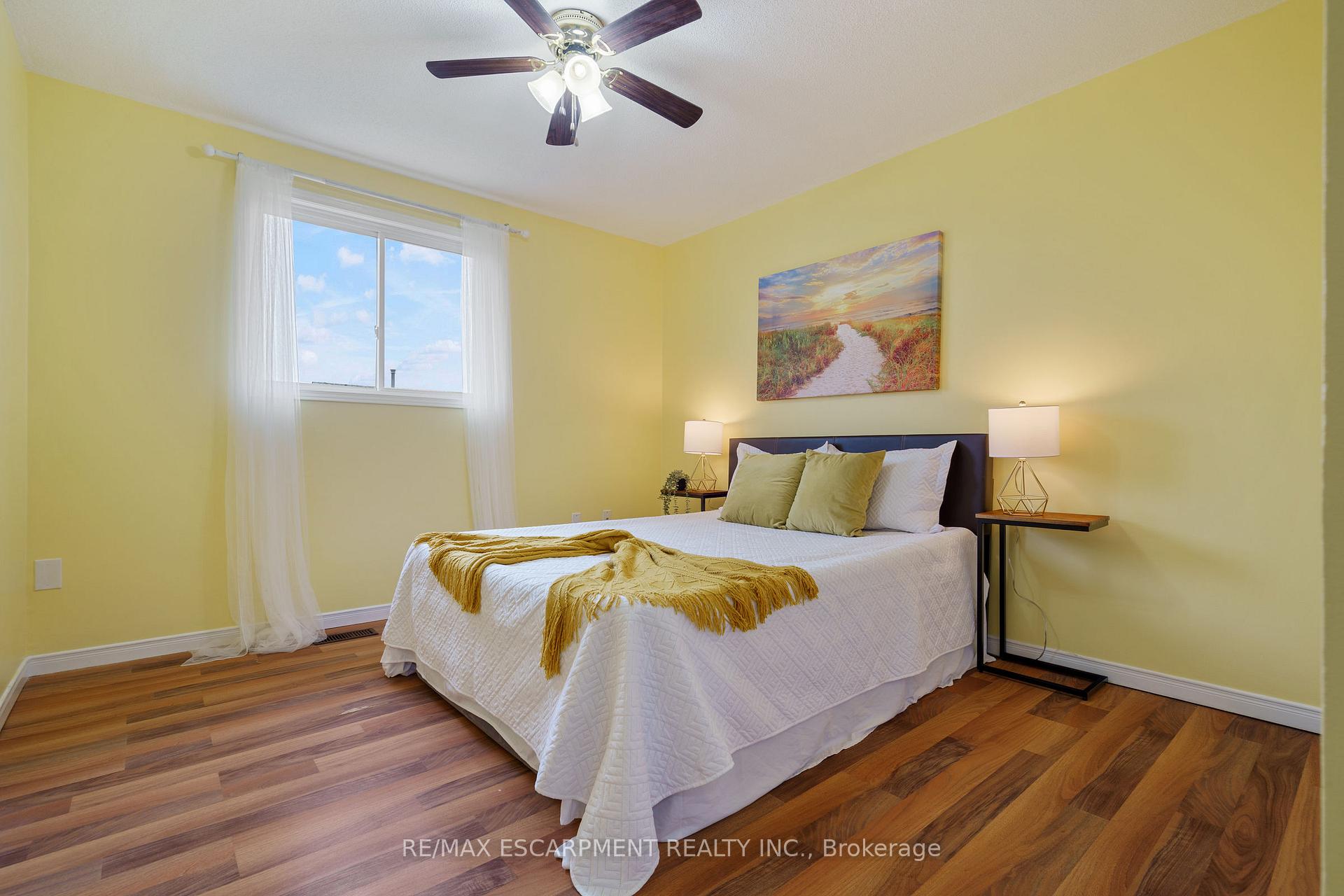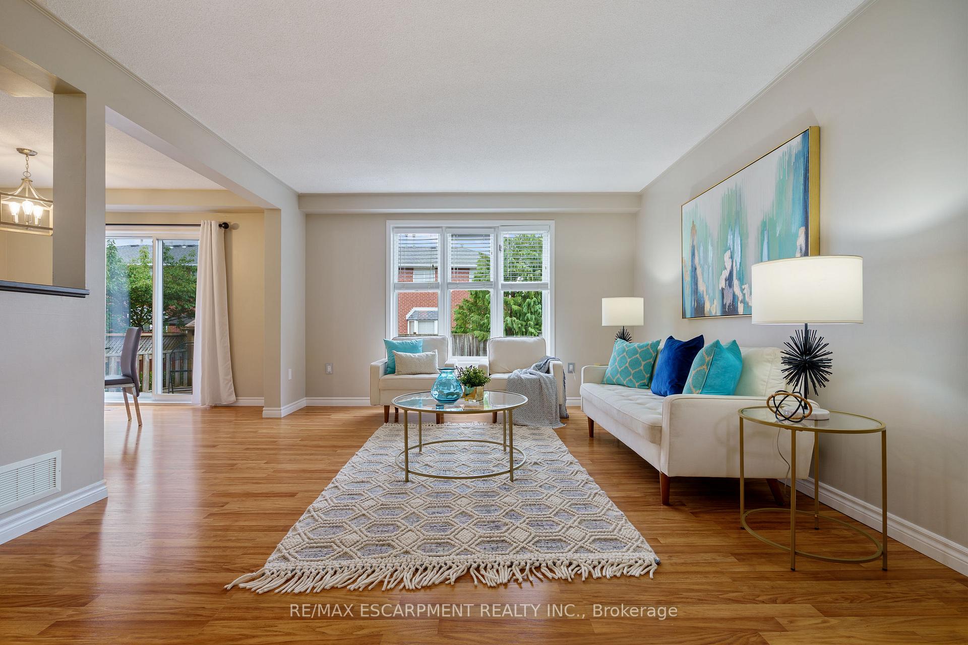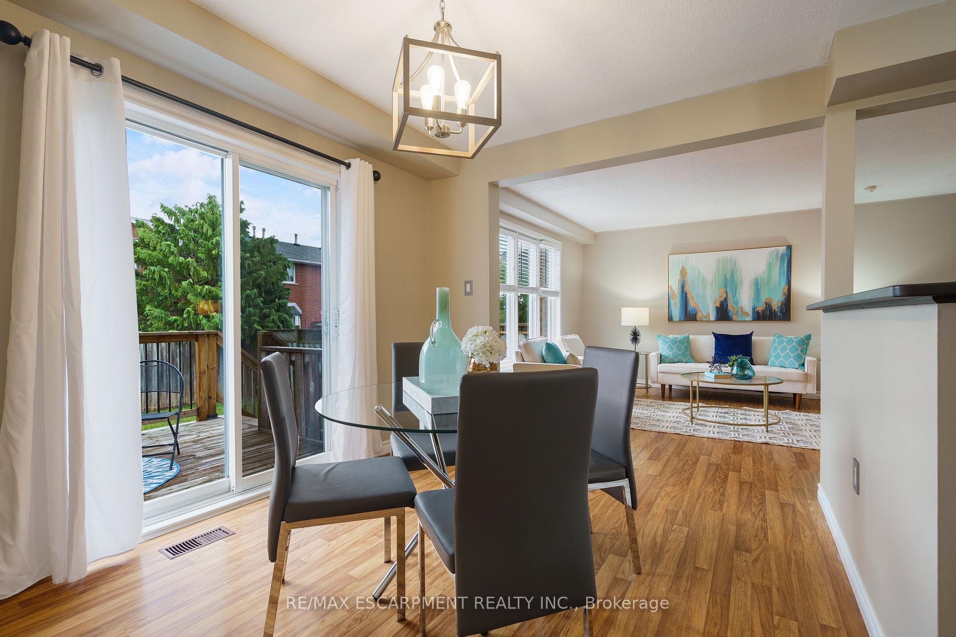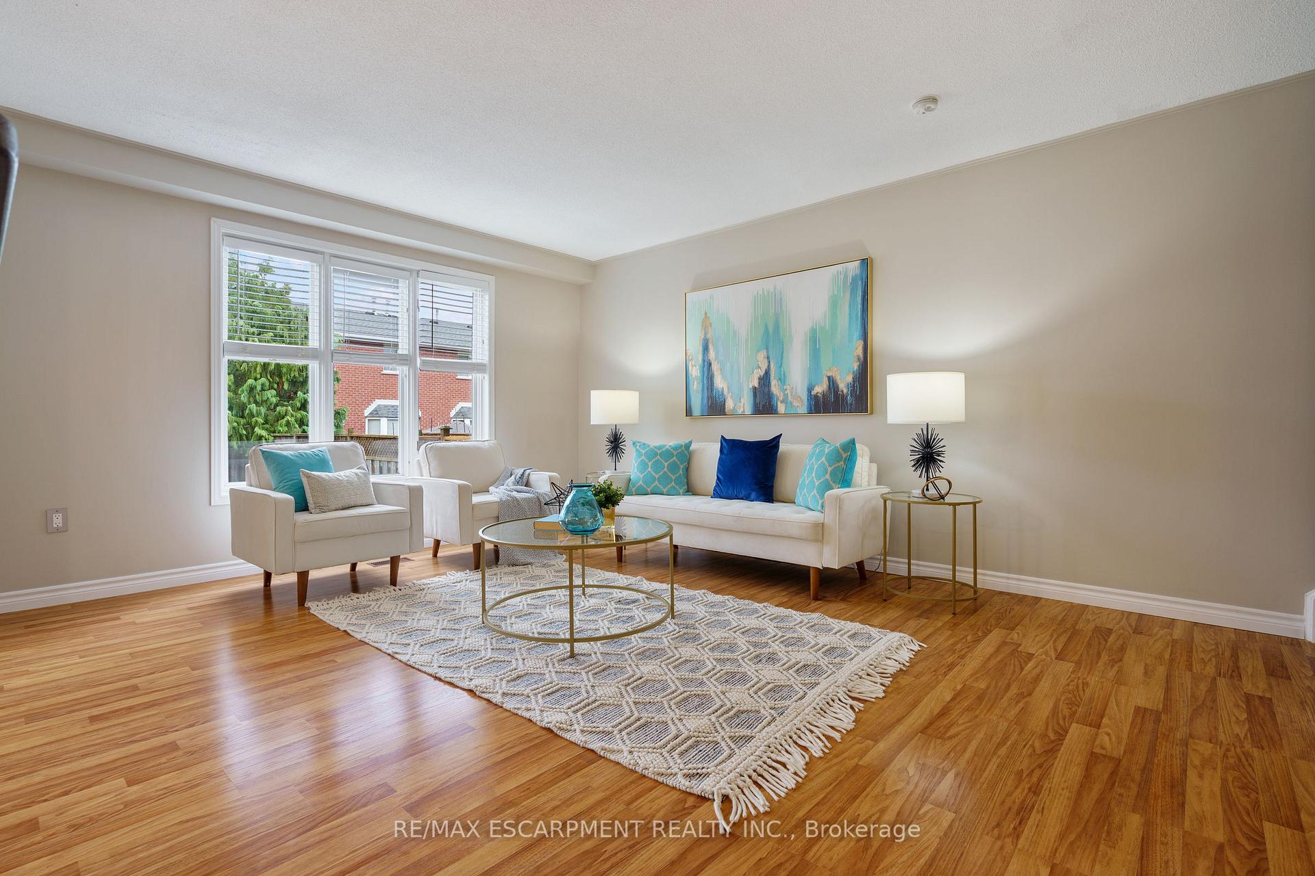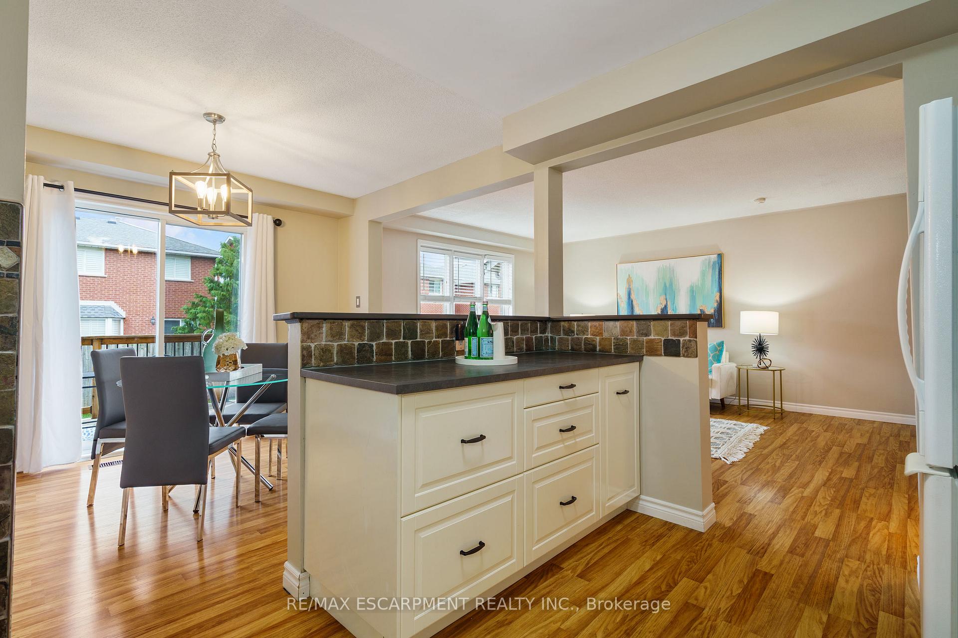 Welcome to 85 Chelsea Crescent in Sherwood Village! This beautifully maintained 3-bedroom, 3-bathroom freehold townhome is located in highly sought-after Lower Stoney Creek and offers a rare double-car garage with inside entry, garage door opener, and double driveway. Inside, you’ll find a bright open-concept living and dining area that flows into the updated kitchen, complete with a large breakfast bar-perfect for family time and entertaining. The main floor features newer laminate flooring, and the dining room opens through sliding doors to a lovely two-tier deck with a gas BBQ hookup and a fully fenced backyard. Upstairs, there are two bedrooms plus a full main bath, along with a private principal suite on its own level, featuring a 2-piece ensuite and two large closets. The additional bedrooms also offer generous closet space. The finished lower level provides even more living space with a spacious family room, plenty of storage, and a convenient 3-piece bathroom with a separate shower. The home has been freshly painted, and the exterior showcases well-kept landscaping-making it completely move-in ready. All of this in a quiet, family-friendly location, close to schools, parks, shopping, churches, and with easy access to the highway. Property is virtually staged.