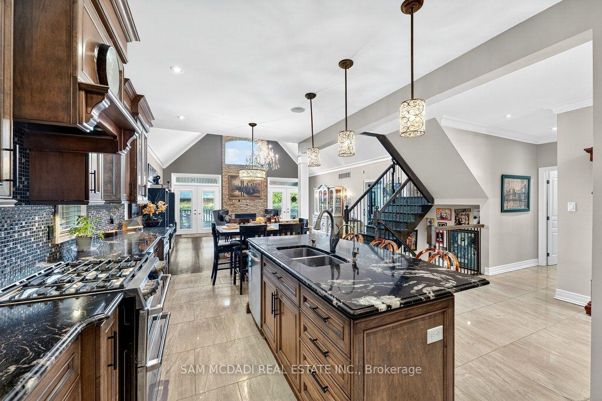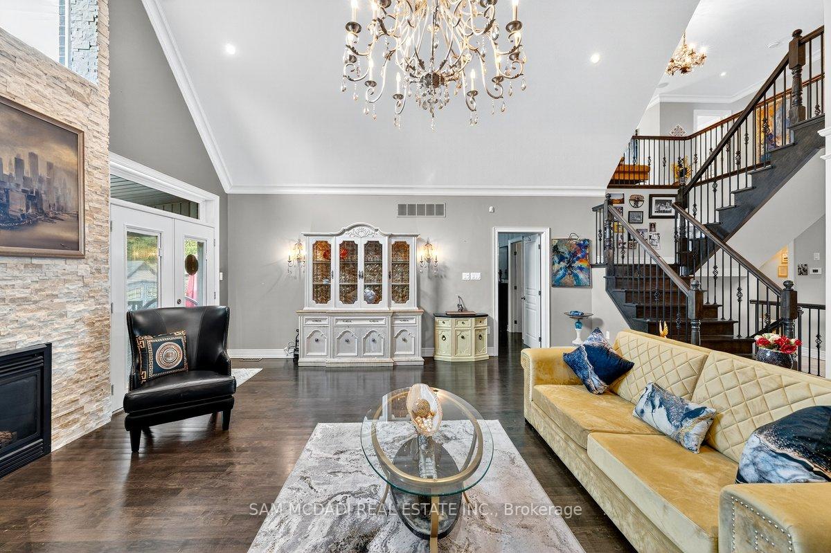 Welcome to 85 Hillcroft Drive, a bespoke residence crafted for the discerning client seeking sophistication and versatility in a family-friendly community. This beautiful home offers over 4,000 square feet of total interior space, featuring soaring vaulted ceilings, wide-plank site-finished hardwood floors, and a seamless layout perfect for both grand entertaining and effortless daily living. The chef’s kitchen is a true centerpiece, complete with rich wood cabinetry, granite countertops, stainless steel appliances, and a striking island, all opening to a dramatic living room with a gas fireplace and French doors leading to a covered outdoor deck. The private primary suite offers a walk-in closet and a luxurious five-piece ensuite with a soaker tub and glass shower. A second bedroom or office at the front, complete with double glass doors and a closet, offers flexibility for guests, remote work, or multigenerational living. On the upper level, the loft level features a cozy lounge area, a full bath, and a third bedroom with its own walk-in closet. The unfinished basement adds tremendous potential, with a kitchenette and existing basement appliances, ideal for a future rec room, gym, or in-law suite. Outside, the backyard is a low-maintenance retreat with artificial turf, mature shrubs, and a premium hot tub featuring an electric fiberglass cover with integrated lighting, designed for year-round use, lower heating costs, and crystal-clear water with minimal upkeep. Nestled near Valley Park Community Centre, scenic conservation areas, major highways, and top-rated schools, this property delivers exceptional comfort, convenience, and long-term value.