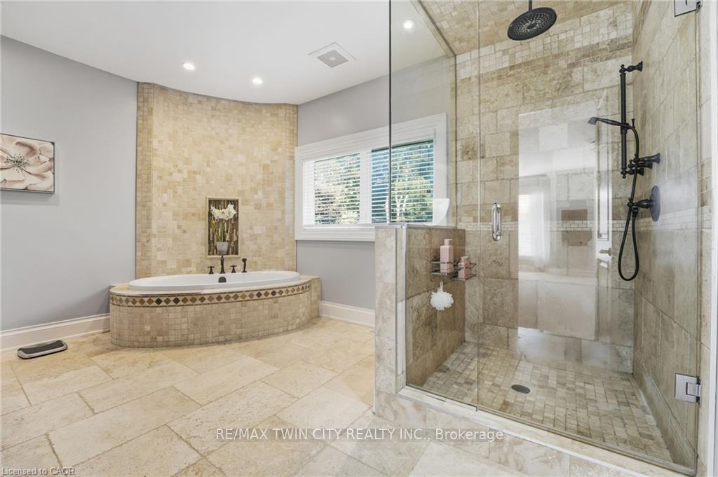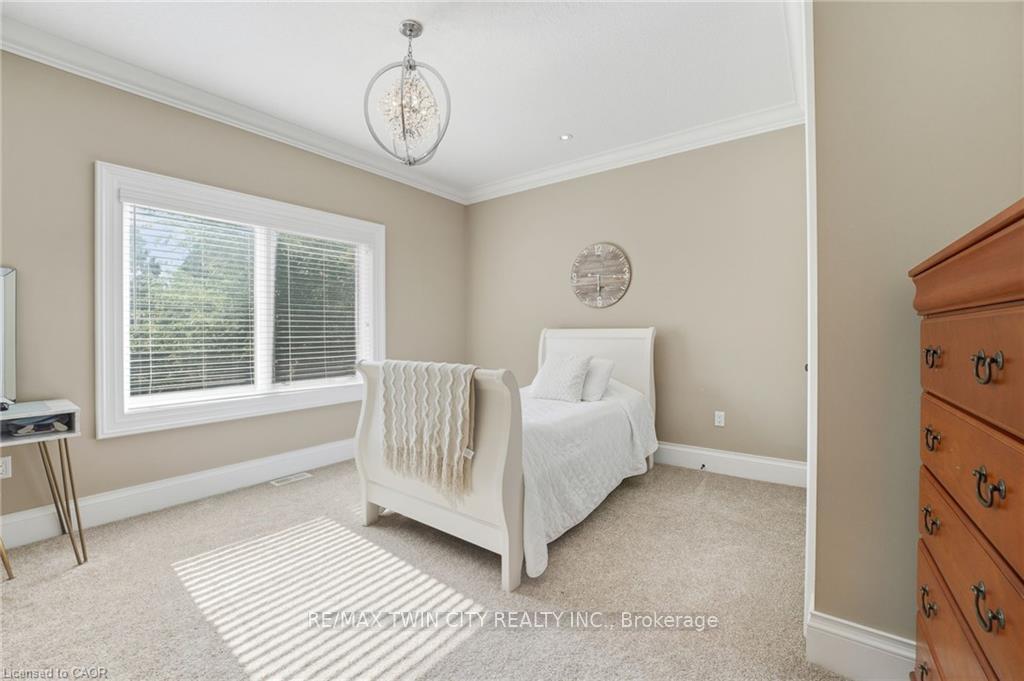 Imagine driving down one of the regions most scenic winding roads to your custom built dream home! This is where a prime location meets executive living. Built in 2016, this custom 5 bedroom and 5 bathroom home delivers 5873 square feet of finished living space, and sits prominently on nearly an acre of manicured lawn and gardens. Privacy is ensured by the fully fenced yard which is further surrounded by a tall, mature woodland. Step inside the solid wood double doors to your grand foyer and staircase. The main floor, with 10′ ceilings and solid wood trim, offers a living room and family room, formal dining room, and a chef’s kitchen complete with 5 appliances and granite counters. The large dinette is accented by oversized windows and patio doors that open to a quiet backyard oasis featuring a heated inground pool, poured concrete patio and a playground. The second level boasts a sunken master bedroom with oversized walk in closet and luxury ensuite bathroom. Five large bedrooms total, two 4-pce bathrooms and a laundry room completes this floor to provide spacious and private quarters for the whole family. The finished rec-room boasts a 3-piece bathroom, a rough in for a second kitchen or bar. Parking for family and guests is never an issue with the heated and insulated massive double garage and oversized triple wide driveway, with parking for 10 cars and extra room for your RV. Walking distance to the scenic trails of Shade Mills Conservation Area and a 5 minute drive to the 401. It doesn’t get better then this!