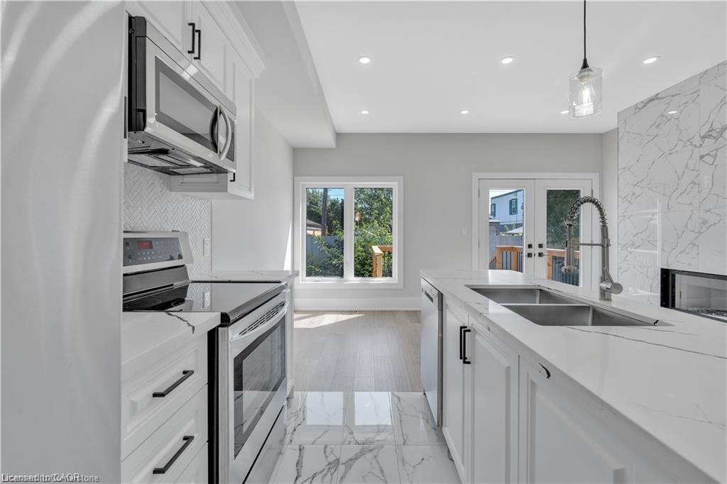 Welcome to 86 Beland Avenue, Hamilton – A Prime Investment Opportunity! Located in the desirable McQuesten neighborhood of Hamilton’s East End, this versatile duplex is a fantastic investment. The first unit boasts 3 spacious bedrooms, 2.5 bathrooms, and in-suite laundry. The main floor features a bright, generously sized living room, a separate dining room perfect for entertaining, and a convenient powder room. The large, eat-in kitchen is a chef’s dream, complete with custom cabinetry and elegant quartz countertops. The second unit is a bachelor suite that also showcases a custom kitchen with cabinets and quartz countertops. With the recent vacancy, you have the opportunity to set your own rental rates. Both units are beautifully finished with hardwood and vinyl plank flooring throughout. Additional features include a gas fireplace, separate hydro meters, and a single-car garage with direct access to the home. The fully fenced backyard offers a private oasis, perfect for relaxing or entertaining outdoors. With easy access to Highway 403 and 407, and close proximity to McMaster University, local transit, and various amenities, this property is ideally located for convenience. Whether you’re looking to live in one unit and rent out the other, or simply add a strong asset to your portfolio, this property is a must-see.