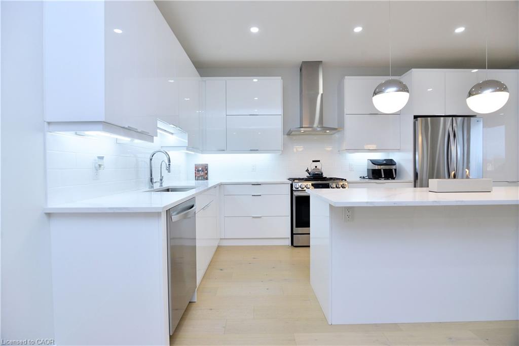 This exceptional 5-bedroom, 5-bathroom detached home offers an impressive 3,258 sq. ft. of thoughtfully designed living space. Set on a magnificent ravine lot, the property offers breathtaking views that will surely captivate you. The bright, open-concept main floor features soaring 9-foot ceilings, creating a spacious atmosphere ideal for hosting gatherings. The gourmet kitchen showcases high-end stainless steel appliances, a generously sized island, and expansive European windows that flood the area with natural light. Rich engineered hardwood floors flow seamlessly throughout both the main and second levels. Enjoy outdoor relaxation on the oversized deck, perfect for entertaining or unwinding. The fully finished walk-out basement includes a cozy bedroom, a luxurious sauna, and a separate entrance, offering the potential for an in-law suite or private retreat. Located just minutes from Highway 403, top-rated schools, nature trails, and more, this home provides both convenience and tranquility. Book your showing today to experience this incredible property in person!