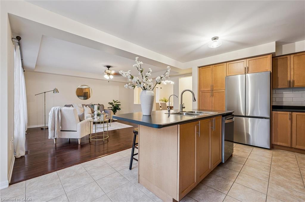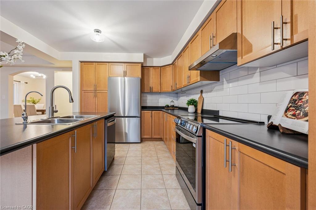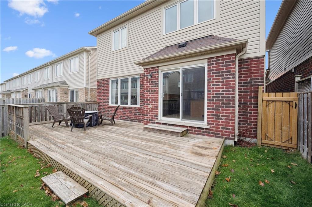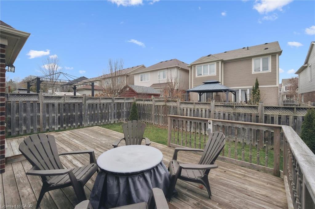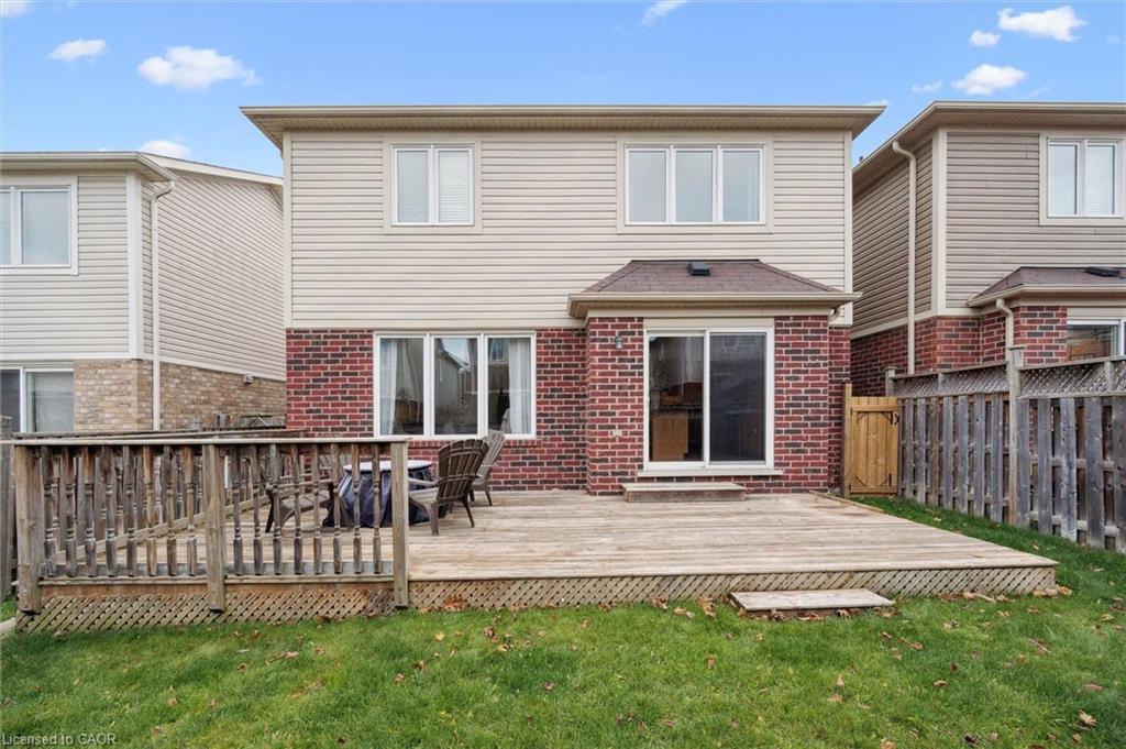 Welcome to 86 Michigan, a beautifully maintained red-brick home in a prime central Cambridge location, offering timeless curb appeal, thoughtful updates, and an exceptional family-friendly layout. The main floor is designed for comfort and flow, starting with a spacious front office that’s perfect for working from home or creating a quiet study space or playroom. An open formal dining area connects seamlessly to the inviting living room, highlighted by warm hardwood flooring and natural light. The kitchen offers exceptional function with an abundance of cabinetry, a stylish tile backsplash, newer stainless steel appliances (fridge and stove 2025, dishwasher 2023), and a generous island with seating—ideal for busy mornings or casual entertaining. Step outside to a fully fenced backyard featuring a newer deck, providing a private and welcoming outdoor space for dining, play, or relaxation.