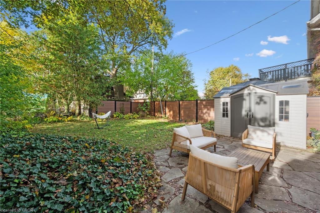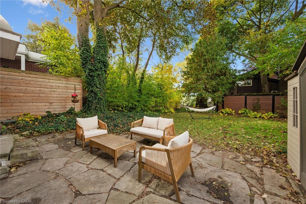 The private backyard with mature trees, flagstone patio and a gas line for the BBQ, make hosting summer gatherings a breeze.