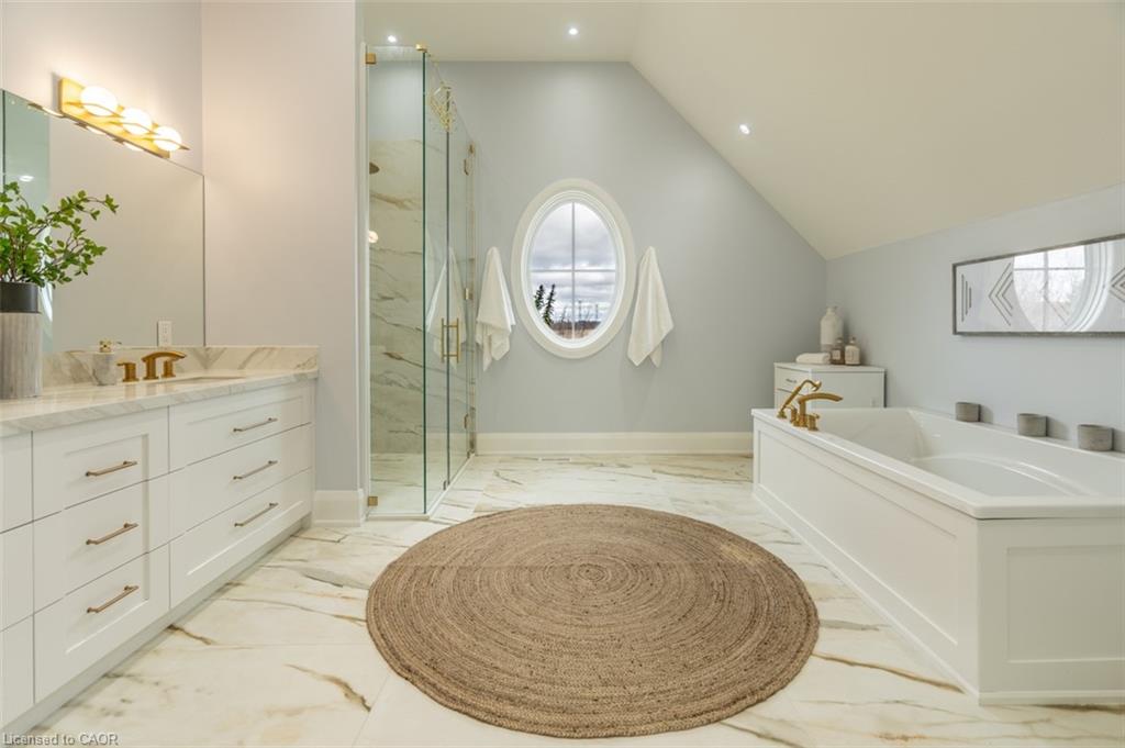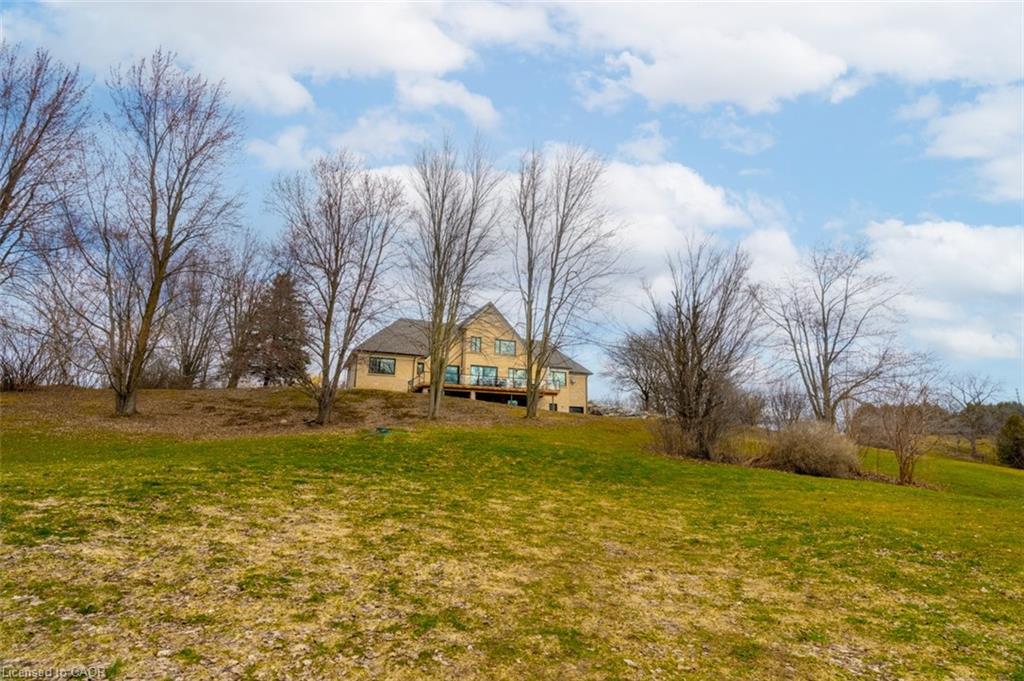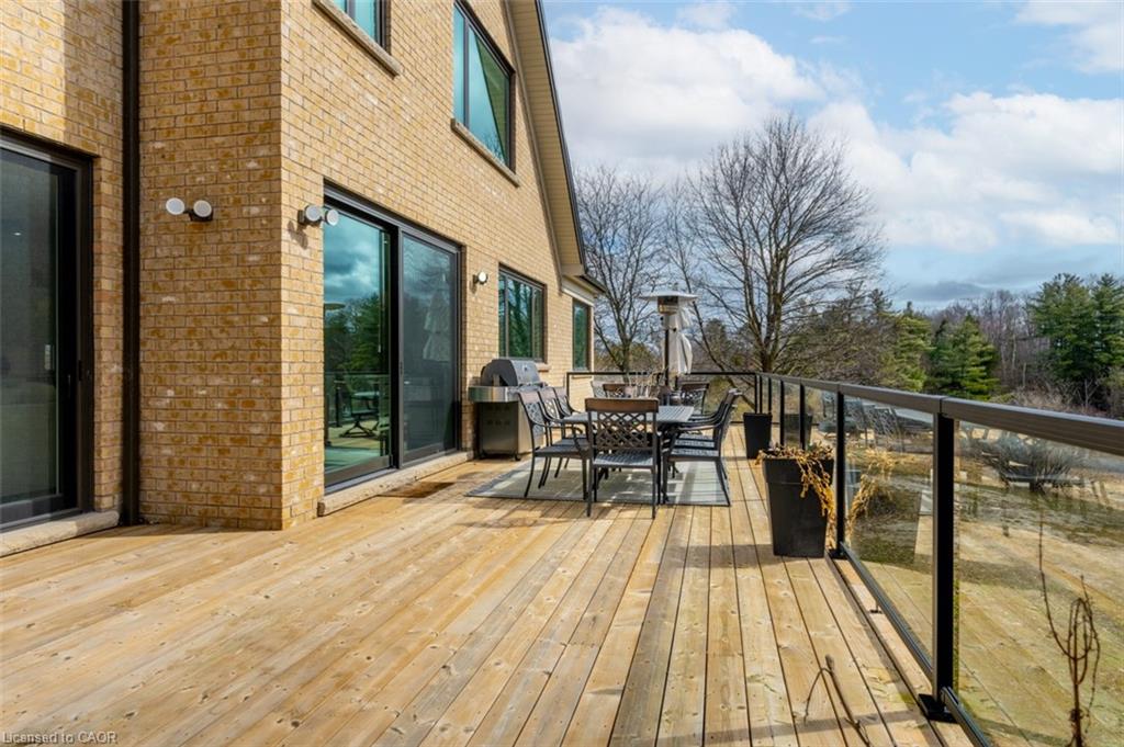 Welcome to 8656 Esquesing Line, a custom-built country estate on a beautiful 7.5-acre property just minutes from Milton, Highway 401, shopping, dining, and daily essentials. Built in 2021, this home offers 3,154 sq.ft. of above-grade living space and a unique blend of refined design, modern comfort, and peaceful rural living. Surrounded by open space & natural beauty, the property features ample parking, an oversized main garage, and an additional built-in lower garage perfect for hobbies, storage, recreational equipment, or future needs. Inside, upscale finishes and bold architectural details create a warm, sophisticated atmosphere. Premium Kolbe windows flood the home with natural light, while custom millwork adds elegance and character. The kitchen is a true centrepiece, with imported quartzite countertops, a large chef-inspired island, full-height cabinetry, illuminated display cabinets, and premium integrated appliances. The bedroom layout is equally impressive, with dressing areas and spa-like en-suites featuring curbless glass showers, quartz-topped vanities, custom cabinetry, and large-format tile. The primary retreat is privately located and includes a vaulted ceiling, a custom dressing room with a centre island and hidden storage, and a 5-piece ensuite with radiant-heated floors, a soaker tub, and an oversized curbless shower. The unfinished lower level is framed and insulated, with nearly 9-foot ceilings, a bathroom rough-in, direct walkout to the patio and hot tub area, and separate access to its own lower garage, offering potential for expanded family living, recreational space, or future income opportunities. Outside, the 700 sq.ft. rear deck with stunning panoramic views seamlessly extends the home, while the hot tub and expansive grounds create the perfect setting for entertaining and relaxing year-round. An exceptional opportunity to own a truly special country property, this is a must-see home for buyers seeking luxury, privacy, and lasting value.