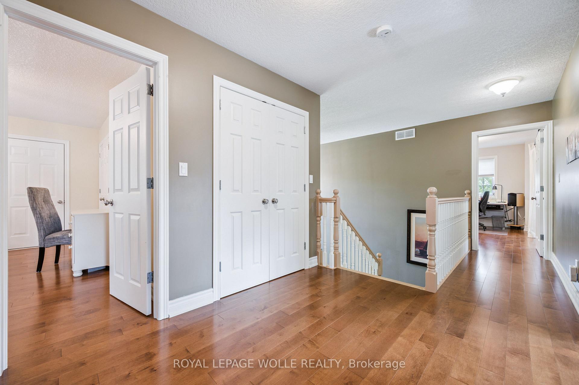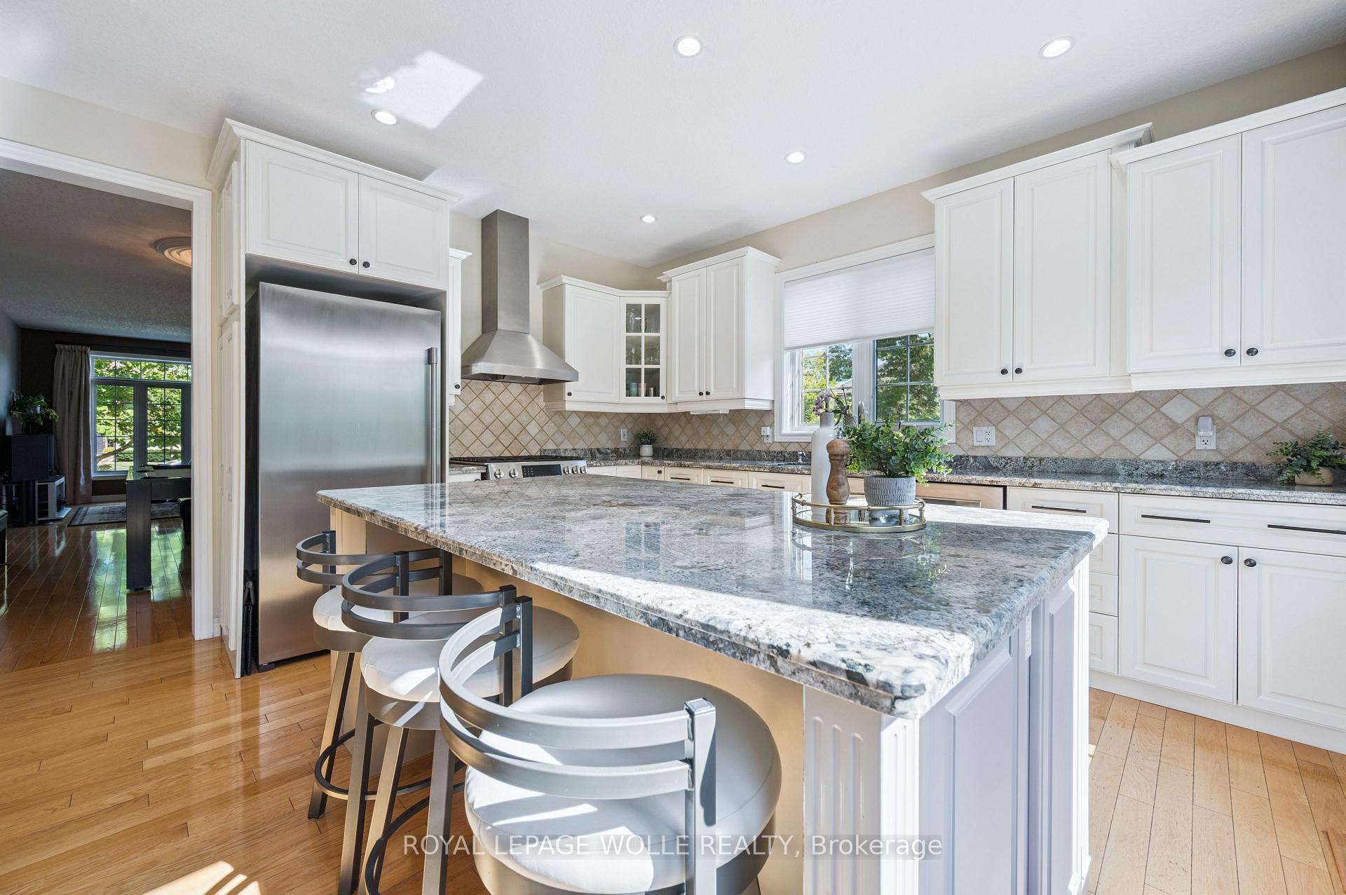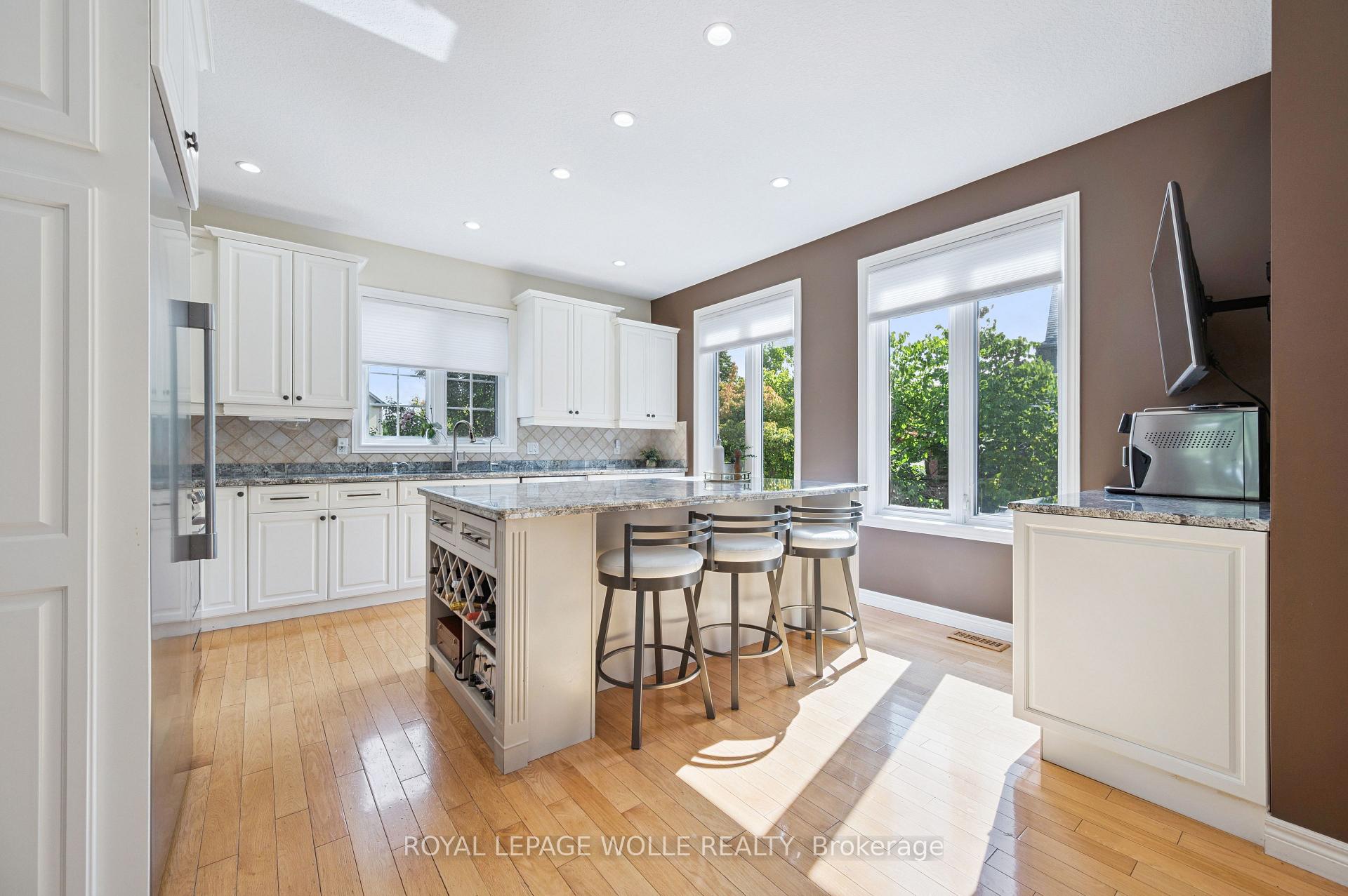 Nestled within the prestigious and HIGHLY SOUGHT-AFTER LAURELWOOD NEIGHBOURHOOD of Waterloo, this extraordinary custom-built residence by “Grau” Homes presents a rare opportunity for luxurious living that includes a completely separate in-law suite. Set upon a MAGNIFICENT, PRIVATE PREMIUM LOT, the home is a masterpiece of superior engineering and design, featuring robust 2′ x 6′ construction and soaring 9-foot ceilings. Step through the covered porch into a BREATHTAKING TWO-STORY FOYER, where a stately SOLID WOOD staircase with elegant railings beckons you inside. Sunlight pours through expansive windows, illuminating the formal living and dining rooms with delightful views. The heart of the home is a chef’s DREAM KITCHEN, SHOWCASING CUSTOM CABINETRY, a sleek stainless vent hood, GRANITE COUNTERTOPS, extended cabinetry with desk nook, standup freezer, and tumbled marble backsplash. A sprawling center island overlooks the sun-drenched dinette and family room, where a COZY GAS FIREPLACE and walls of windows frame the backyard oasis. Sliders open to an impressive two-tier composite deck with lighting and a serene stone patio. Upstairs, RICH HARDWOOD FLOORING leads to the private quarters. The generous primary suite features FLEXIBLE SPACE for an office or nursery, a walk-in closet, and a lavish five-piece ensuite with jetted tub and shower. Three additional bedrooms and second-floor laundry complete this level. The PROFESSIONALLY FINISHED LOWER LEVEL unveils a self-contained in-law suite with full kitchen, spacious living room with gas fireplace, dining area, bedroom, and four-piece bathroom with separate laundry. A walkout leads to a NEW STONE PATIO and private BBQ area with retaining walls and ambient lighting. Beyond the home, enjoy a DOUBLE CAR GARAGE, CONCRETE DRIVEWAY, landscaped grounds, and paver walkway. Embrace the LAURELWOOD LIFESTYLE WITH TOP-RATED SCHOOLS, serene trails, parks, and upscale shopping just moments away.
