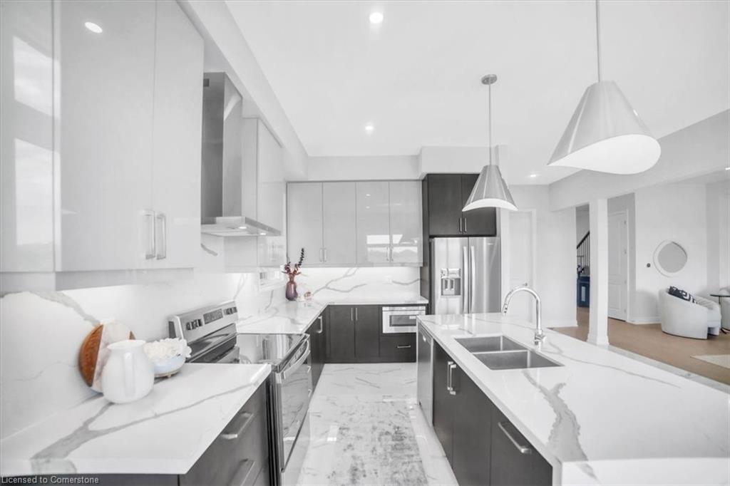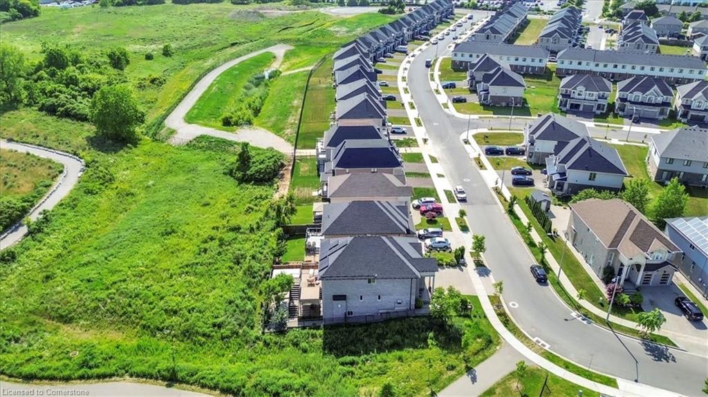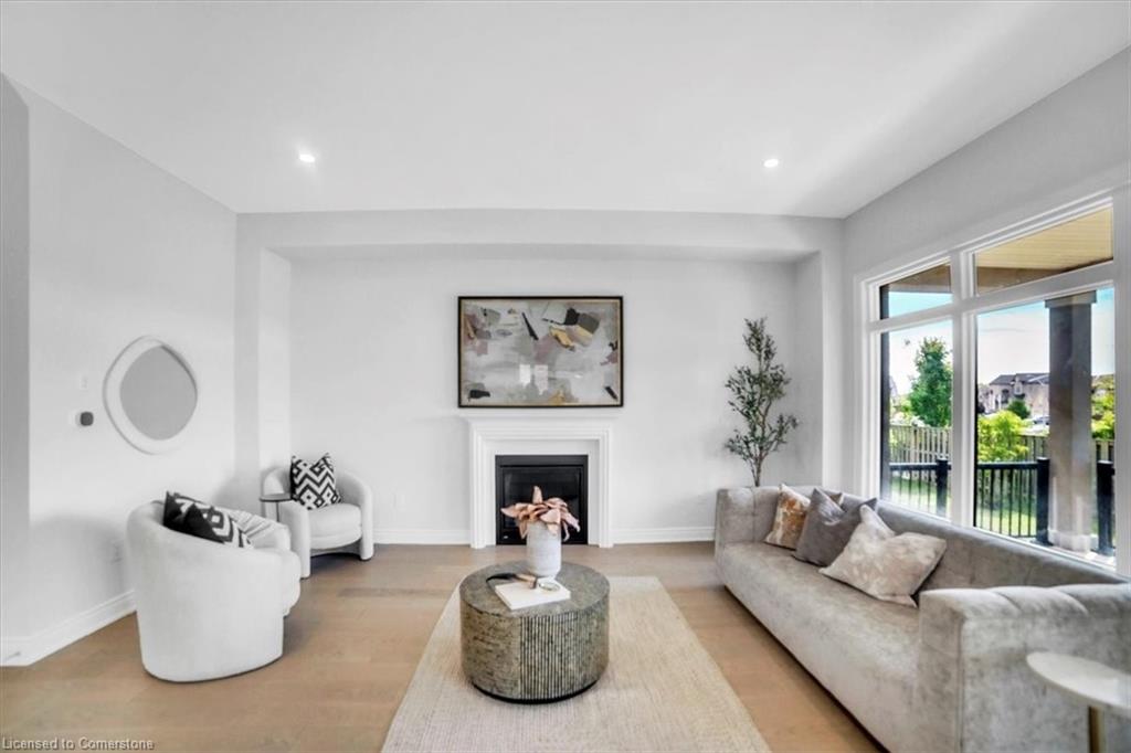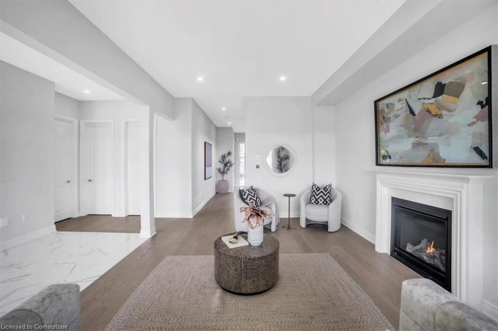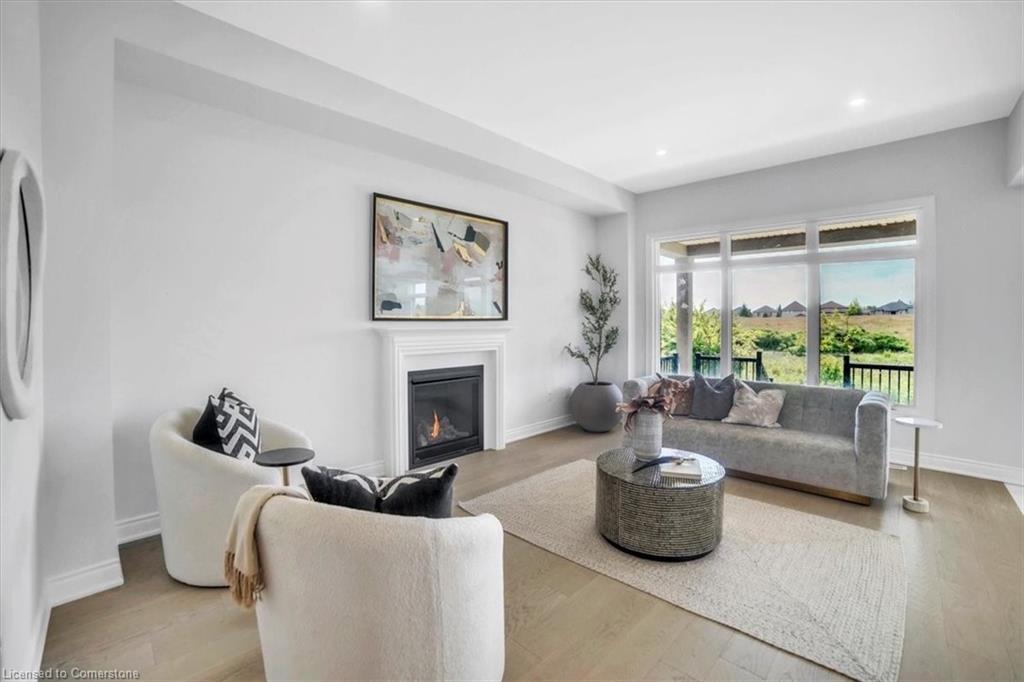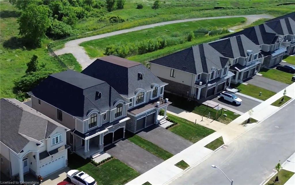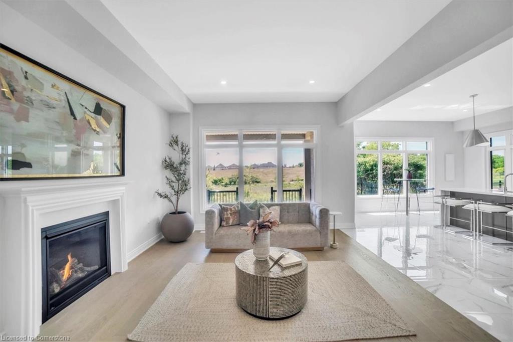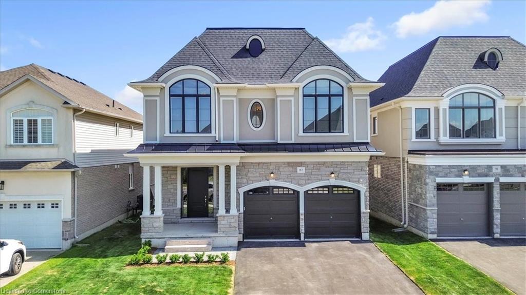 Introducing one of the most distinguished homes in DiCenzo Homes’ sought-after Stonegate Park community—welcome to 87 Aquasanta Crescent. Set on a premium lot backing directly onto a naturalized park and open space, this Capri Grande luxury model is a rare opportunity to own one of Hamilton’s most scenic west mountain homes, where tranquil surroundings and breathtaking sunsets become part of your daily experience. With 2,505 square feet of impeccably designed space, this fully detached home features a 10-foot main floor, smooth ceilings, and a seamless blend of premium porcelain tile and 6-inch oak hardwood flooring. The open-concept layout is anchored by a spacious great room with a linear fireplace and custom lighting, flowing effortlessly into a chef’s kitchen outfitted with two-tone urban cabinetry, taller uppers, pots & pans drawers, deep fridge cabinet, chimney-style hood, stainless steel appliances, and an extended island with integrated sink, recycling drawer, and built-in microwave drawer. A walk-in pantry and main floor laundry complete the convenience. Expansive windows bathe the interior in natural light and draw you toward the covered loggia, perfect for quiet coffee mornings or sunset wine evenings overlooking the natural landscape behind. Upstairs, the oak staircase leads to four spacious bedrooms. Two share a stylish Jack & Jill ensuite, one enjoys its own private ensuite, and the primary suite spans the rear of the home with serene park views, a spa-like ensuite with freestanding tub, glass shower, and private water closet. This home is move-in ready in as little as 30 days and located minutes from amenities, top schools, and major transit routes. Luxury. Nature. Community. This is 87 Aquasanta.