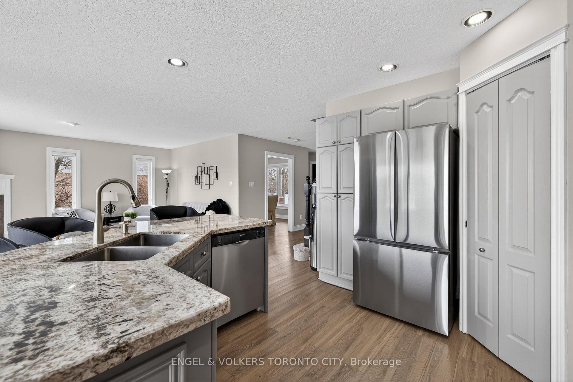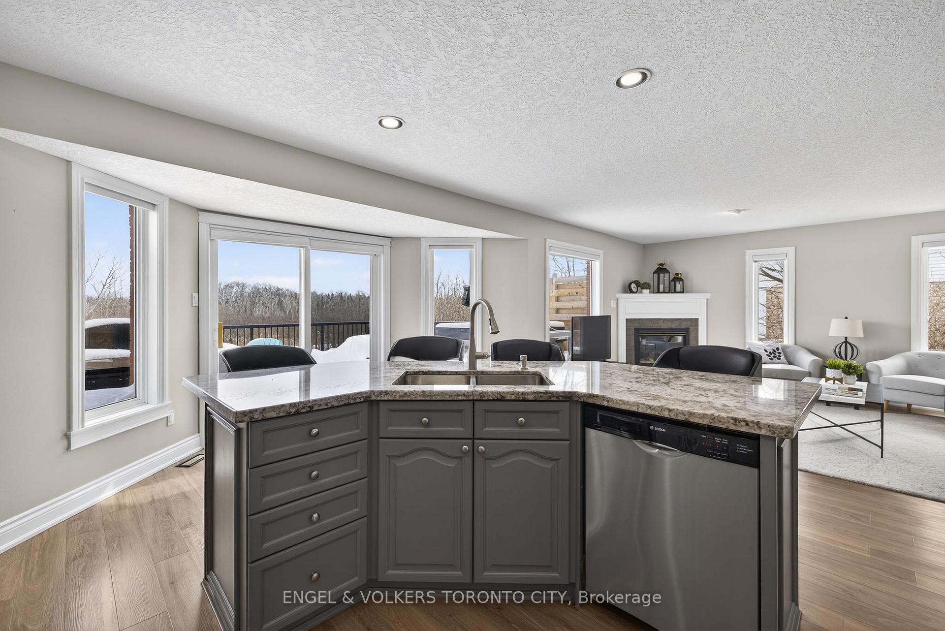 Tucked in Orangeville’s highly desirable west end, this modern detached home offers a rare chance to embrace ravine living w/ peaceful pond views, glowing sunsets off the back deck, and a lifestyle immersed in nature. Thoughtfully positioned w/ large windows framing the ravine vistas from multiple rooms, it draws the outdoors in at every turn. Step from the gourmet open-concept kitchen onto a huge deck w/ natural gas BBQ hook-up, where you can savour morning coffee or family dinners. The oversized lot – expanding to over 66ft wide at the rear – provides space, privacy, and direct connection through the rear gate to Orangeville’s extensive walking trails, linking to parks, soccer fields, splash pad, pond/skating rink, and the recreation centre. Inside, the bright, spacious design shines w/ hard flooring, abundant pot lights, and California shutters. The chef-inspired kitchen boasts granite counters, a large centre island w/ breakfast bar, space for a separate breakfast area, SS appliances, and a walk-in pantry w/ built-in organizers. Fireplaces on both the main level & basement create cozy gathering spots year-round. Upstairs, a huge open loft/bonus room easily converts to an additional above-grade bedroom w/ double closet – ideal for growing families or flexible living. The finished walk-out basement extends your space w/ ravine access, a fireplace, and a 3pc bath that adds flexibility for future needs like guests or extended family. Luxury details elevate every room, including quartz & granite counters. Recent updates ensure efficiency & peace of mind: Heat Pump [2023], Furnace [2023], Water Softener [2022], insulated garage door [2025], and new eavestroughs [2025]. In this sought-after west end enclave, ravine lots like this – blending modern updates, family-friendly flow, and unbeatable outdoor access – are rare. For families craving nature’s playground or downsizers seeking low-maintenance beauty, don’t miss your chance to experience ravine living at its finest!