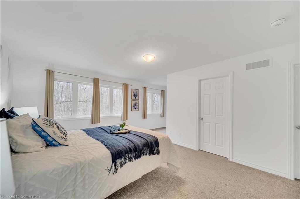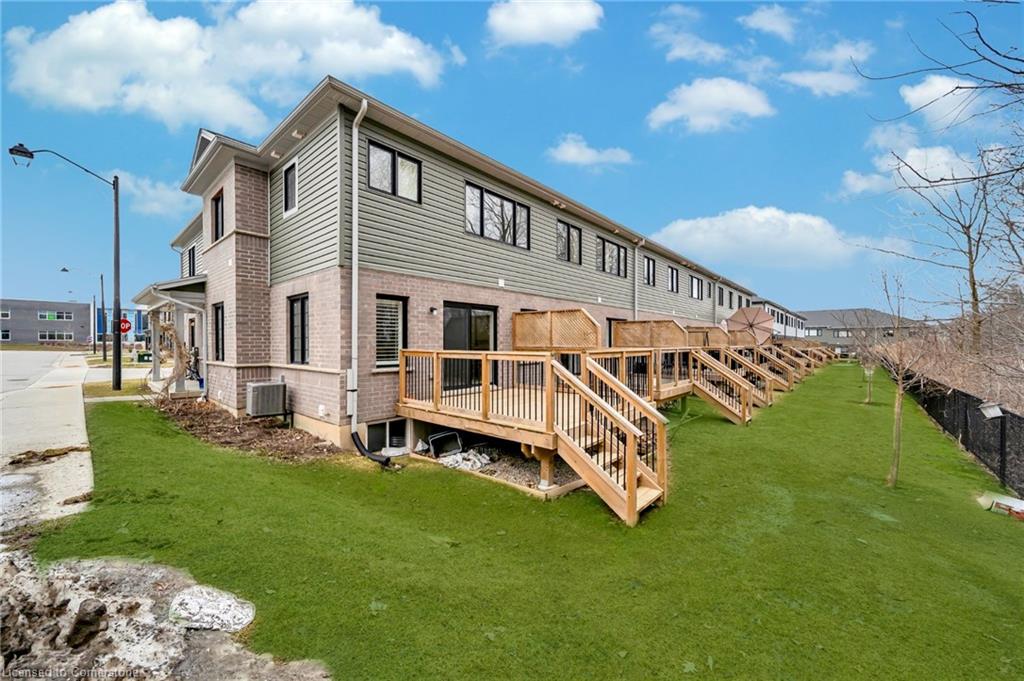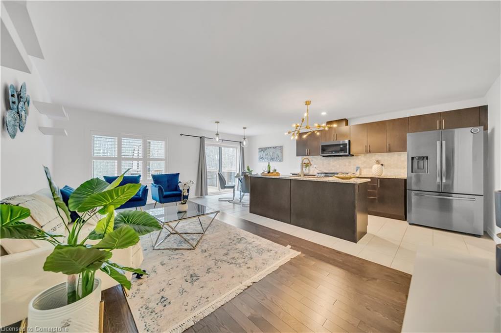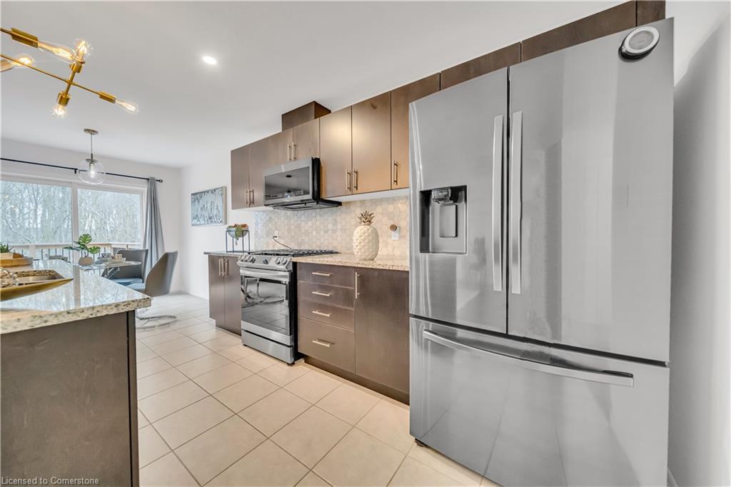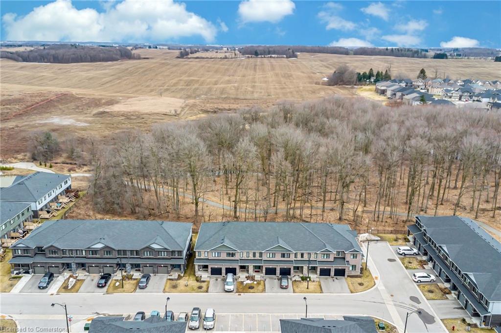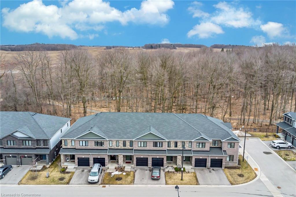 Welcome to 87 Woodedge Circle, Kitchener. Nestled in the highly sought-after neighborhood of Huron Park, this meticulously maintained townhouse offers 3 spacious bedrooms, 3 bathrooms & 1-car garage. Positioned on a serene ravine lot, this property stands out with no backyard neighbors, allowing you to enjoy unobstructed views of lush greenspace. The peaceful backdrop provides an idyllic setting, offering a rare sense of privacy in a townhouse community. As you step inside, you’ll immediately notice the bright, open concept of the main level. The living room is a cozy space filled with natural light, thanks to large windows strategically placed throughout. The kitchen is a true standout, offering Granite countertops, SS Appliances, modern cabinetry & spacious central island. Adjacent to the kitchen, the dining area is perfect for casual meals or larger gatherings with family & friends. Upstairs, you’ll find 3 generously sized bedrooms. The primary suite is an absolute retreat, with a stunning view of the ravine, a walk-in closet & a luxurious 4-pc ensuite bathroom. The other 2 bedrooms are equally spacious & share a well-appointed 4pc bathroom. Upper-level laundry adds extra convenience, making day-to-day living a breeze. The basement offers endless possibilities. Whether you envision creating an in-law suite or an additional recreational space, this unfinished area provides the flexibility to suit your personal lifestyle needs. Step outside and be greeted by a deck in the backyard—a perfect space for entertaining, relaxing, or simply enjoying the summer days in complete privacy. The location is ideal, Just minutes from 2 elementary schools, this home is ideal for families. Easy access to trails, parks, soccer field, Shopping & quick access to HWY 401, 7 & 8 means commuting is a breeze. This ravine lot townhouse is a rare gem, offering privacy, serenity & a fantastic location—all in one. Don’t miss out on this, Book your showing today!