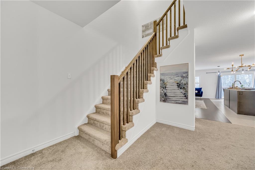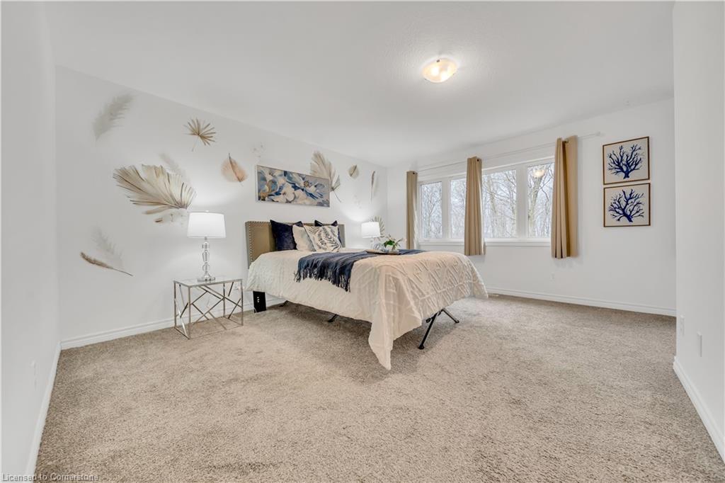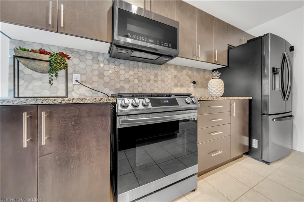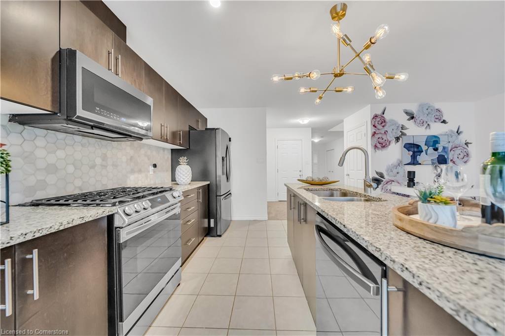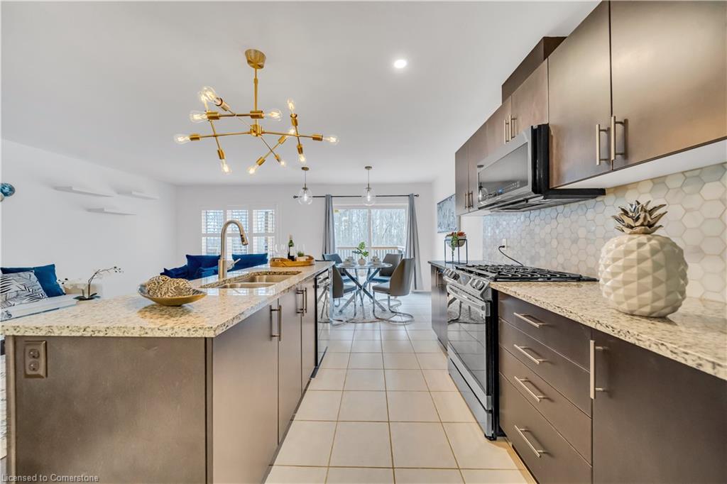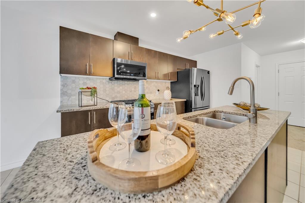 Welcome to 87 Woodedge Circle, Kitchener. Nestled in the highly sought-after neighborhood of Huron Park, this meticulously maintained townhouse offers 3 spacious bedrooms, 3 bathrooms & 1-car garage. Positioned on a serene ravine lot, this property stands out with no backyard neighbors, allowing you to enjoy unobstructed views of lush greenspace. The peaceful backdrop provides an idyllic setting, offering a rare sense of privacy in a townhouse community. As you step inside, you’ll immediately notice the bright, open concept of the main level. The living room is a cozy space filled with natural light, thanks to large windows strategically placed throughout. The kitchen is a true standout, offering Granite countertops, SS Appliances, modern cabinetry & spacious central island. Adjacent to the kitchen, the dining area is perfect for casual meals or larger gatherings with family & friends. Upstairs, you’ll find 3 generously sized bedrooms. The primary suite is an absolute retreat, with a stunning view of the ravine, a walk-in closet & a luxurious 4-pc ensuite bathroom. The other 2 bedrooms are equally spacious & share a well-appointed 4pc bathroom. Upper-level laundry adds extra convenience, making day-to-day living a breeze. The basement offers endless possibilities. Whether you envision creating an in-law suite or an additional recreational space, this unfinished area provides the flexibility to suit your personal lifestyle needs. Step outside and be greeted by a deck in the backyard—a perfect space for entertaining, relaxing, or simply enjoying the summer days in complete privacy. The location is ideal, Just minutes from 2 elementary schools, this home is ideal for families. Easy access to trails, parks, soccer field, Shopping & quick access to HWY 401, 7 & 8 means commuting is a breeze. This ravine lot townhouse is a rare gem, offering privacy, serenity & a fantastic location—all in one. Don’t miss out on this, Book your showing today!