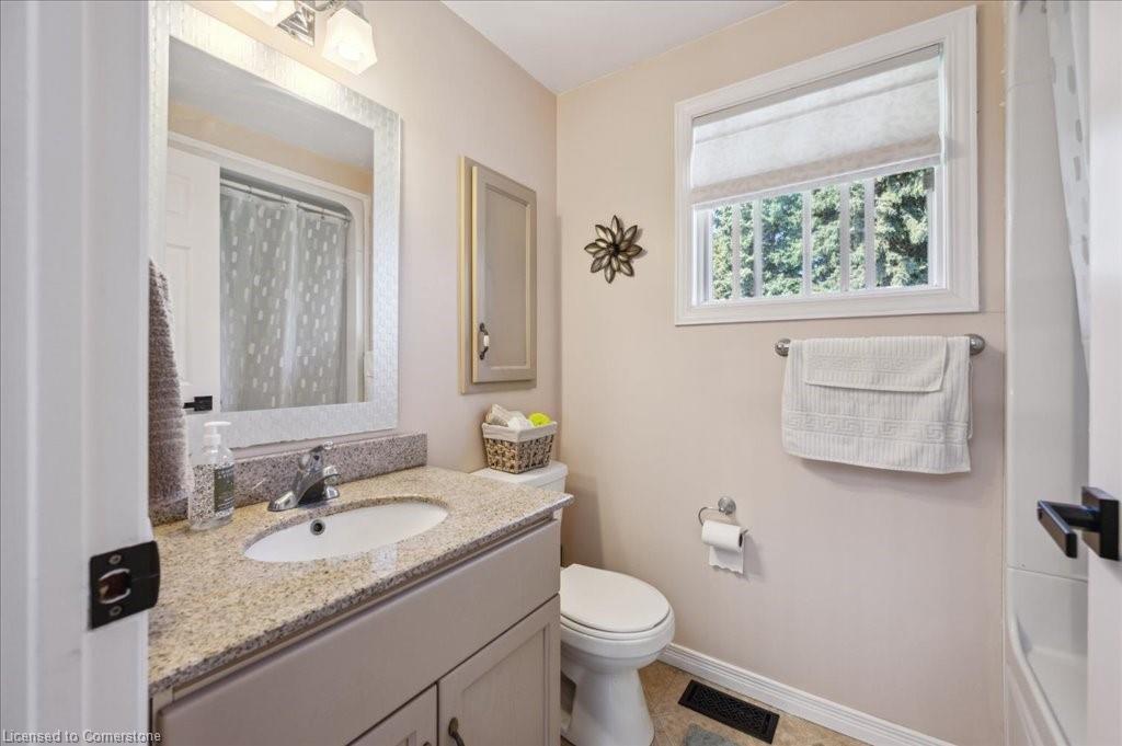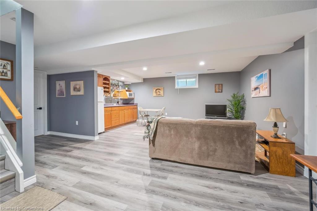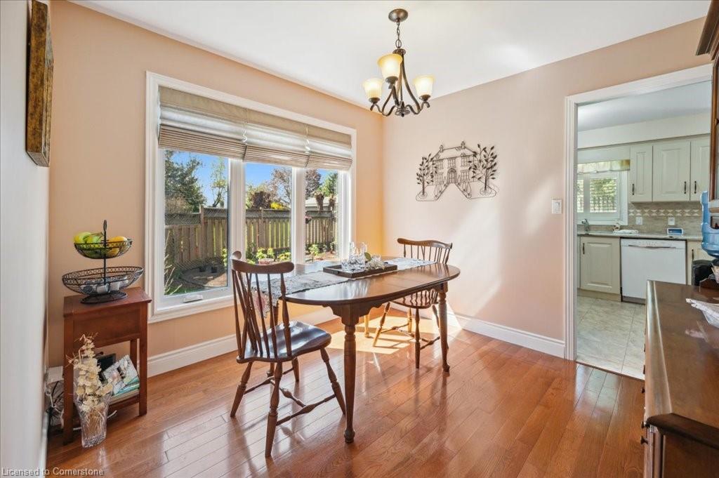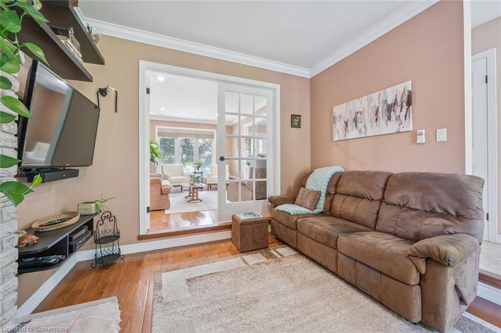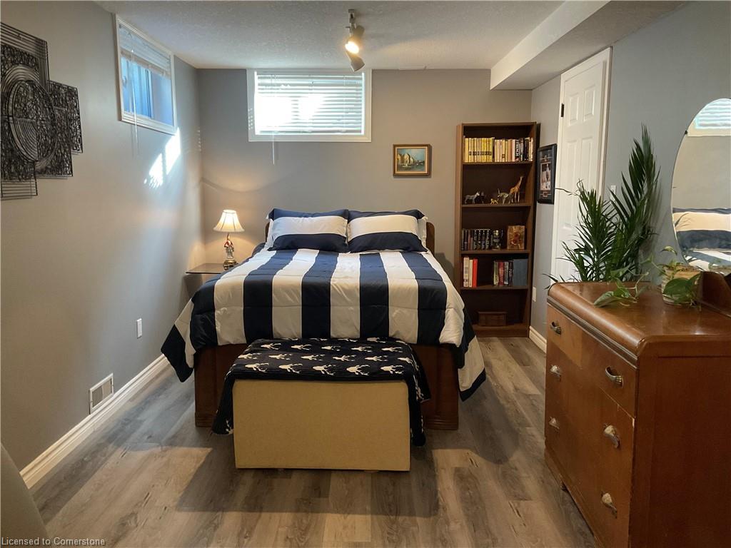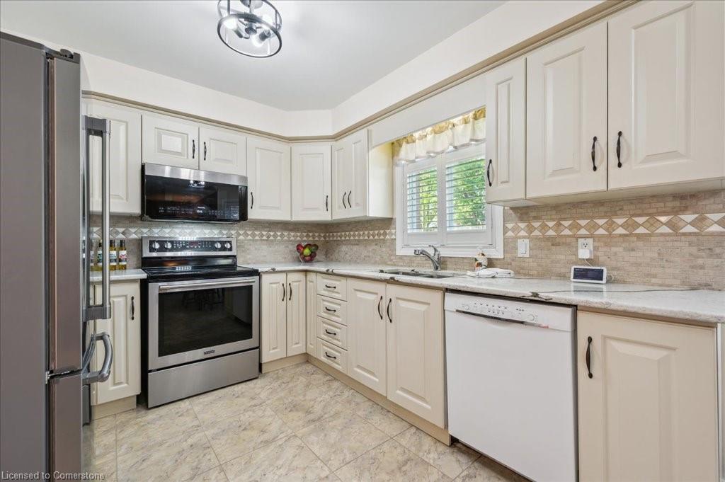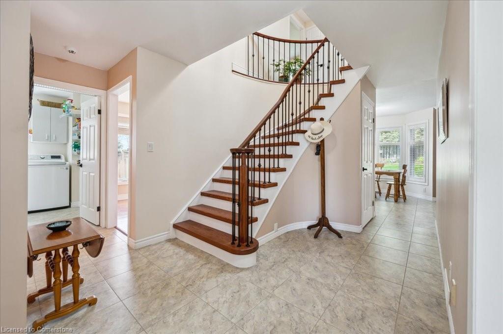 MOVE IN READY AND WELL MAINTANINED! All brick 2-storey home with 5 bedrooms and 4 bathrooms located in the Hespeler area of Cambridge with easy access to 401 Hwy for commuters. Built on a premium pool sized lot it has plenty to offer a family that has children, pets or extra live-in’s. The fenced-in yard boasts established perennial and vegetable gardens. Surrounding mature trees provide privacy for relaxation or entertaining on a pergola patio area with hot tub. Inside, this home includes a carpet free main floor family room with a wood burning brick fireplace and patio door. The connecting living room is bright and cheery with recessed lighting, a large window, H/W floors & crown molding. The dinning room also has H/W floors & large window overlooking the side gardens. Kitchen has a new quartz countertop installed in 2024 and includes S/S fridge, stove & microwave, Bosch B/I dishwasher. Dinette area has a bay window overlooking the rear yard, patio & hot tub. The sunny main floor Laundry room has 2pcs, large coat closet, storage cupboards and door leading to the 2 car garage. 2nd floor you will find 4 bedrooms with the Primary having a bright ensuite with W/I shower, heated tile flooring, skylight and plenty of counter space. There is still another 4 pc main bath located on the 2nd floor. If you require extra space the lower level is finished with a large rec-room with wet bar, counter, shelving & cupboards. There is also an extra oversized bedroom with W/I closet and a 3pc ensuite. Additional information: the staircase was updated in 2023, roof shingles 2024, eavestroughs 2023, primary ensuite 2022, H/W floors in living room, dining room, primary bedroom and upper hallway 2023, kitchen quartz counter 2024, water softener 2024. Garage Doors with openers 2021, both Skylights in 2020. Walking distance to schools, parks, arena, community centre, churches & close to great shopping and restaurants