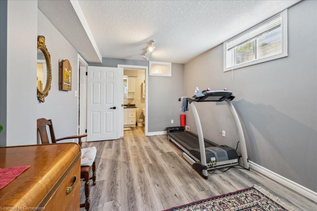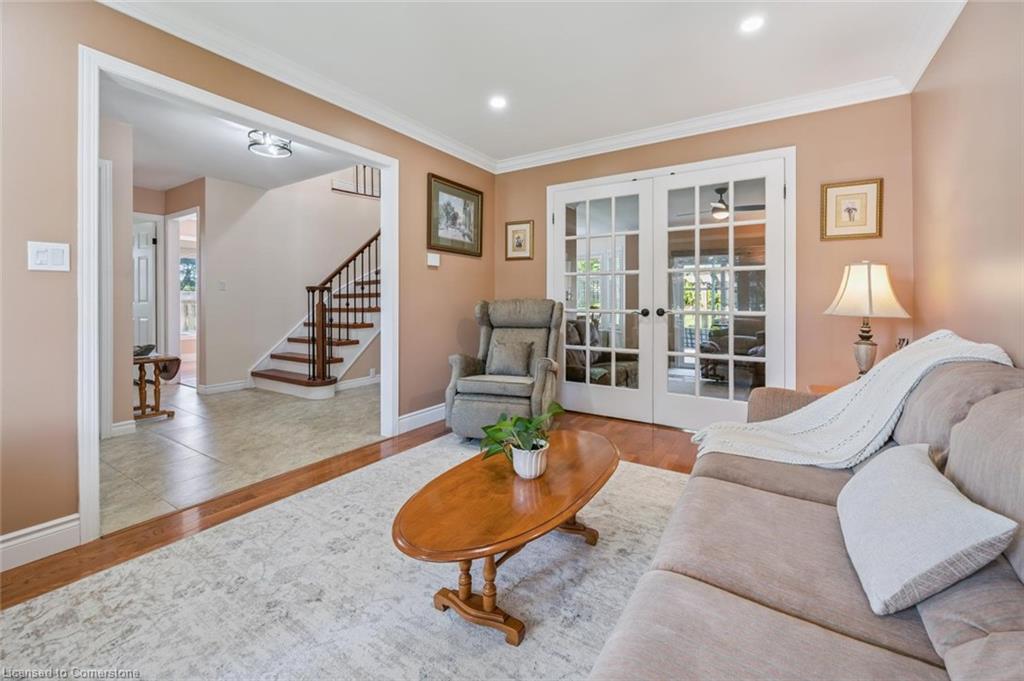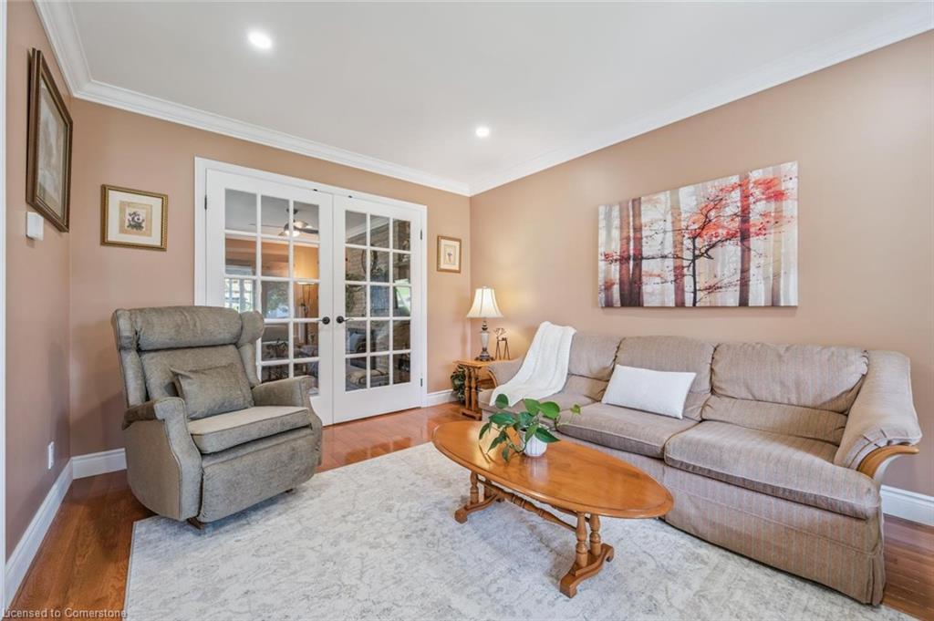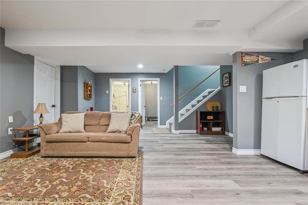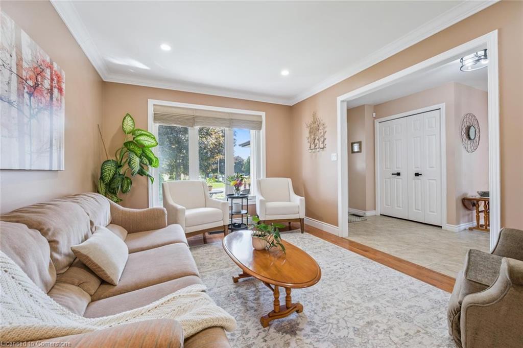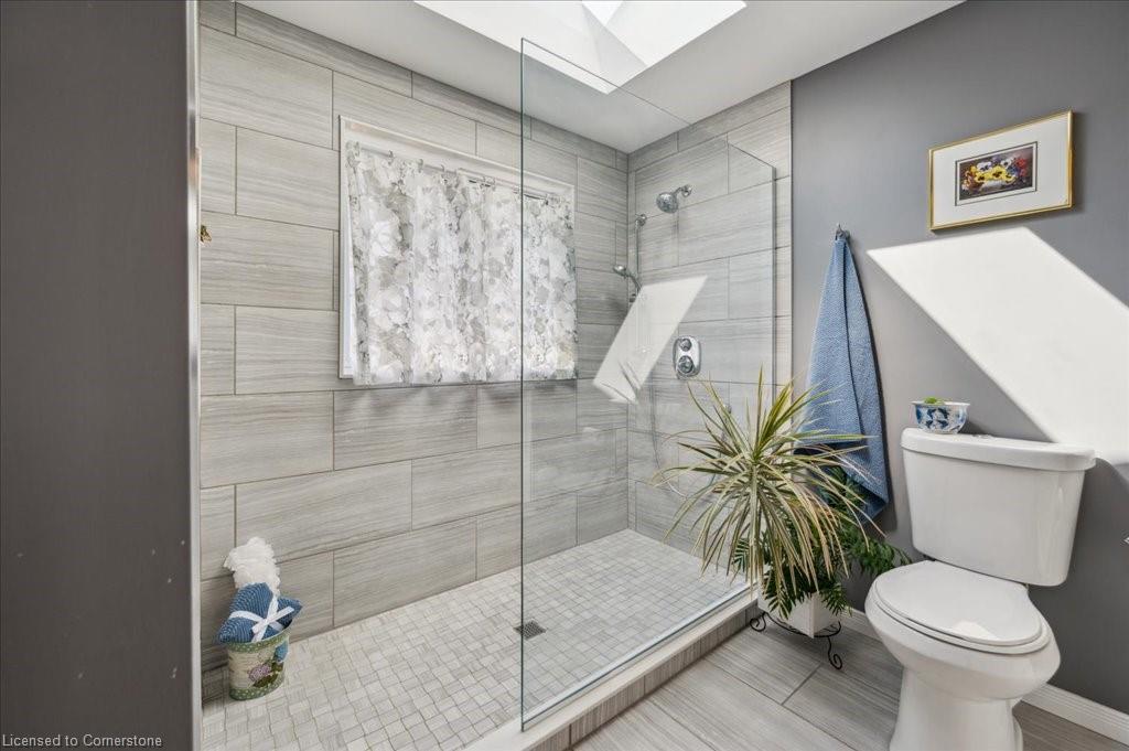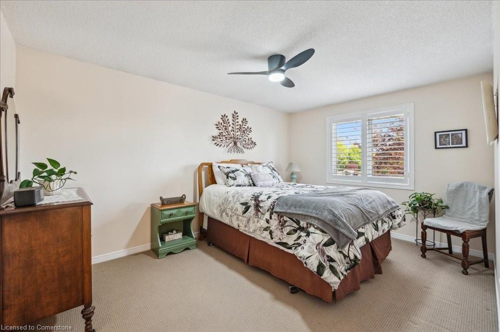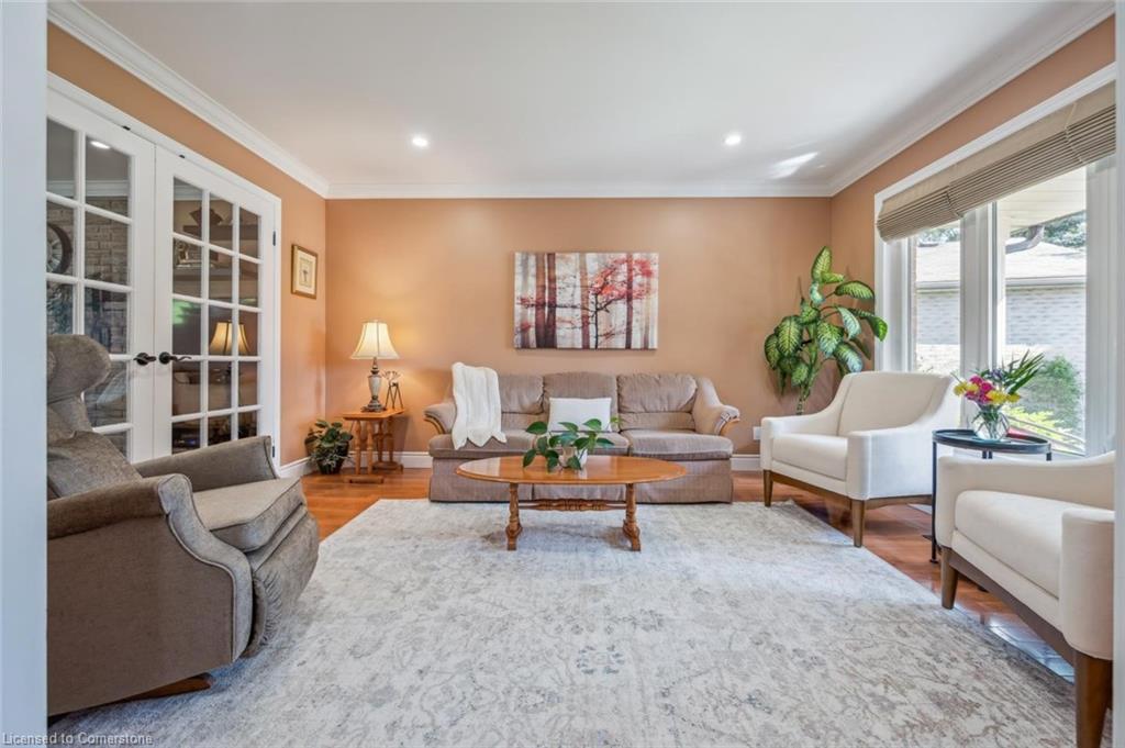 MOVE IN READY AND WELL MAINTANINED! All brick 2-storey home with 5 bedrooms and 4 bathrooms located in the Hespeler area of Cambridge with easy access to 401 Hwy for commuters. Built on a premium pool sized lot it has plenty to offer a family that has children, pets or extra live-in’s. The fenced-in yard boasts established perennial and vegetable gardens. Surrounding mature trees provide privacy for relaxation or entertaining on a pergola patio area with hot tub. Inside, this home includes a carpet free main floor family room with a wood burning brick fireplace and patio door. The connecting living room is bright and cheery with recessed lighting, a large window, H/W floors & crown molding. The dinning room also has H/W floors & large window overlooking the side gardens. Kitchen has a new quartz countertop installed in 2024 and includes S/S fridge, stove & microwave, Bosch B/I dishwasher. Dinette area has a bay window overlooking the rear yard, patio & hot tub. The sunny main floor Laundry room has 2pcs, large coat closet, storage cupboards and door leading to the 2 car garage. 2nd floor you will find 4 bedrooms with the Primary having a bright ensuite with W/I shower, heated tile flooring, skylight and plenty of counter space. There is still another 4 pc main bath located on the 2nd floor. If you require extra space the lower level is finished with a large rec-room with wet bar, counter, shelving & cupboards. There is also an extra oversized bedroom with W/I closet and a 3pc ensuite. Additional information: the staircase was updated in 2023, roof shingles 2024, eavestroughs 2023, primary ensuite 2022, H/W floors in living room, dining room, primary bedroom and upper hallway 2023, kitchen quartz counter 2024, water softener 2024. Garage Doors with openers 2021, both Skylights in 2020. Walking distance to schools, parks, arena, community centre, churches & close to great shopping and restaurants