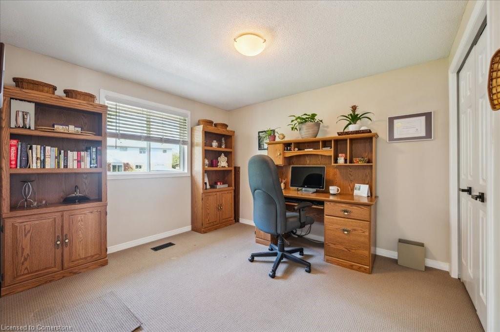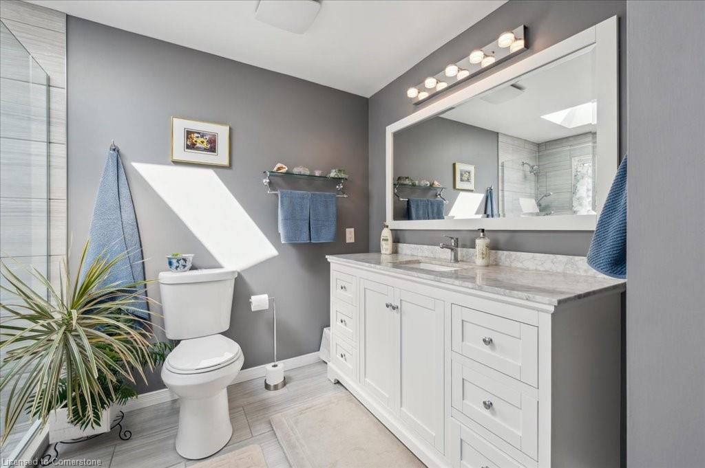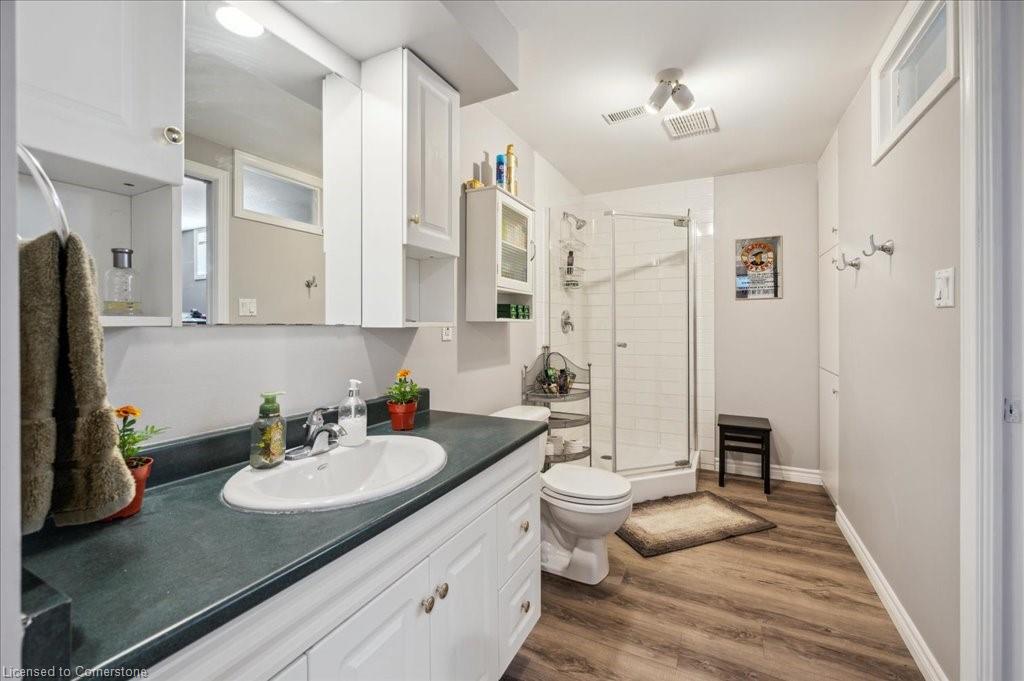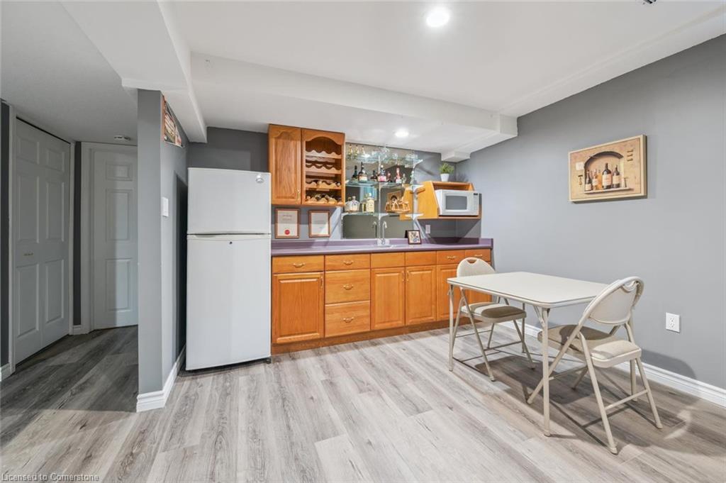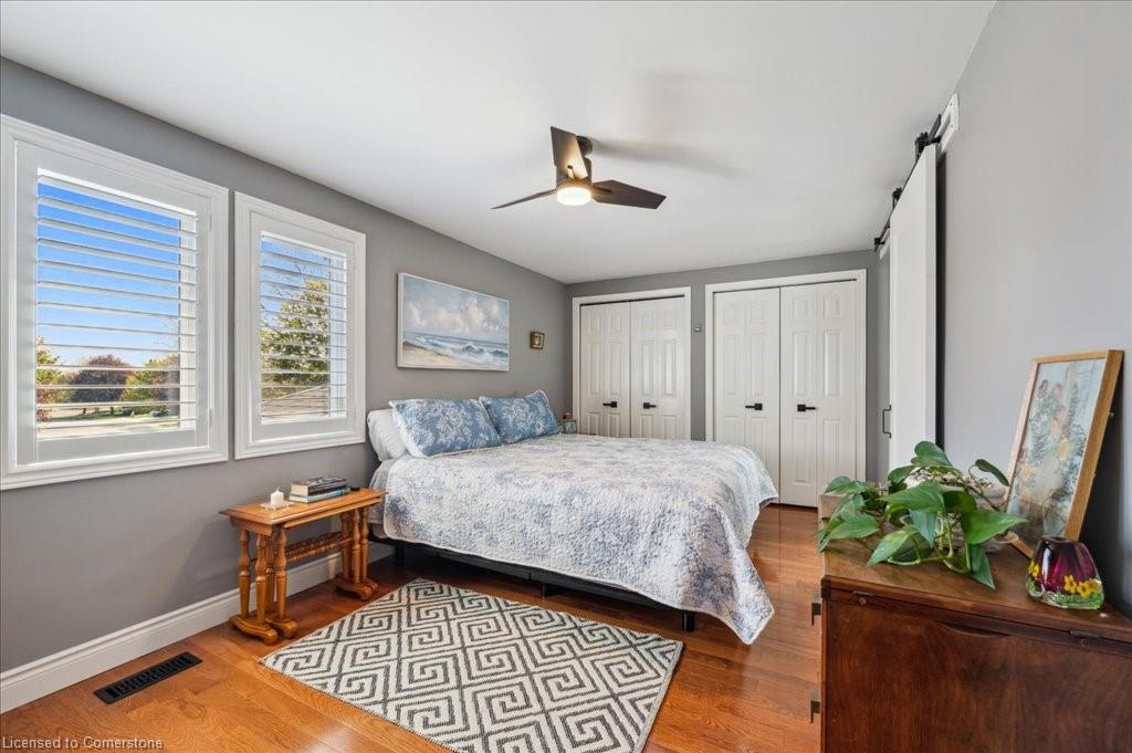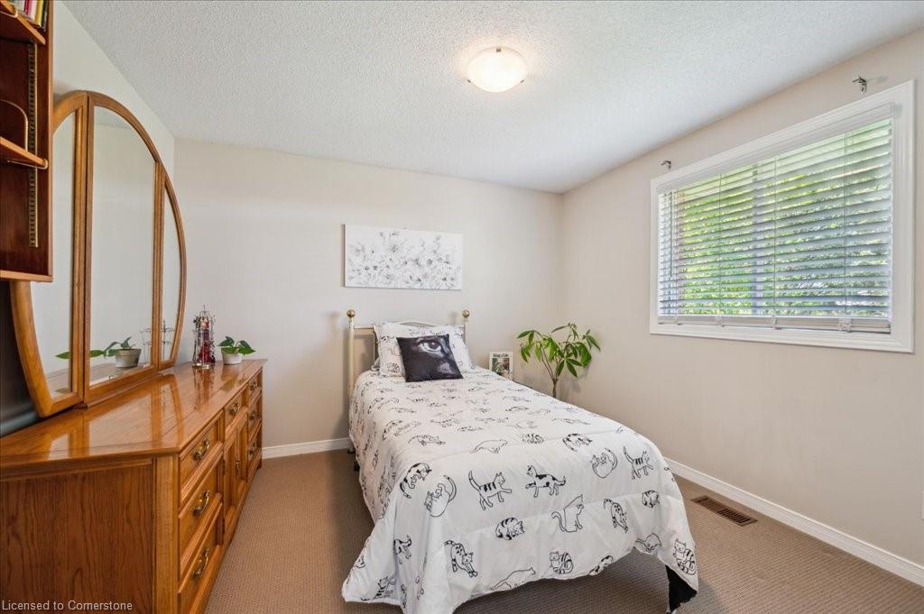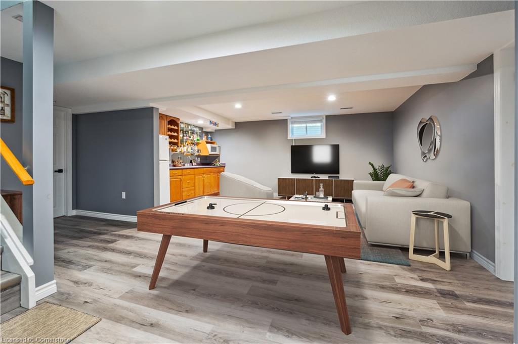 MOVE IN READY AND WELL MAINTANINED! All brick 2-storey home with 5 bedrooms and 4 bathrooms located in the Hespeler area of Cambridge with easy access to 401 Hwy for commuters. Built on a premium pool sized lot it has plenty to offer a family that has children, pets or extra live-in’s. The fenced-in yard boasts established perennial and vegetable gardens. Surrounding mature trees provide privacy for relaxation or entertaining on a pergola patio area with hot tub. Inside, this home includes a carpet free main floor family room with a wood burning brick fireplace and patio door. The connecting living room is bright and cheery with recessed lighting, a large window, H/W floors & crown molding. The dinning room also has H/W floors & large window overlooking the side gardens. Kitchen has a new quartz countertop installed in 2024 and includes S/S fridge, stove & microwave, Bosch B/I dishwasher. Dinette area has a bay window overlooking the rear yard, patio & hot tub. The sunny main floor Laundry room has 2pcs, large coat closet, storage cupboards and door leading to the 2 car garage. 2nd floor you will find 4 bedrooms with the Primary having a bright ensuite with W/I shower, heated tile flooring, skylight and plenty of counter space. There is still another 4 pc main bath located on the 2nd floor. If you require extra space the lower level is finished with a large rec-room with wet bar, counter, shelving & cupboards. There is also an extra oversized bedroom with W/I closet and a 3pc ensuite. Additional information: the staircase was updated in 2023, roof shingles 2024, eavestroughs 2023, primary ensuite 2022, H/W floors in living room, dining room, primary bedroom and upper hallway 2023, kitchen quartz counter 2024, water softener 2024. Garage Doors with openers 2021, both Skylights in 2020. Walking distance to schools, parks, arena, community centre, churches & close to great shopping and restaurants