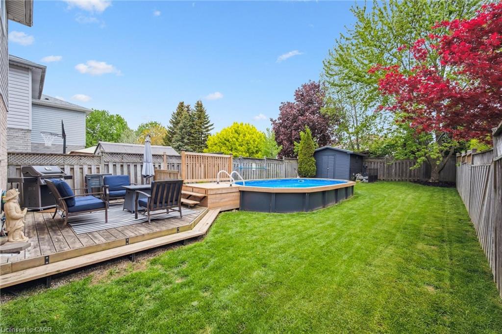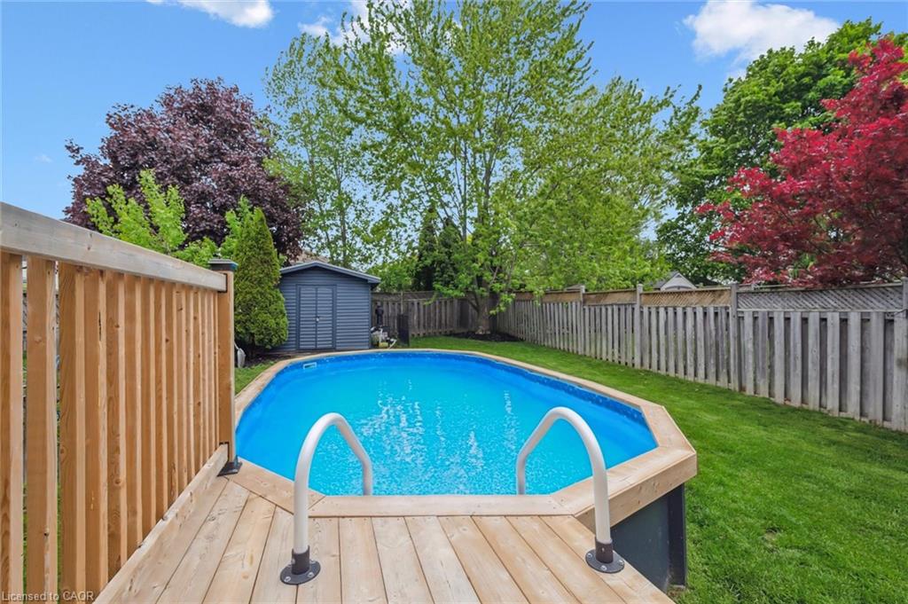 Super-sweet starter home alert! One of the newest and hottest listings to kick off the 2026 market, this move-in-ready gem could be yours just in time for spring-and for a full summer of enjoyment in the 12′ x 24′ heated above-ground pool. Nestled in a quiet, family-friendly neighbourhood on Guelph’s desirable east side, this charming home is the perfect place to begin your next chapter. From the moment you arrive, you’ll appreciate the excellent curb appeal, parking for two cars, and a neatly landscaped, low-maintenance yard. Step inside to a home that is as cozy as it is inviting. Thoughtfully laid out and lovingly maintained, every inch exudes warmth and personality. The extra-deep lot provides ample space for both relaxation and play. Imagine spending sunny days floating in the heated pool, entertaining on the deck, or watching kids and pets enjoy the expansive backyard. Ideal or first-time buyers, young families, or those looking to downsize, this sweet home checks all the right boxes. Don’t miss your chance to be the lucky next owner – this one won’t last long!
