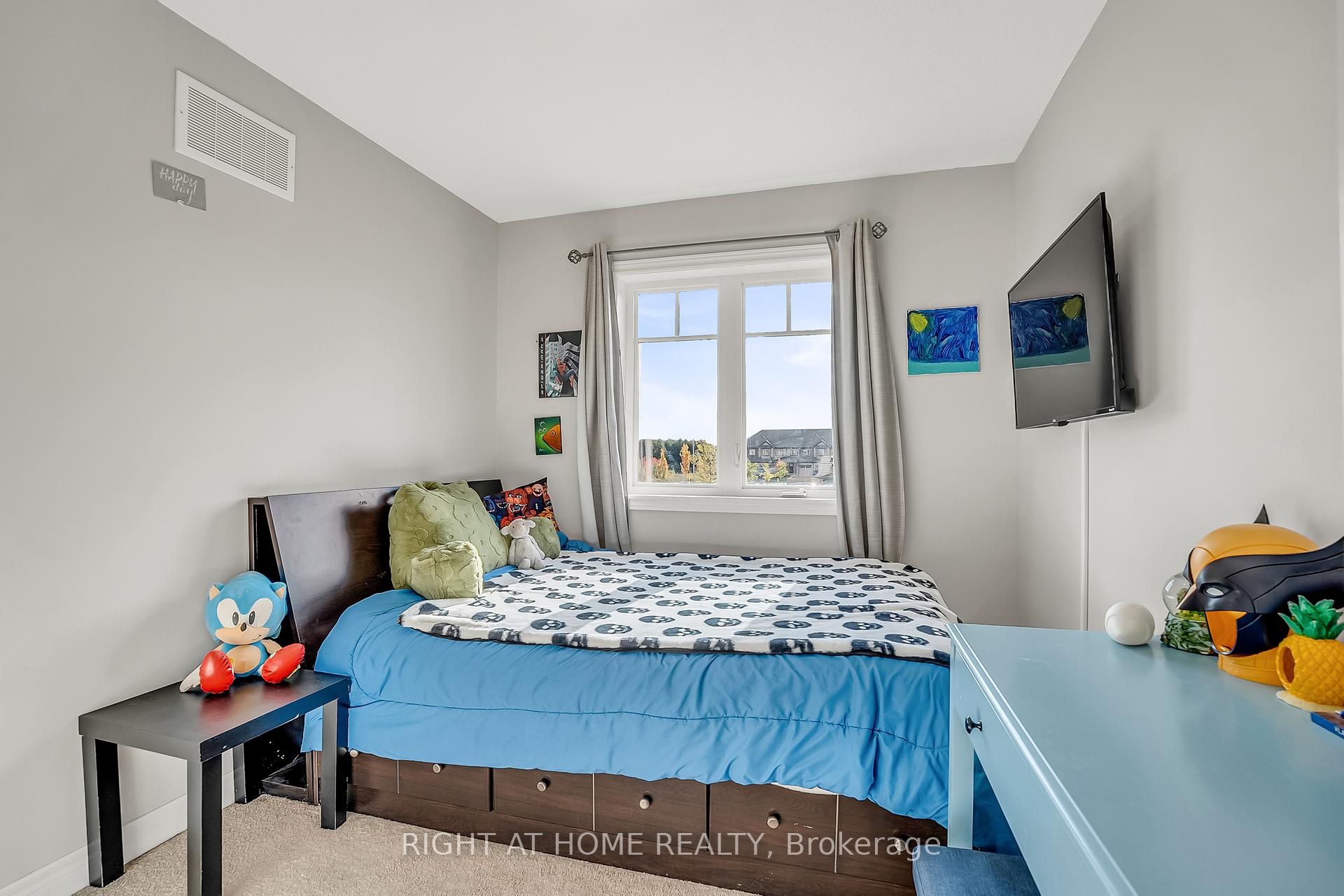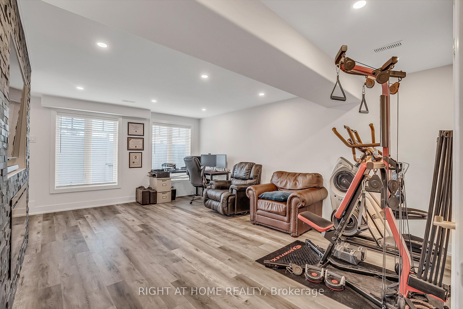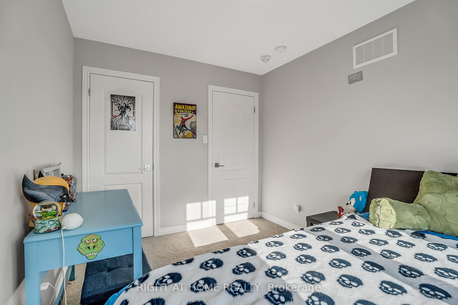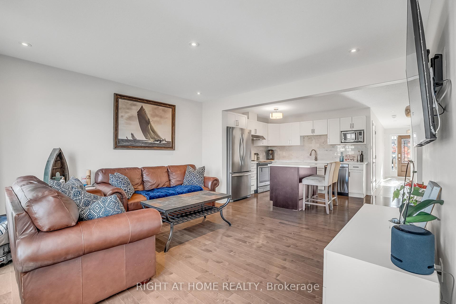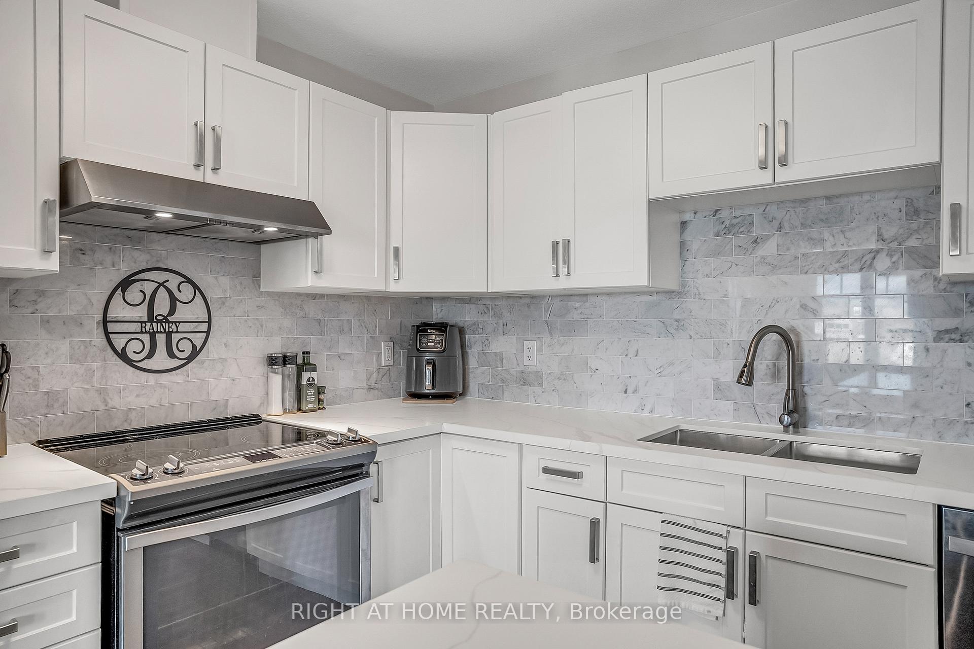 ** WALKOUT BASEMENT ** Welcome to this beautifully upgraded freehold townhouse, perfectly situated on a quiet, family-friendly cul-de-sac. Move-in ready and tastefully finished from top to bottom, this home exudes modern style and comfort. The professionally landscaped front yard creating an inviting first impression. Inside, the open-concept main level showcases a designer kitchen complete with a centre island, quartz countertops, sleek backsplash, and stainless steel appliances. The bright and spacious living area features large windows and a built-in entertainment wall, ideal for relaxing or entertaining. Upstairs offers three generous bedrooms and two bathrooms, including a primary suite with a large closet and private 3-piece ensuite. The finished basement extends the living space with a beautifully finished recreation area and a convenient fourth bathroom. Step outside from the walkout basement to a private, fully fenced backyard with newly laid sod and no rear neighbours perfect for outdoor gatherings. With parking for two vehicles, inside access from the garage, and ample visitor parking nearby, this exceptional home combines comfort, convenience, and a prime location near top-rated schools, parks, and everyday amenities.