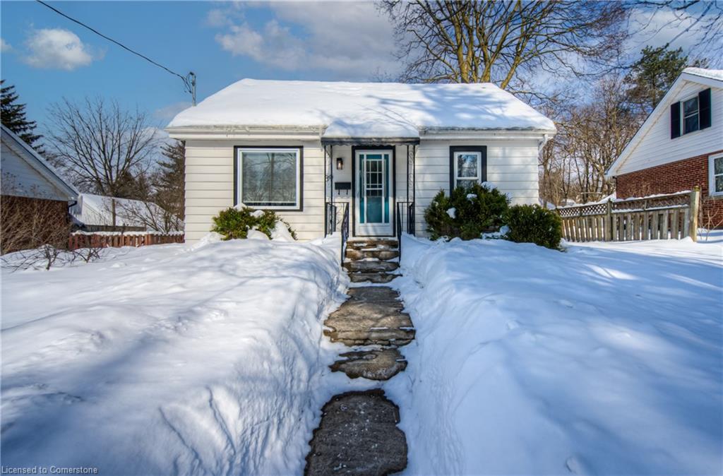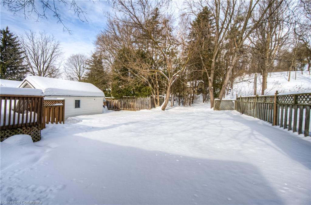 CHARMING 1.5-STOREY ON A FANTASTIC LOT. Nestled on a quiet street just steps from the Speed River, this delightful home offers both convenience and untapped potential. Ideally located minutes from downtown Hespeler, with quick access to the 401 and Guelph, this property is perfect for both work and leisure. Sitting on a generously sized lot, this home boasts over 1,500 sq. ft. of living space, featuring 3 bedrooms—including 1 on the main floor—and a full bathroom. The finished basement adds versatility with a cozy rec room, office space, laundry, and ample storage. A detached garage and driveway provide parking for 5+ vehicles. The partially fenced yard offers mature trees and a deck, perfect for outdoor relaxation. Whether you’re looking for a spring project or a home with character to make your own, this property is bursting with opportunity. Roof (2014), AC and furnace (2011). Located within walking distance of parks, schools, shops, and more, this is the perfect place to create new memories!
