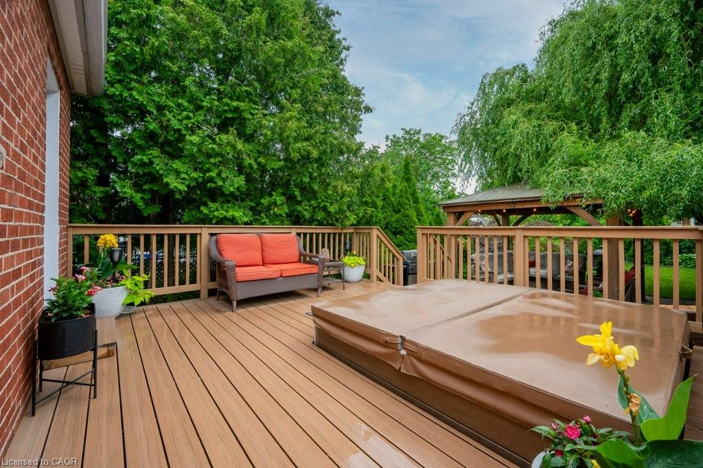 Charming Bungalow Oasis. Welcome to this beautifully updated 2-bedroom bungalow located in a prime west mountain location, just minutes from Mohawk College, The Linc, and the scenic Mountain Brow. This home offers the perfect blend of modern updates and serene outdoor living. Step inside to a freshly painted interior featuring a decorative fireplace in the living room and an updated kitchen complete with pot lights, granite countertops, and stainless steel appliances. The finished basement provides additional living space, ideal for a family room, home office, or guest suite. Outside, you’ll find a stunning backyard oasis designed for relaxation and entertaining. Enjoy the composite deck, unwind in the hot tub, relax under the gazebo, and admire the landscaped garden filled with low-maintenance perennials. With parking for up to 4 vehicles, this move-in ready gem is perfect for first-time buyers, downsizers, or investors. Don’t miss your chance to own this exceptional home in a highly sought-after location!