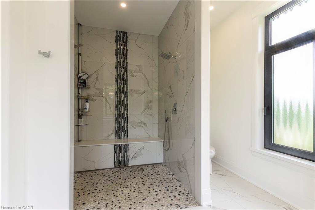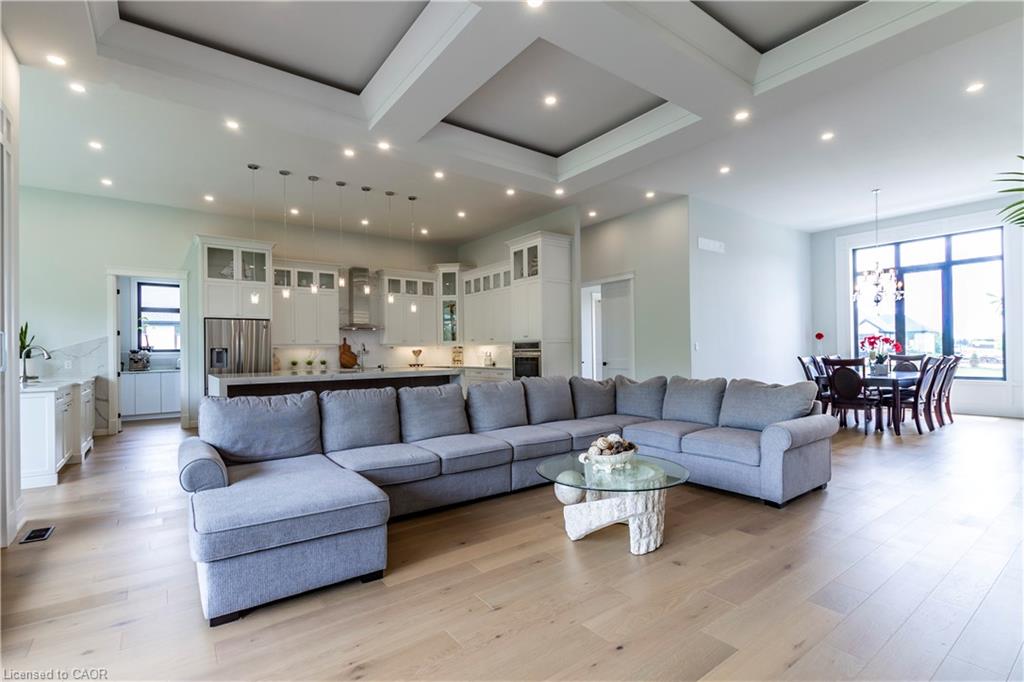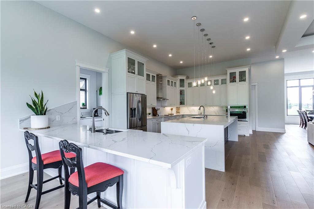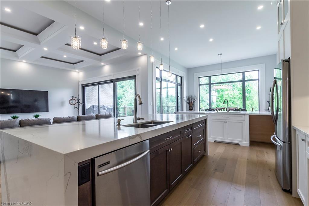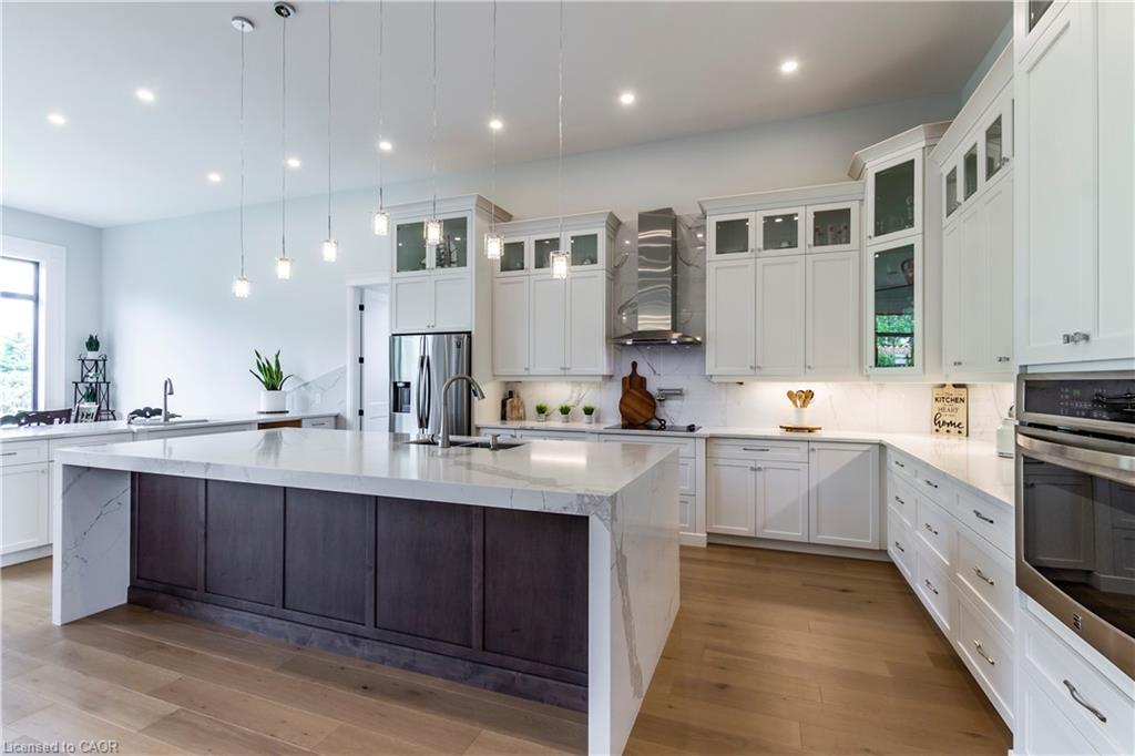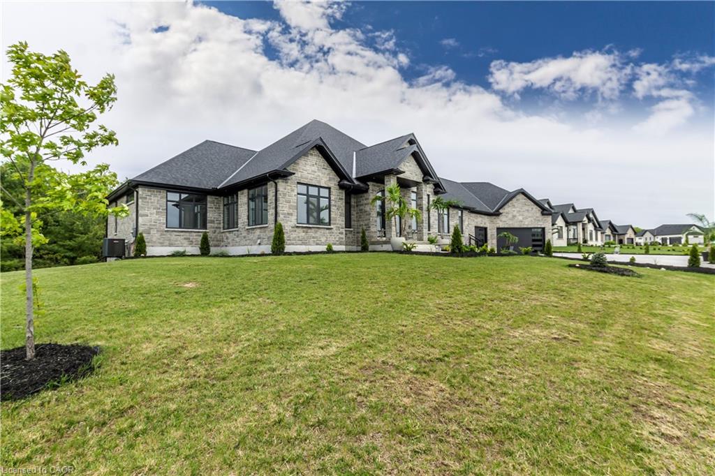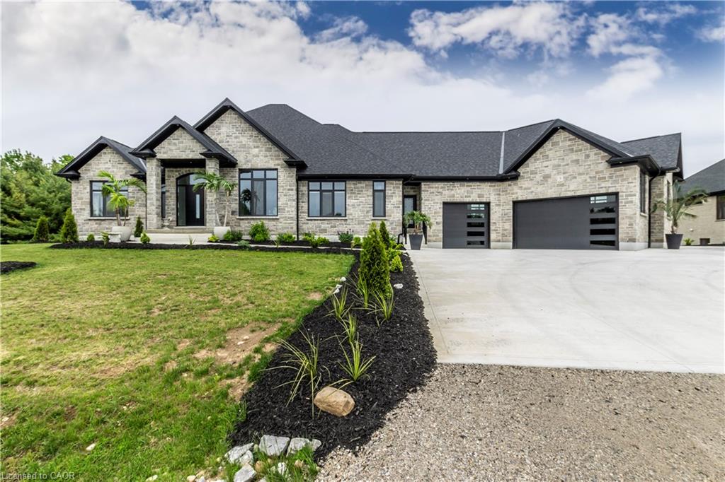 Closing flexible, Luxurious Custom Bungalow on 1.3 Acres | 6600 sq. ft. | Walkout Basement Step into elegance and energy efficiency with this stunning custom-built bungalow. Perfectly situated on a sprawling 1.3-acre lot with a 270 ft. frontage, this home offers 6600 sq. ft. of living space designed for both comfort and sophistication. Key Features: Grand Foyer & Open Concept Design: Soaring 12 ft. coffered ceilings and triple-pane windows provide an airy, light-filled atmosphere throughout. The seamless flow leads you to a private covered deck, ideal for relaxation or entertaining. Chef-Inspired Kitchen: With quartz countertops, dual sinks, built-in appliances, and a massive island with a separate peninsula, this kitchen is designed for those who love to cook and host. Luxurious Primary Suite: Enjoy direct deck access and a spa-like ensuite featuring a 6’x6′ walk-in shower, heated floors with a bench, soaker tub, and double vanities. All Bedrooms with 10 ft. Ceilings: Spacious, bright, and designed for ultimate comfort. Fully-Equipped Bathrooms: Heated floors throughout, including the basement rough-ins. Walkout Basement Ready for Your Vision: Already studded with 9′ ceilings, large windows, and triple pane glass, French doors and windows opening to the patio. Rough-ins for 2 bedrooms, 3 bathrooms, laundry, and kitchen make this space ideal for future development. Superior Efficiency: Built with an Insulated Concrete Form (ICF) foundation for excellent energy efficiency and soundproofing. Outdoor Paradise: Expansive pool-sized backyard surrounded by mature trees offers complete privacy and natural beauty. Convenience: A triple-wide concrete driveway, second driveway, and a 3-car garage provide ample parking and storage. Additional Features: Air exchanger, central vacuum, on-demand water heater (owned), water softener & treatment system, sump pump, remote garage opener, and more! This home is a must-see to truly appreciate all it has to offer!