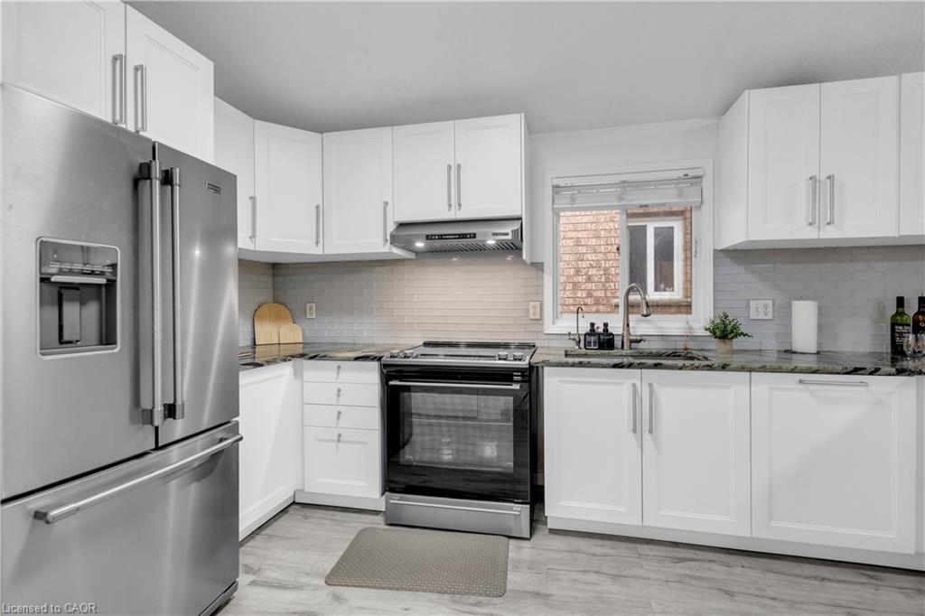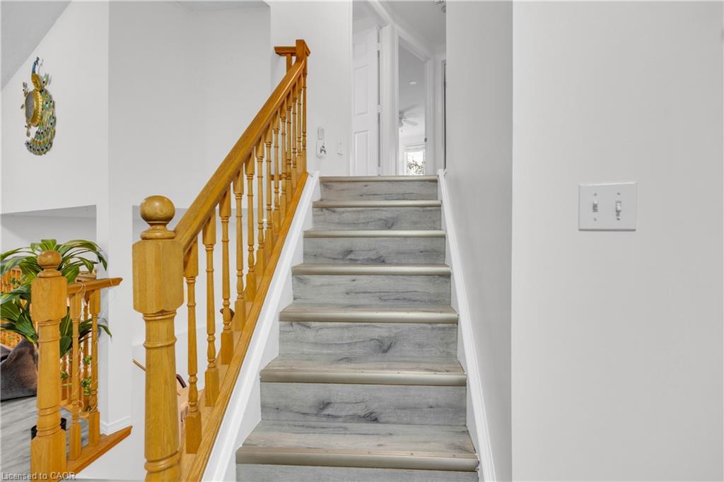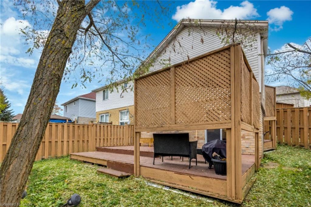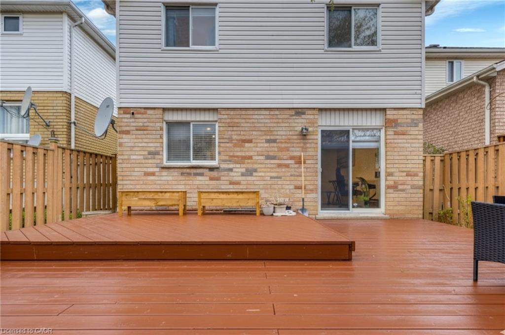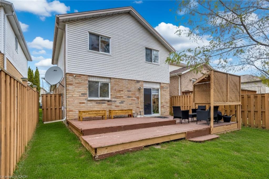 Welcome to 9 Bush Clover Crescent, Kitchener: nestled in the highly sought-after and family-friendly Williamsburg neighbourhood. This beautifully maintained detached home offers stunning curb appeal and convenience of 3 parking spaces (1-car garage, 2-car driveway), making it perfect for growing families. Step inside the welcoming foyer overlooking the carpet-free main level, featuring high-quality laminate flooring. The thoughtfully designed multi-level layout gives every part of the home its own inviting charm. The open-concept kitchen, fully upgraded with modern white cabinetry, stainless steel appliances, marble countertops and plenty of storage. The adjacent dining area, complete with an extra pantry added in 2024, offers the perfect spot for everyday meals or special family gatherings. just a few steps down, there is an impressive sun-filled living room featuring large windows and a cozy gas fireplace, a bright and airy space ideal for movie nights, entertaining or unwinding with loved ones. This level also includes a stylish 3pc bathroom, adding convenience for guests and family alike. The upper level hosts three generously sized bedrooms, each with ample closet space and natural light. A well-appointed 4pc bathroom with a shower-tub combo completes this floor. The fully finished basement adds even more living space, boasting a large recreation room, a wet bar perfect for hosting or relaxing and a dedicated laundry area. Step outside to your private, fully fenced backyard, accessible from both the kitchen and living room. Enjoy summer days on the impressive double-tier deck, perfect for BBQs, outdoor dining or quiet mornings with coffee. Other Upgrades Include: 2025 Air Conditioner, Stainless Steel Appliances (only few years old), Rangehood 2024, Washer/Dryer 2023. With close proximity to major highways, top-rated schools, shopping, restaurants and beautiful walking trails, this home is perfect for First Time Home buyers or investors. Book your showing Today!