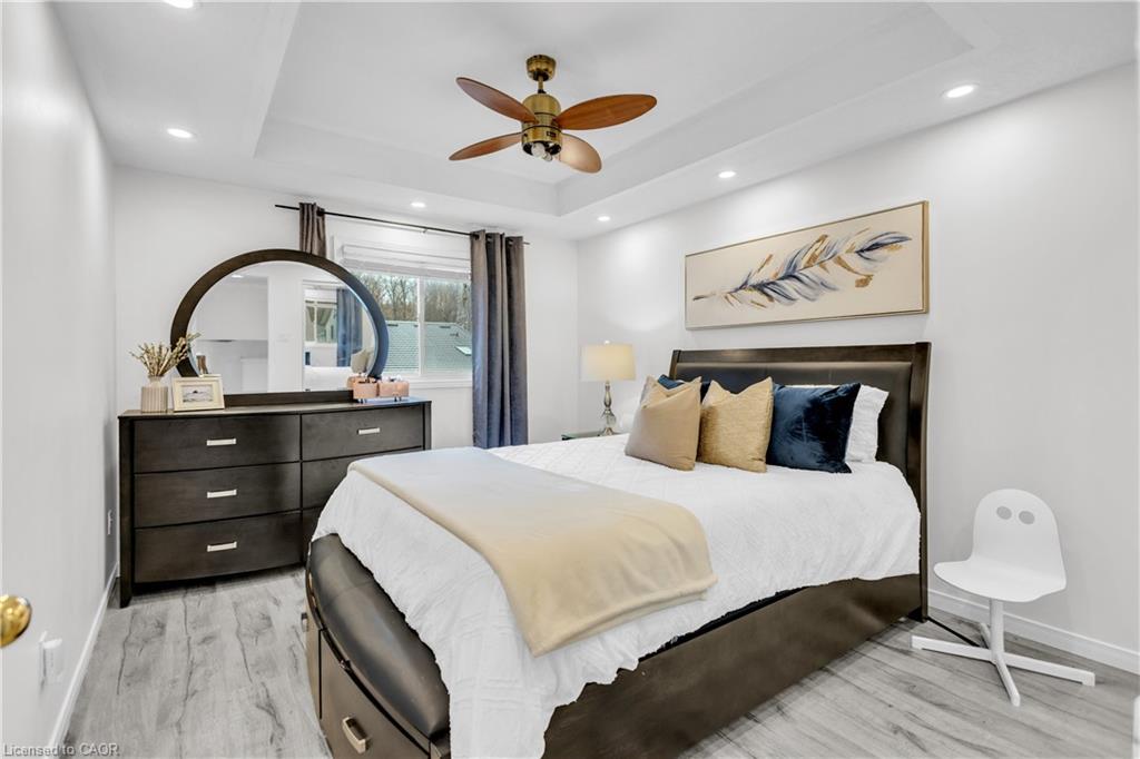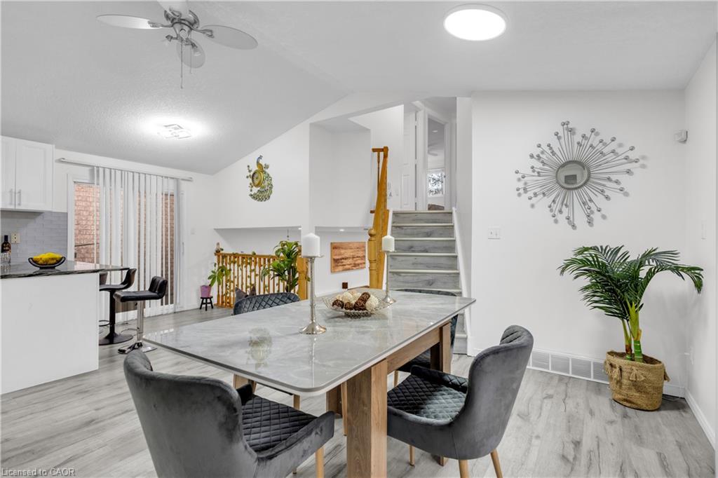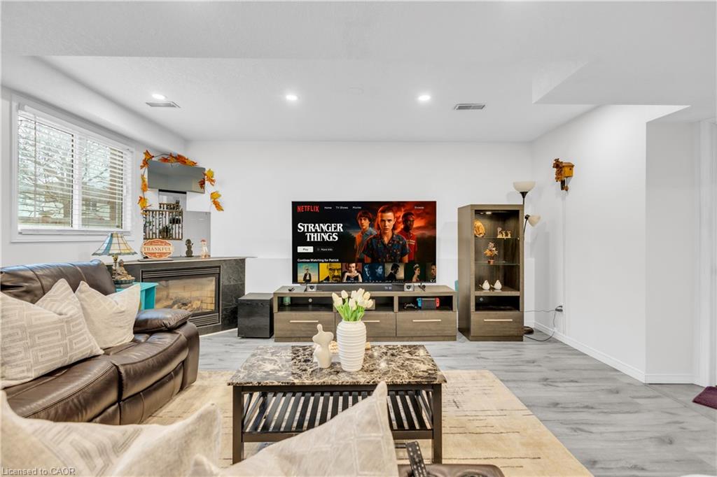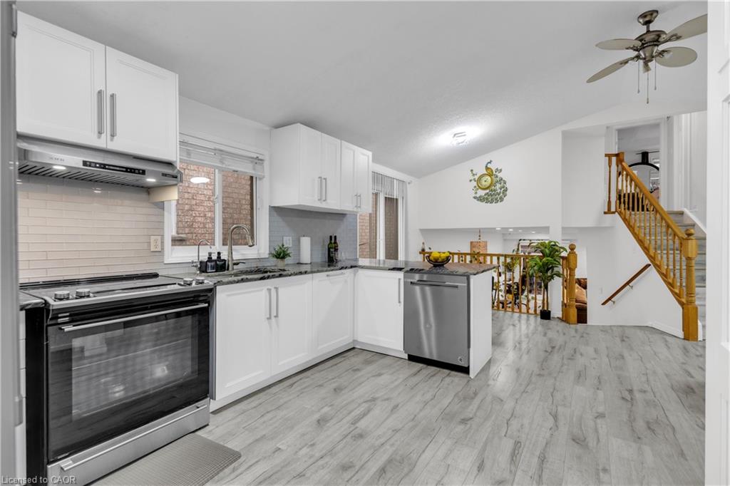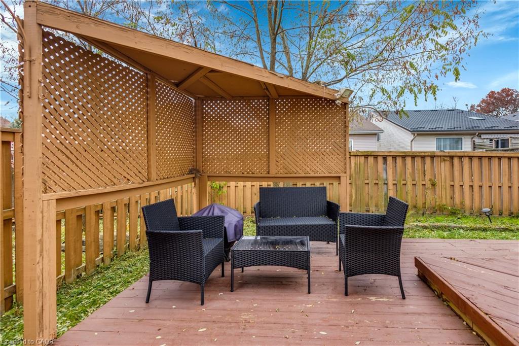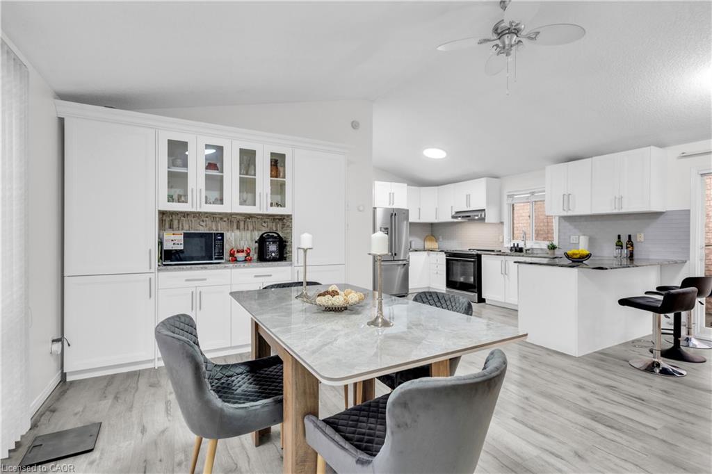 Welcome to 9 Bush Clover Crescent, Kitchener: nestled in the highly sought-after and family-friendly Williamsburg neighbourhood. This beautifully maintained detached home offers stunning curb appeal and convenience of 3 parking spaces (1-car garage, 2-car driveway), making it perfect for growing families. Step inside the welcoming foyer overlooking the carpet-free main level, featuring high-quality laminate flooring. The thoughtfully designed multi-level layout gives every part of the home its own inviting charm. The open-concept kitchen, fully upgraded with modern white cabinetry, stainless steel appliances, marble countertops and plenty of storage. The adjacent dining area, complete with an extra pantry added in 2024, offers the perfect spot for everyday meals or special family gatherings. just a few steps down, there is an impressive sun-filled living room featuring large windows and a cozy gas fireplace, a bright and airy space ideal for movie nights, entertaining or unwinding with loved ones. This level also includes a stylish 3pc bathroom, adding convenience for guests and family alike. The upper level hosts three generously sized bedrooms, each with ample closet space and natural light. A well-appointed 4pc bathroom with a shower-tub combo completes this floor. The fully finished basement adds even more living space, boasting a large recreation room, a wet bar perfect for hosting or relaxing and a dedicated laundry area. Step outside to your private, fully fenced backyard, accessible from both the kitchen and living room. Enjoy summer days on the impressive double-tier deck, perfect for BBQs, outdoor dining or quiet mornings with coffee. Other Upgrades Include: 2025 Air Conditioner, Stainless Steel Appliances (only few years old), Rangehood 2024, Washer/Dryer 2023. With close proximity to major highways, top-rated schools, shopping, restaurants and beautiful walking trails, this home is perfect for First Time Home buyers or investors. Book your showing Today!