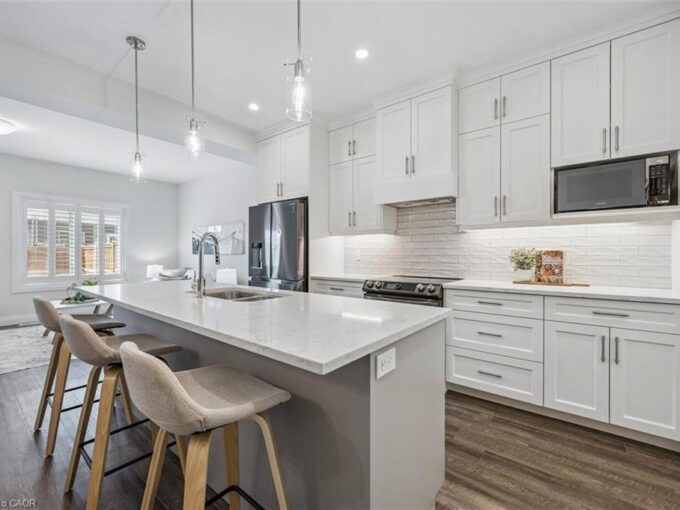Welcome to 9 Elsegood Drive, a beautifully maintained 3-bedroom, 2.5-bathroom semi-detached home in Guelph’s highly desirable Kortright East neighbourhood. Built in 2022, this modern gem combines stylish finishes with family-focused functionality – all nestled in the quiet, south end of Guelph. Step inside to 9′ ceilings, pot lights, and sun-filled living spaces that flow effortlessly from the granite countertop kitchen (with stainless steel appliances & loads of storage!) to the cozy dining area and bright living room. Slide open the patio doors and enjoy easy access to the backyard – perfect for kids, pets, and weekend BBQs. Upstairs, retreat to the spacious primary bedroom featuring a walk-in closet, an extra double closet, and a 4-piece ensuite. Two additional bedrooms offer generous space and natural light, ideal for growing families or a home office setup. The unfinished basement is full of future potential – customize it your way with extra living space, a gym, or playroom. Additional features include a central vacuum, garage door opener, and parking for 3 cars with no sidewalk to shovel! Located just minutes from the Claire Road shopping hub, Stone Road Mall, University of Guelph, and a brand-new high school being built at Victoria Rd S & Arkell – this is a rare chance to own in one of Guelph’s most family-oriented communities. Don’t miss your opportunity to call this nearly-new home yours!