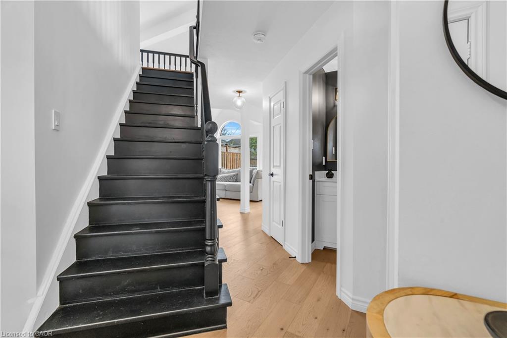 Welcome to this stunning, fully renovated home nestled in the heart of Clairfields, one of Guelph’s most sought-after neighbourhoods! Thoughtfully updated from top to bottom, this detached gem features 3 spacious bedrooms, 3 stylish bathrooms, and a rare double car garage. Inside, you’ll find a modern, chic colour palette, carpet-free living, and hardwood floors throughout. The sun-filled living area is enhanced by oversized arched windows and vaulted ceilings, creating a bright and airy space. The upgraded kitchen is equipped with stainless steel appliances, ample cabinetry, and a cozy eat-in area that walks out to your oversized new deck, ideal for hosting friends and family. The finished basement offers even more living space, including a large rec room, modern full bath, laundry area, and versatile layout, perfect for a guest suite, home office, or media room. The private fenced backyard is beautifully landscaped and ready for summer enjoyment. Conveniently located, you’ll have endless retail, dining, and entertainment options at your fingertips. Preservation Park is just a short walk away, offering endless acres of scenic trails for walking, biking, and enjoying nature. Plus, you’re just minutes from Highway 401, making commuting a breeze. Move-in ready and packed with value – this is one you don’t want to miss!