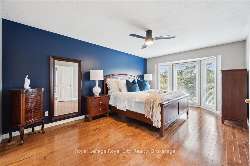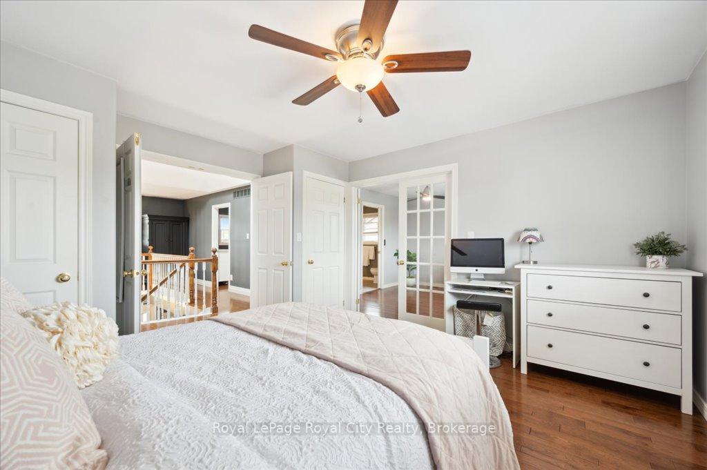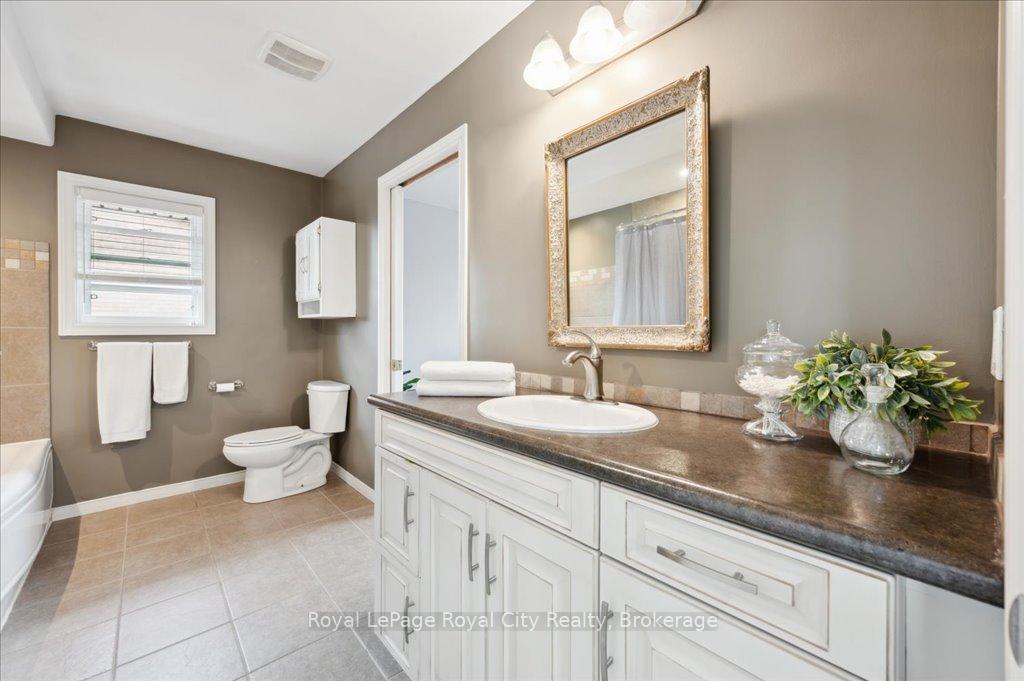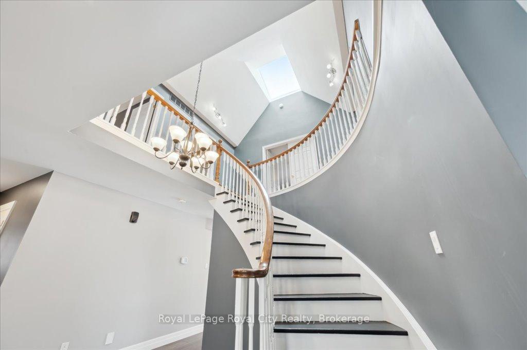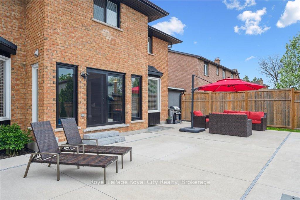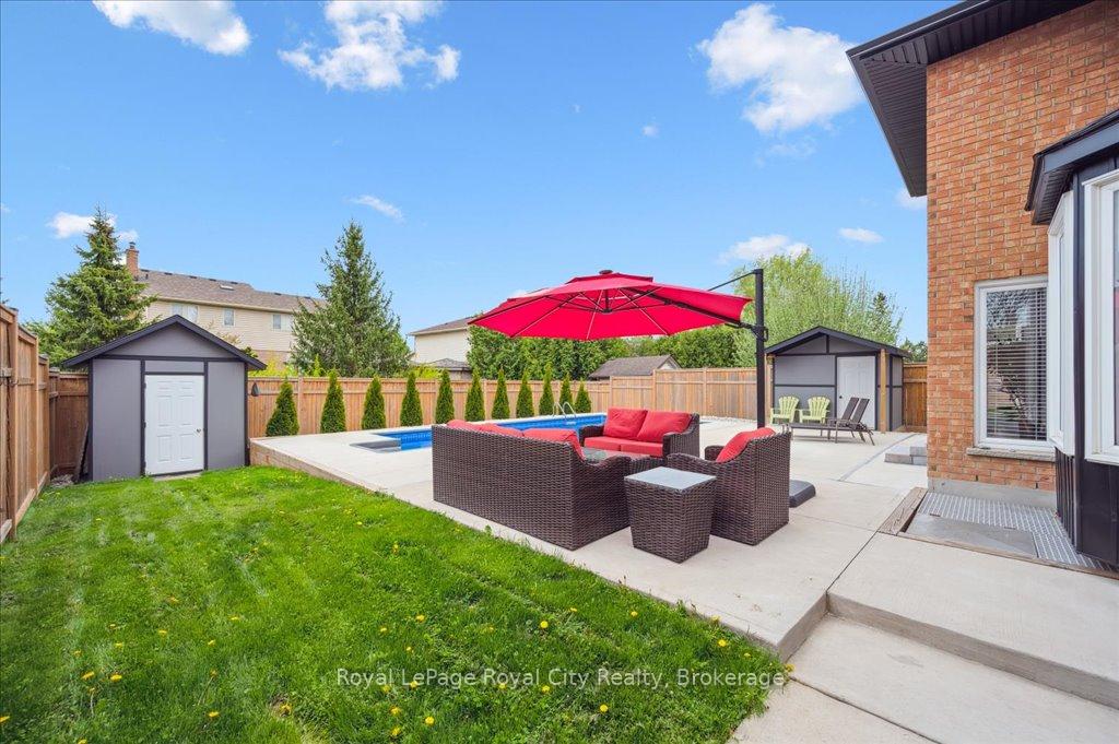 Welcome to 9 Kortright Road East, where elegance meets everyday functionality in one of Guelphs most desirable neighborhoods. This beautifully renovated, two-storey brick home offers exceptional curb appeal with a double garage, interlock driveway, modern garage/front door, and mature landscaping. Step inside to a grand foyer with a curved wooden staircase and soaring ceilings, setting the tone for the refined interiors throughout. The heart of the home is the stunning chefs kitchen, featuring an oversized quartz island with seating for ten, sleek black cabinetry, a built in pot-filler, and statement lighting. Stunning glass sliding doors and picture windows provide panoramic views and seamless access to the resort-style backyard with a heated pool ideal for summer entertaining and relaxing. Enjoy the thoughtfully designed layout with spacious principal rooms, including a formal living room and cozy family room with accent wall and brick fireplace. Upstairs, the primary suite is a luxurious retreat, featuring a 4pc bathroom with soaker tub and walk-in closet. The second bedroom includes a secondary bedroom/dressing room which has its own entrance to the shared 4pc bathroom, while the third bedroom is also generous in size. Downstairs, find a 2-bedroom basement apartment with ample living space. Separating the apartment is a door that takes you through to the exercise room. Enjoy the footprint of your basement while having an entirely separate suite. This meticulously maintained home is move-in ready with countless upgrades and located just minutes from top-rated schools, the University of Guelph, shopping, transit, and parks.