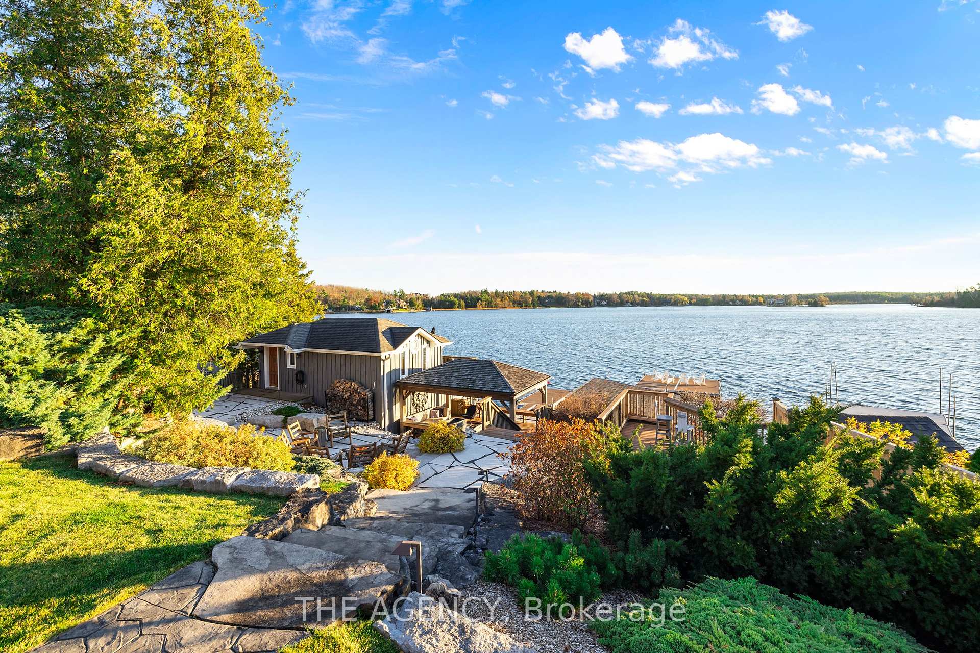 This exceptional waterfront home on Puslinch Lake offers over 70 feet of owned shoreline and a lifestyle most only dream of. Originally constructed in 1915, the residence underwent a major renovation from 2012-2013, drastically increasing its square footage and interior space. A timeless stone exterior was added, while the interior was fully reimagined with high-end finishes, modern systems, and thoughtfully designed spaces for contemporary living. Outdoor living is truly unmatched: the propertys south-facing exposure provides phenomenal sunrises and sunsets, bathing the space in natural light throughout the day. From every vantage point, you’ll enjoy breathtaking water views. A built-in outdoor kitchen, pergola, hot tub, multi-tiered seating areas, fire pit, and a sit up bar with tiki lounge all combine to create the ultimate lakefront escape. The main level features a primary bedroom with a private 4-piece ensuite and dedicated laundry, alongside generous entertaining areas including an open kitchen, dining room, and family room. A separate office provides flexibility as an additional bedroom. Upstairs, a peaceful guest suite boasts stunning lake views through a massive picture window an ideal retreat or an alternative primary suite. The finished basement adds even more functional living space, featuring a fantastic recreation area complete with a wet bar, wine cellar, and a 2-piece washroom perfect for entertaining or unwinding after a day on the lake. The attached two-storey workshop is fully insulated and features heated floor ideal for creative projects, hobbies, or a private studio. Topping it all off, a two-storey boathouse-newly built in 2007-includes a full accessory apartment with its own private deck. This is a one-of-a-kind property offering history, luxury, and endless lakeside enjoyment.