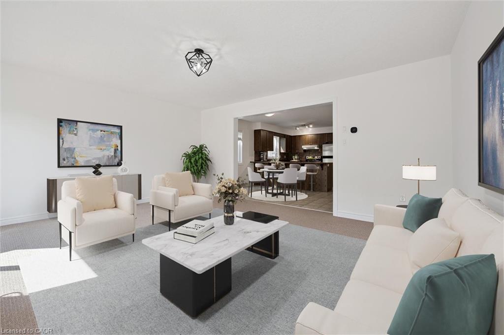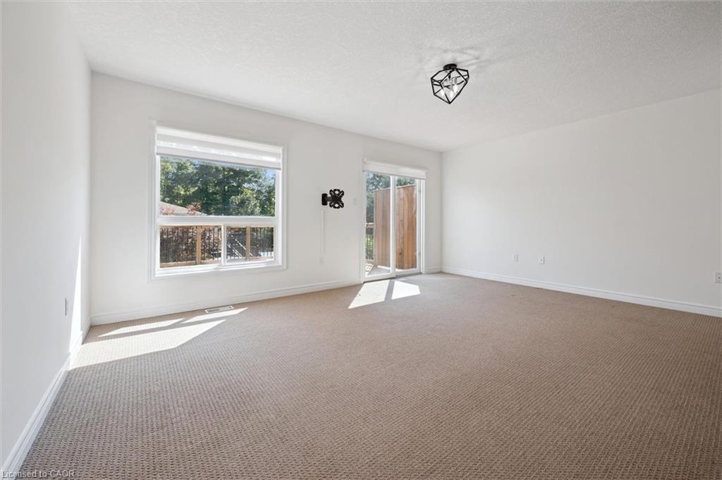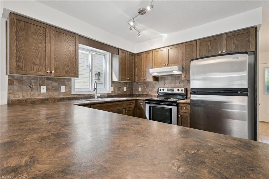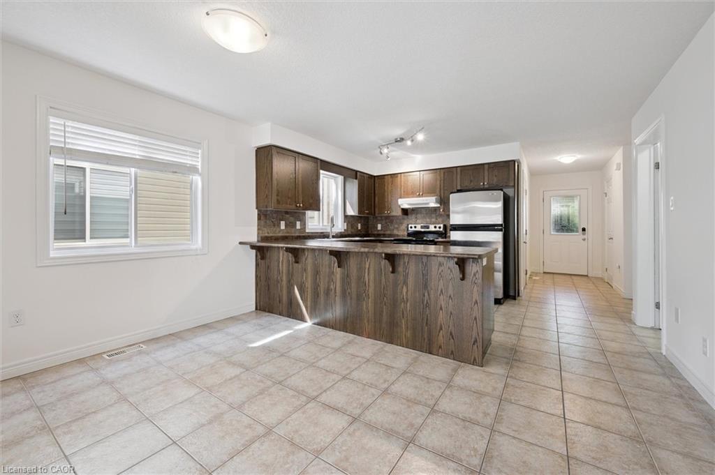Welcome to your dream home! This beautifully maintained freehold townhome is ideally situated near the Grand River Trails, a new high school, and Chicopee Ski Resort, offering a perfect blend of outdoor recreation and convenience. With great access to the 401, this home is a commuter’s dream.Built with exceptional quality by Fusion Homes, this property stands out with a premium “forest view” lot. The professionally finished walkout basement provides in-law suite possibilities, and the primary suite features a full ensuite and a spacious walk-in closet.The main floor is designed for modern living with a convenient two-piece powder room and an open-concept layout. The kitchen boasts stainless steel appliances, rich cabinetry, a stylish backsplash, and a large breakfast bar. The expansive dining area flows seamlessly into the great-sized living room, which has a walkout to an oversized deck with stunning views of the forest.Upstairs, you’ll find three generously sized bedrooms, including the private primary suite, along with a four-piece main bathroom.The professionally finished basement is an excellent bonus, offering a gorgeous three-piece bathroom, an office area, a bedroom, and a rec room with built-ins, perfect for an in-law setup. The basement also includes a laundry room, a utility room, and a cold room. A walkout from this level leads to a beautiful patio and a fenced yard.Additional impressive features of this freshly painted home include : An oversized garage with direct walk-through access to the yard, Nest Yale smart lock for keyless entry, Extensive use of pot lights and dimmable lighting throughout and upgraded window coverings.This home is ready for you to move in and enjoy! Note some photos virtually staged