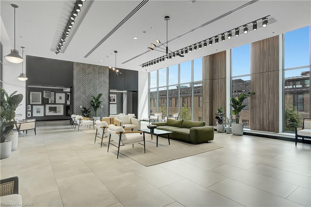 Residents of the Gaslight District enjoy exceptional amenities, including a welcoming lobby with seating, secure video-monitored entry, a fully equipped fitness centre with yoga and Pilates studios, and a games room with billiards, ping-pong, and a large-screen TV. Additional spaces include a catering kitchen, private dining room, reading lounge with library, and an expansive outdoor terrace featuring seating areas, pergolas, fire pits, and barbecue stations.
