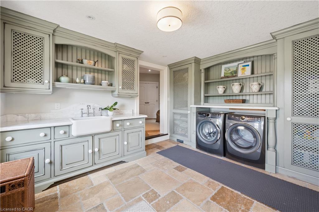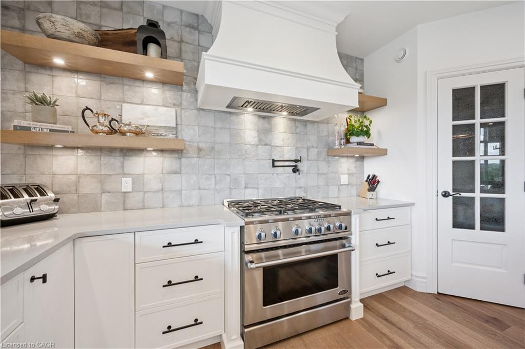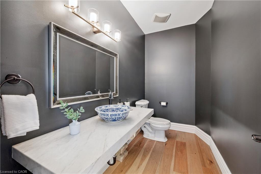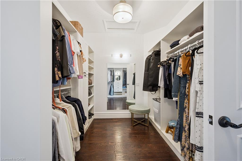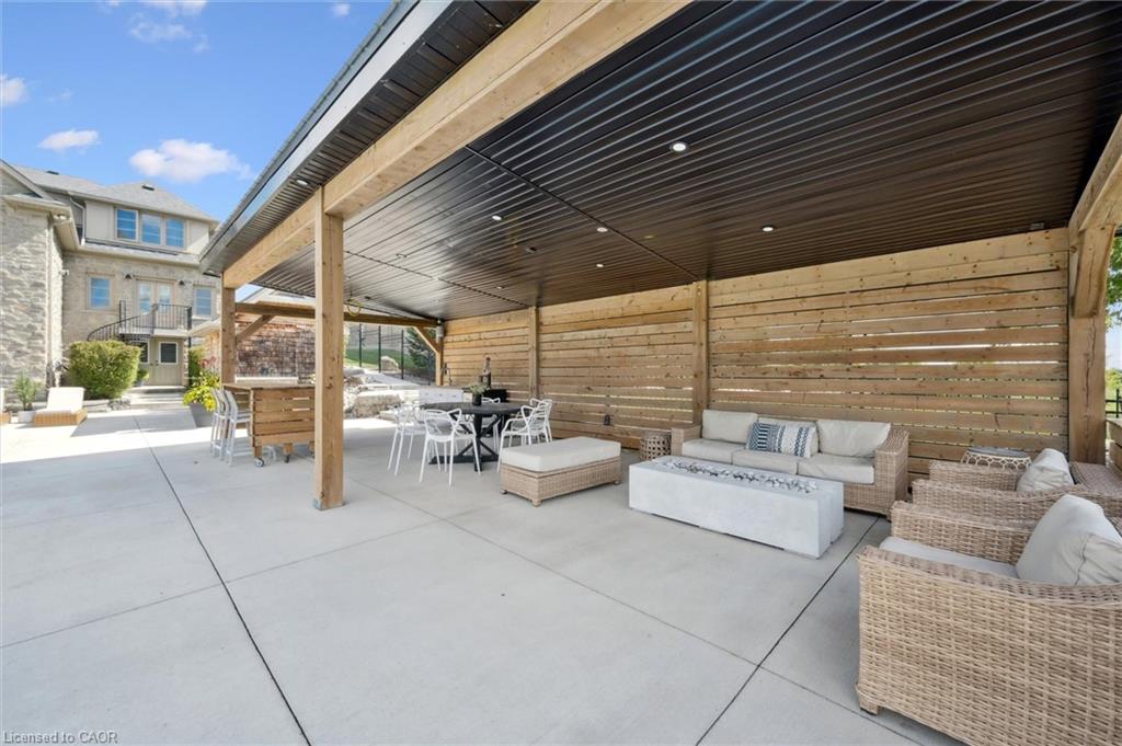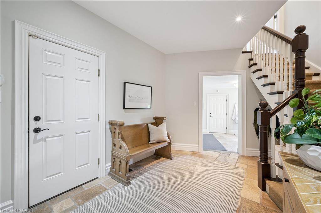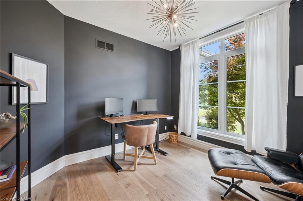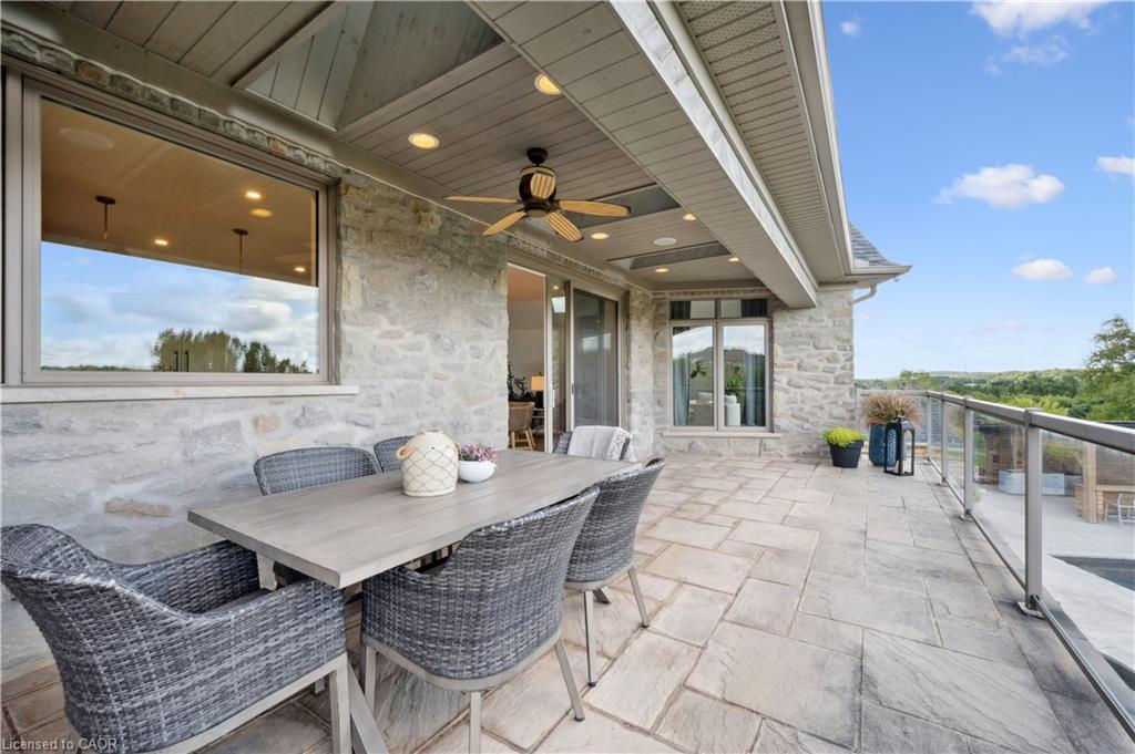 904 River Birch Court offers one of the most premier residential views in the City of Kitchener. This estate sits atop the Grand River Valley, providing views of the river floor, protected forests, and even a quaint local pond. The custom home spans its 90-foot frontage and is surrounded by perennial gardens leading up to a grand front entrance. Inside, a gracious foyer is accented by hardwood herringbone floors, impressive millwork and designer lighting. Families will likely spend most of their time in the large, eat-in chef’s kitchen with floor-to-ceiling views of the river valley and resort-like backyard; or walk out to the covered porch to take the views directly. Off the kitchen is a rustic family room with a Muskoka stone fireplace and vaulted ceilings. Further features on the main floor are a convenient front office, a gorgeous dining room with trayed ceilings and a chandelier, and a sage green Parisienne laundry room that has its own wrought iron spiral staircase leading down to the backyard amenities. The primary wing includes a vast walk-in closet and a luxurious 5-piece ensuite with a standalone soaker tub. A second bedroom on the main floor also includes a 3-piece en-suite and a walk-in closet. The third bedroom is located on the second floor’s bunga-loft, a self-contained floor with a bedroom, 3-piece bathroom, and walk-in closet. The walk-out lower level complements this luxury residence with a vast recreational space, highlighted by another feature stone fireplace, a home gym, two additional bedrooms (for a total of 5), a family room or second office with its own gas fireplace, and two more bathrooms (for a total of 6). But wait, there’s more! The backyard of this home has been transformed into a resort-like setting, featuring an infinity pool that cascades down towards the valley, a poolside cabana, and a stone-clad hot tub. This property offers up an exceptional opportunity to live in one of Kitchener’s most sought after and exclusive locations.