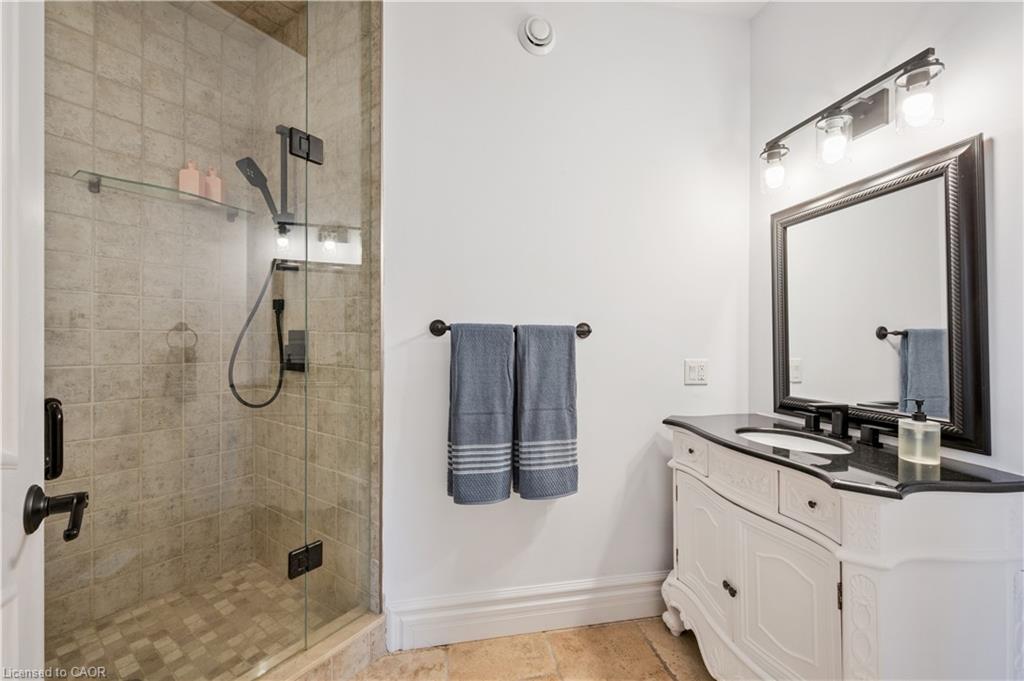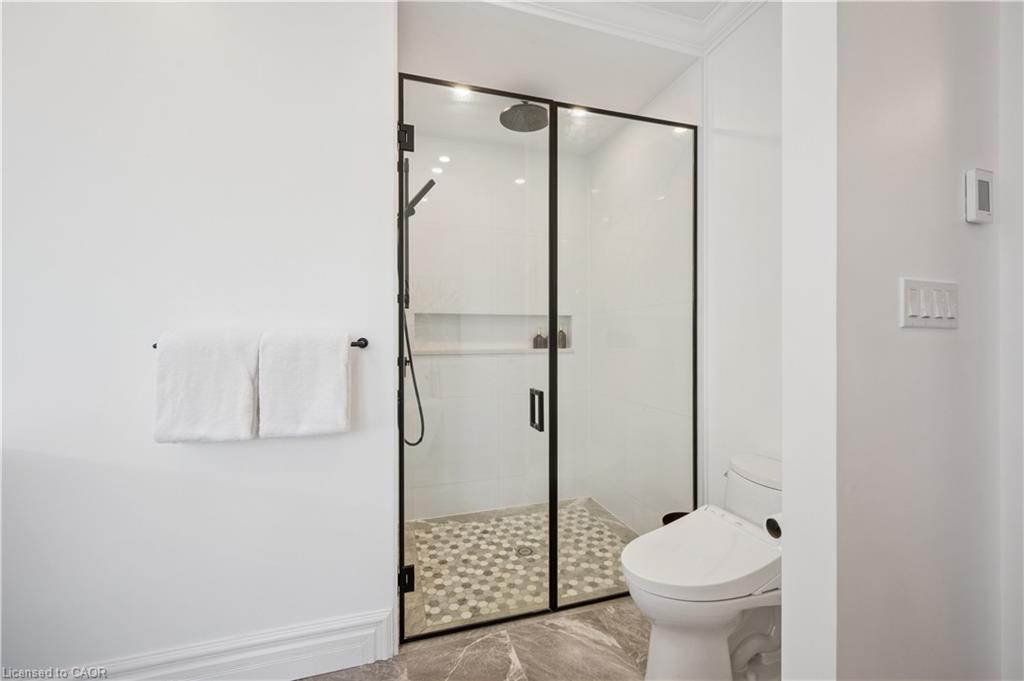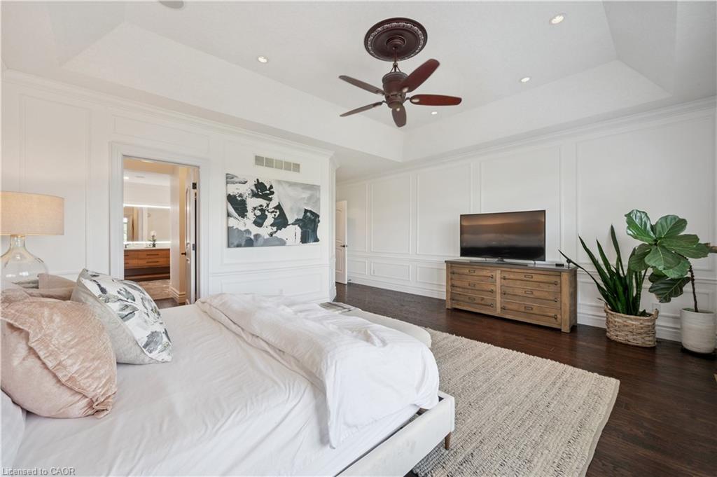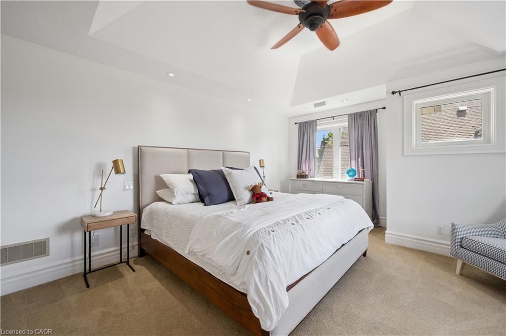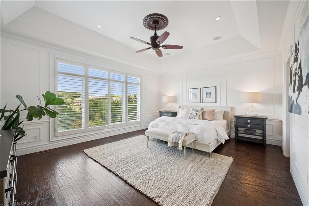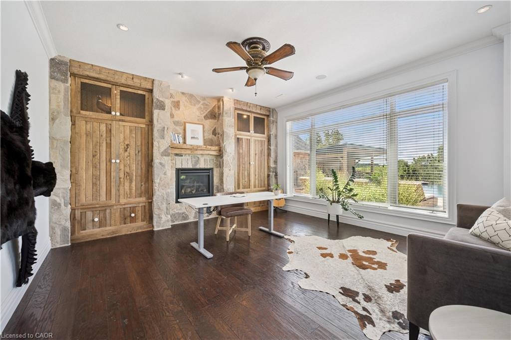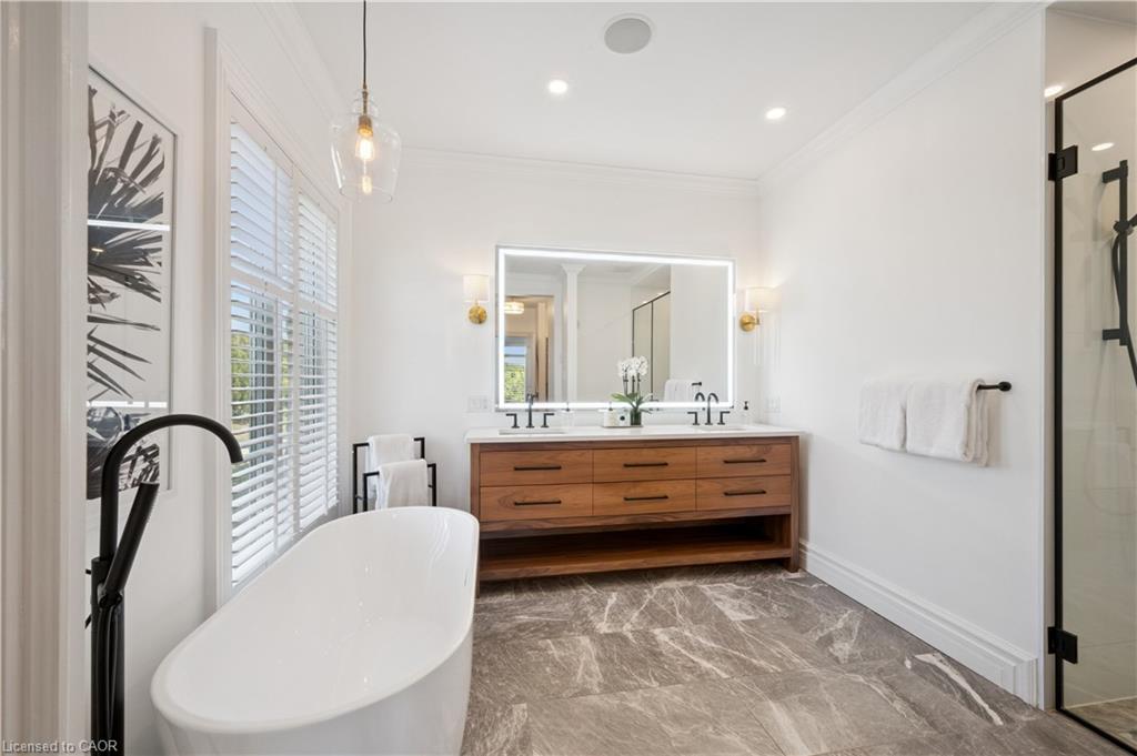 904 River Birch Court offers one of the most premier residential views in the City of Kitchener. This estate sits atop the Grand River Valley, providing views of the river floor, protected forests, and even a quaint local pond. The custom home spans its 90-foot frontage and is surrounded by perennial gardens leading up to a grand front entrance. Inside, a gracious foyer is accented by hardwood herringbone floors, impressive millwork and designer lighting. Families will likely spend most of their time in the large, eat-in chef’s kitchen with floor-to-ceiling views of the river valley and resort-like backyard; or walk out to the covered porch to take the views directly. Off the kitchen is a rustic family room with a Muskoka stone fireplace and vaulted ceilings. Further features on the main floor are a convenient front office, a gorgeous dining room with trayed ceilings and a chandelier, and a sage green Parisienne laundry room that has its own wrought iron spiral staircase leading down to the backyard amenities. The primary wing includes a vast walk-in closet and a luxurious 5-piece ensuite with a standalone soaker tub. A second bedroom on the main floor also includes a 3-piece en-suite and a walk-in closet. The third bedroom is located on the second floor’s bunga-loft, a self-contained floor with a bedroom, 3-piece bathroom, and walk-in closet. The walk-out lower level complements this luxury residence with a vast recreational space, highlighted by another feature stone fireplace, a home gym, two additional bedrooms (for a total of 5), a family room or second office with its own gas fireplace, and two more bathrooms (for a total of 6). But wait, there’s more! The backyard of this home has been transformed into a resort-like setting, featuring an infinity pool that cascades down towards the valley, a poolside cabana, and a stone-clad hot tub. This property offers up an exceptional opportunity to live in one of Kitchener’s most sought after and exclusive locations.