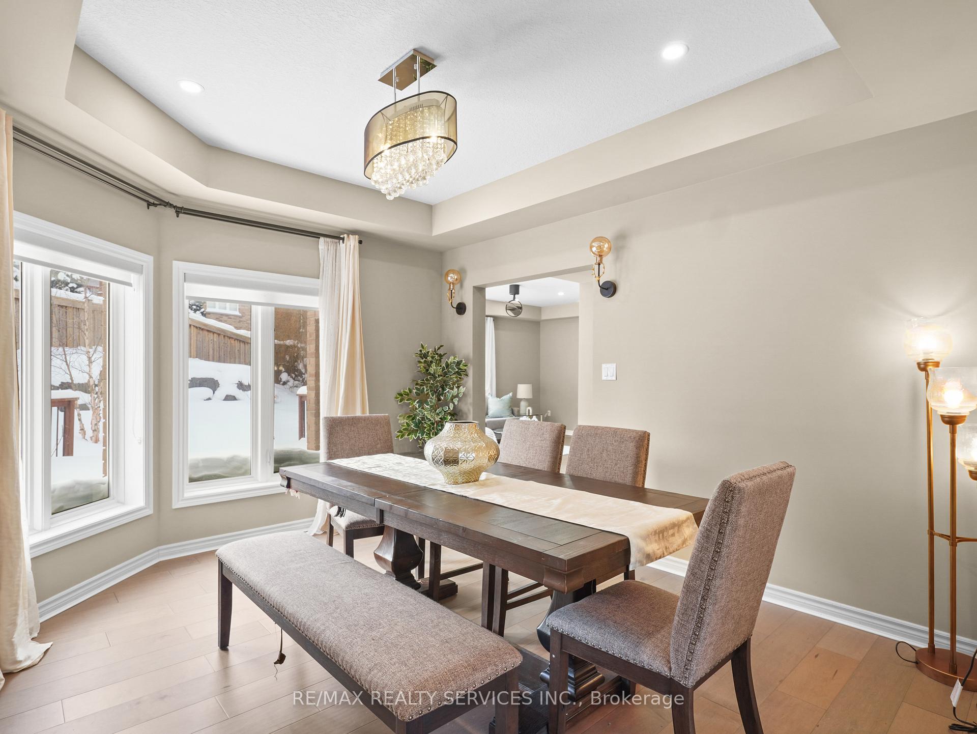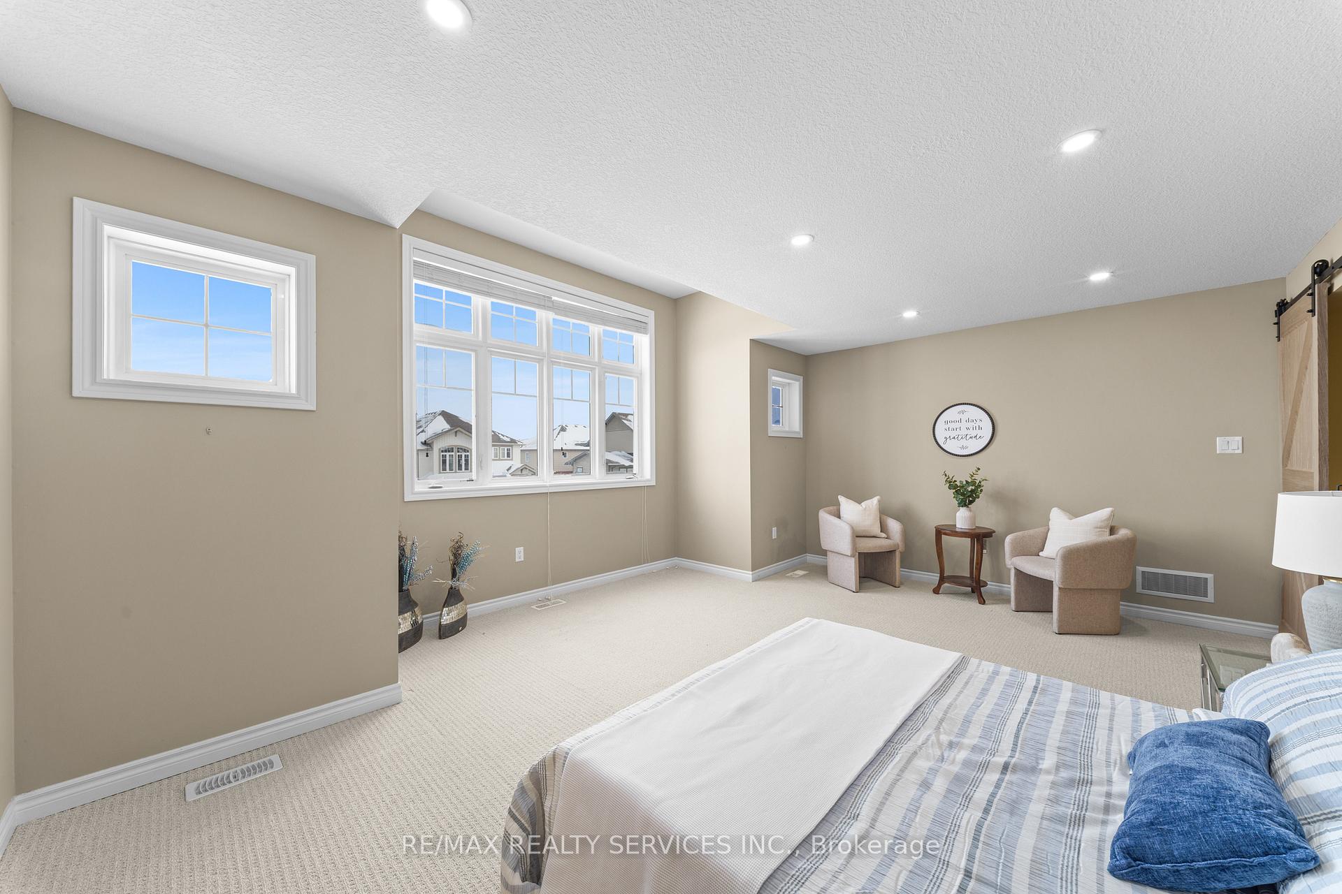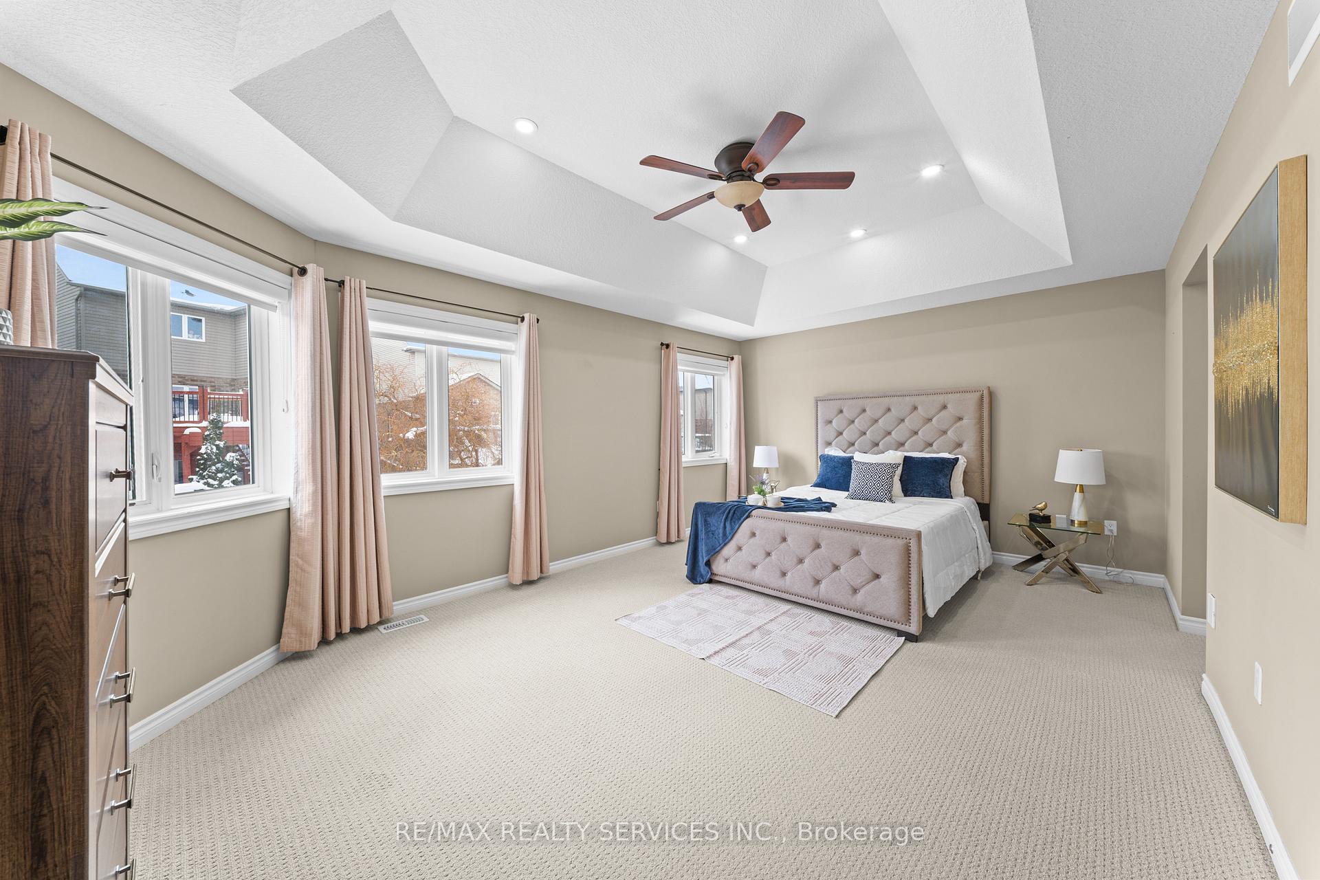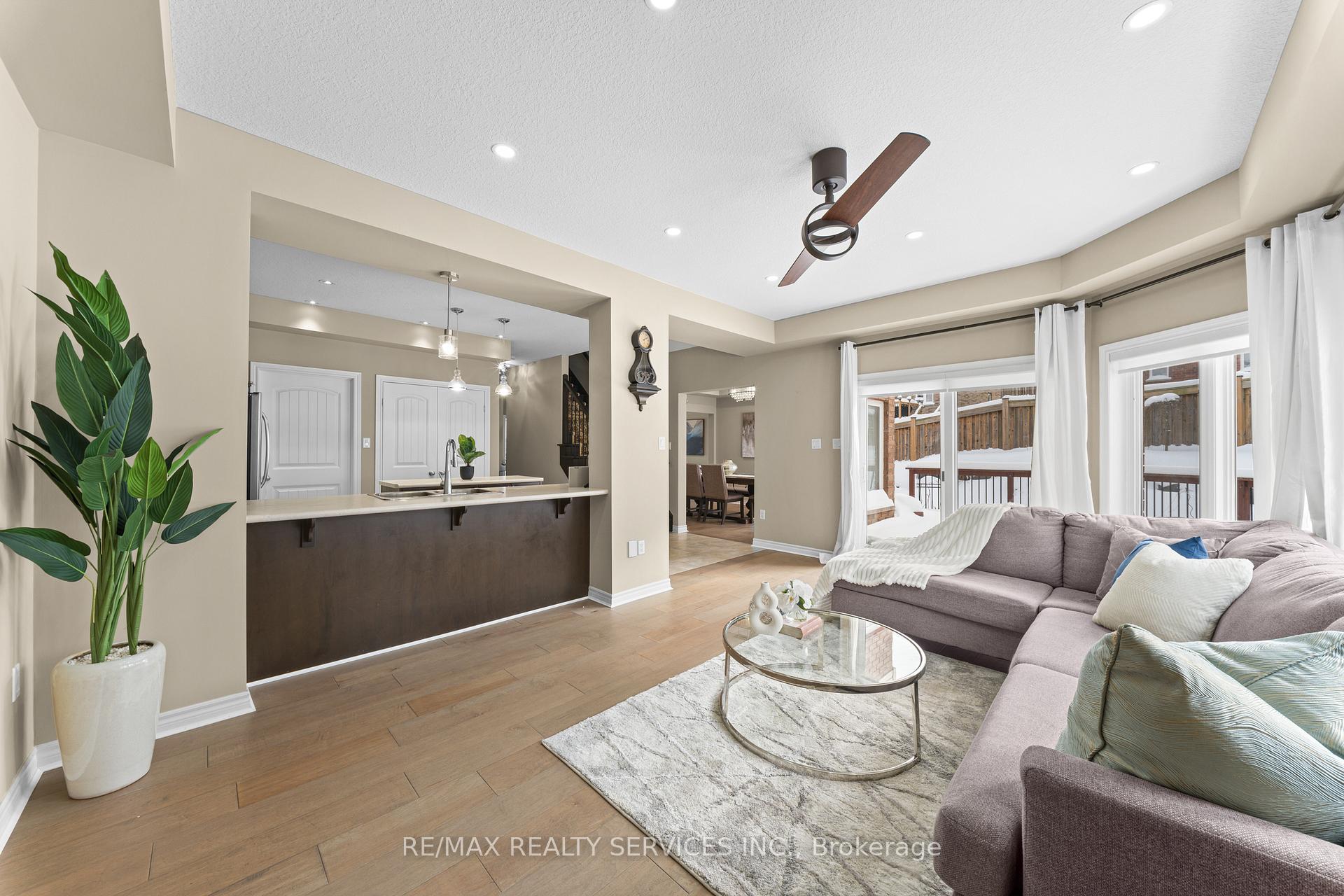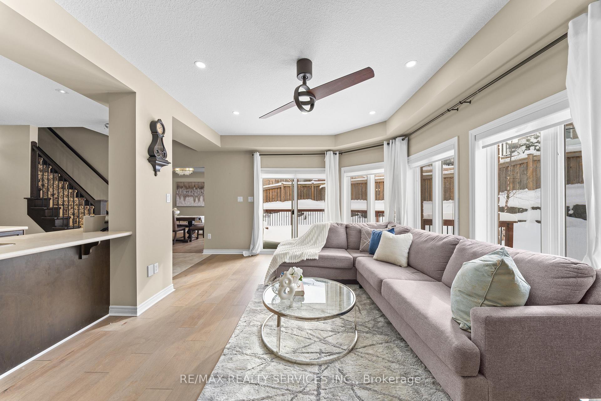 Welcome to this beautifully maintained east-facing home at 906 Audrey Place, Kitchener, offering over 2700 sq. ft. ( as per Floor Plans) of thoughtfully designed living space in a family-friendly neighbourhood. The main floor features 9-ft ceilings and hardwood flooring throughout, with a bright, open layout including a living room, dining room, and family room, complemented by a modern kitchen with breakfast bar, large island and pantry overlooking the family area – perfect for entertaining and daily family life. The main level also includes a convenient laundry area and 2-piece powder room. Upstairs, the home offers four generously sized bedrooms, including a luxurious primary bedroom with 5-piece ensuite and his-and-her closets, while the remaining bedrooms are filled with sunlight and offer soothing views. The unfinished basement with a 3-piece rough-in provides potential for additional living space, a recreation area, or home office. Step outside to enjoy a deck and fully landscaped, low-maintenance backyard with a serene pond and fire pit area, ideal for relaxing or entertaining. Additional highlights include a beautifully maintained front yard with premium flowers and shrubs and a covered front porch with stamped concrete steps. Conveniently located near highly rated schools, shopping plazas, grocery stores, and restaurants, this home seamlessly combines comfort, style, energy efficiency, and functionality, making it an ideal choice for families seeking a move-in-ready property in a desirable Kitchener community.
