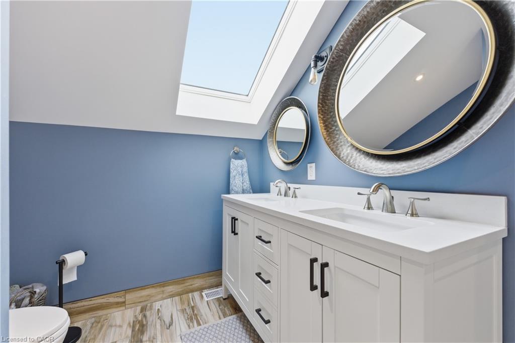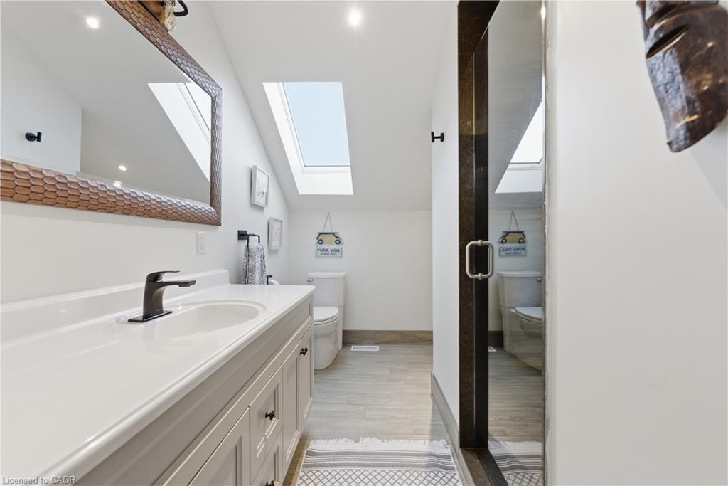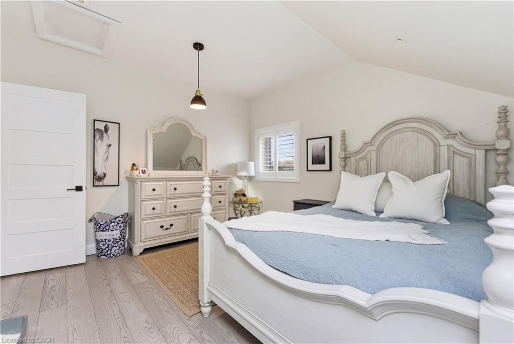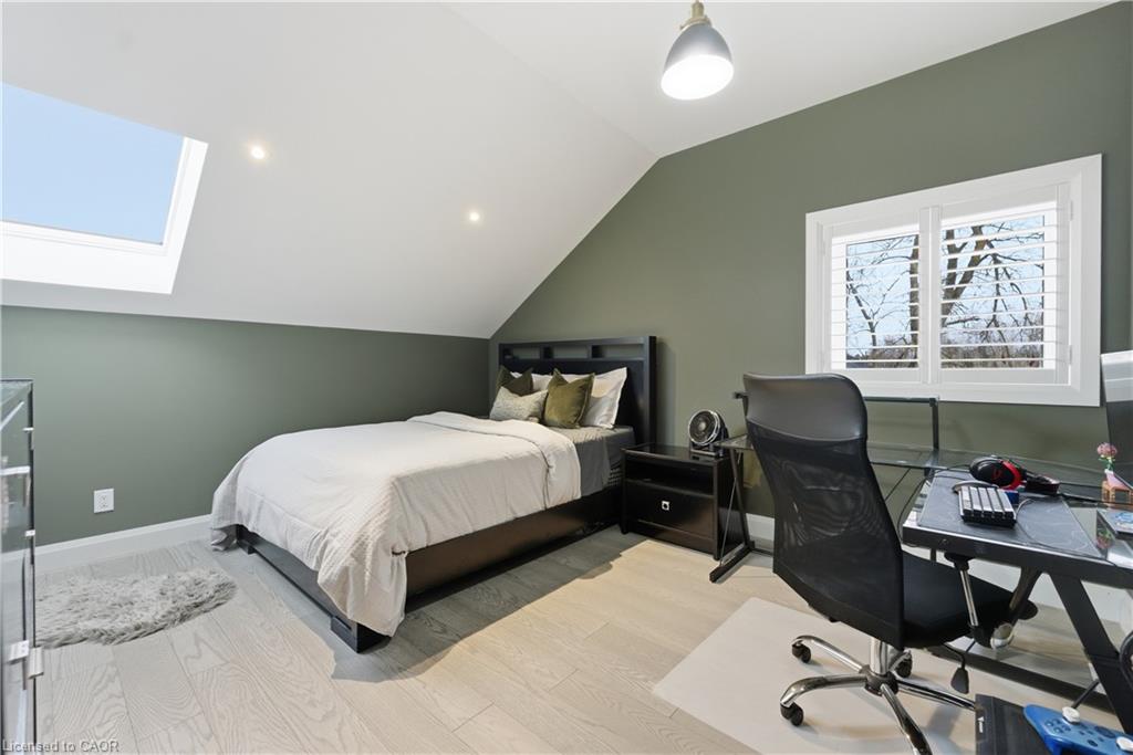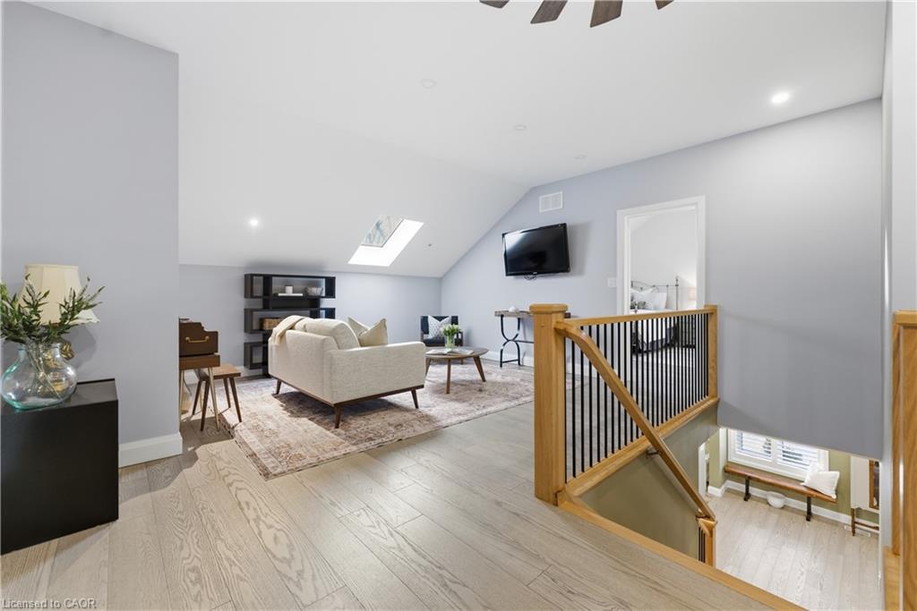 This 1891 schoolhouse in Erin is a rare offering, blending over 130 years of history with a full-scale restoration completed in 2020. Originally a one-room school for grades 1–8, the home has been fully gutted and rebuilt, preserving its historic charm while delivering modern comfort and structural integrity. The exterior showcases restored red brick, a functional rooftop school bell, and three stone patios at the front, side, and rear—ideal for outdoor dining, entertaining, or quiet mornings. Original “Boys” and “Girls” entrances remain as a nod to the home’s past. Inside, the open-concept main floor features 9-ft ceilings, exposed wood beams, and a striking stone propane fireplace that anchors the space. The kitchen is designed for entertaining with white cabinetry, quartz counters, a large grey quartz island with seating for four, stainless steel appliances including a propane stove, and double wall ovens. A mudroom with wrought iron gate provides practical access to the backyard. Upstairs, six skylights flood the space with natural light, highlighting a versatile loft. The primary suite offers a remote-controlled skylight, walk-in closet, and private ensuite. All bathrooms feature heated floors, custom tile, and individual touch-control HVAC systems. Major upgrades include an owned tankless water heater, UV filtration system, new foundation and structural supports, energy-efficient windows, and a full-home Generac generator ($20,000 value), offering peace of mind year-round. Located in a close-knit community known for its skating rink, line dancing, Halloween events. Just 10 mins to Hillsburgh, 20 mins to Orangeville, Fergus, Acton & Rockwood, 30 mins to Elora & Guelph, and 1 hour to Oakville. A truly unique blend of history and modern living.