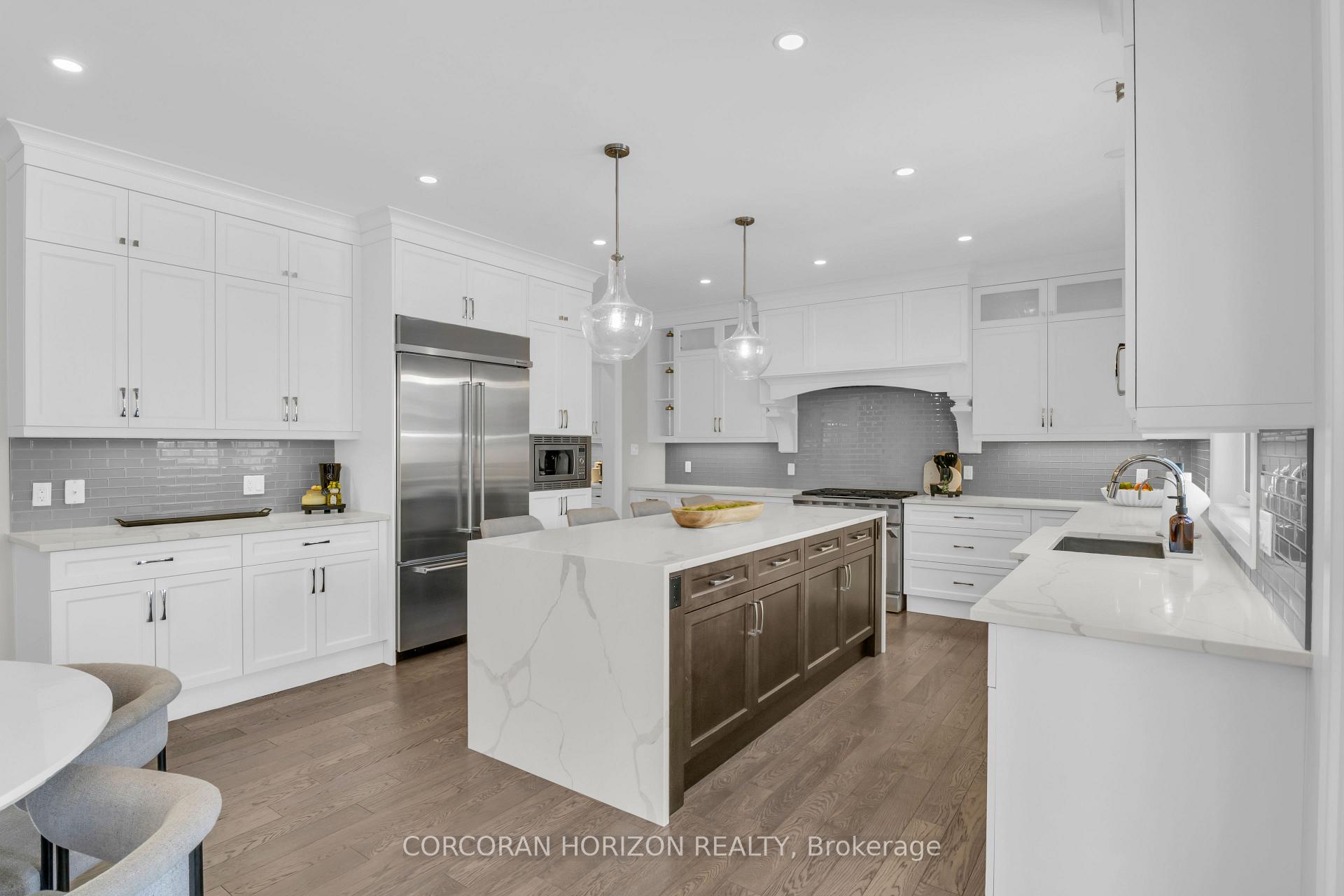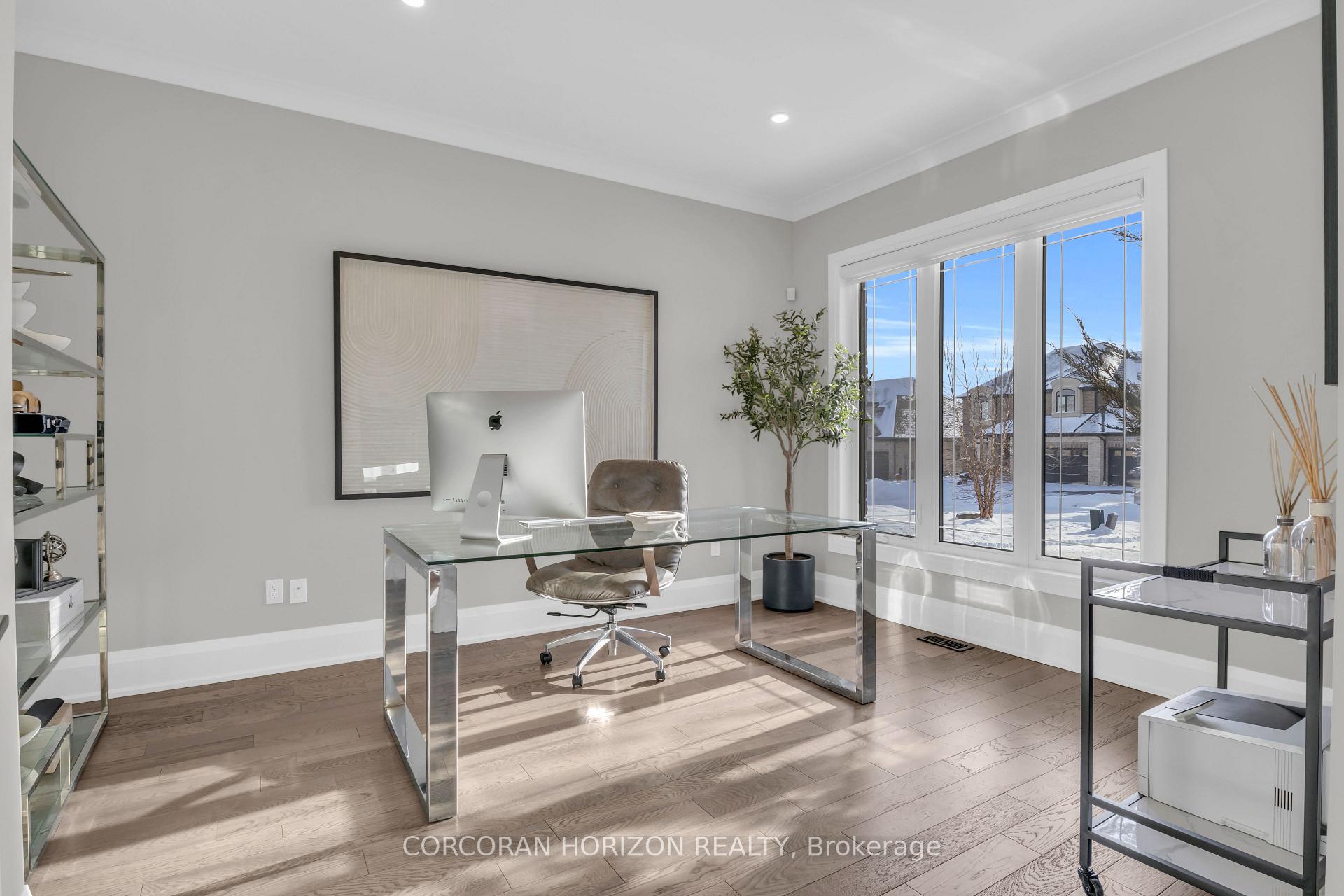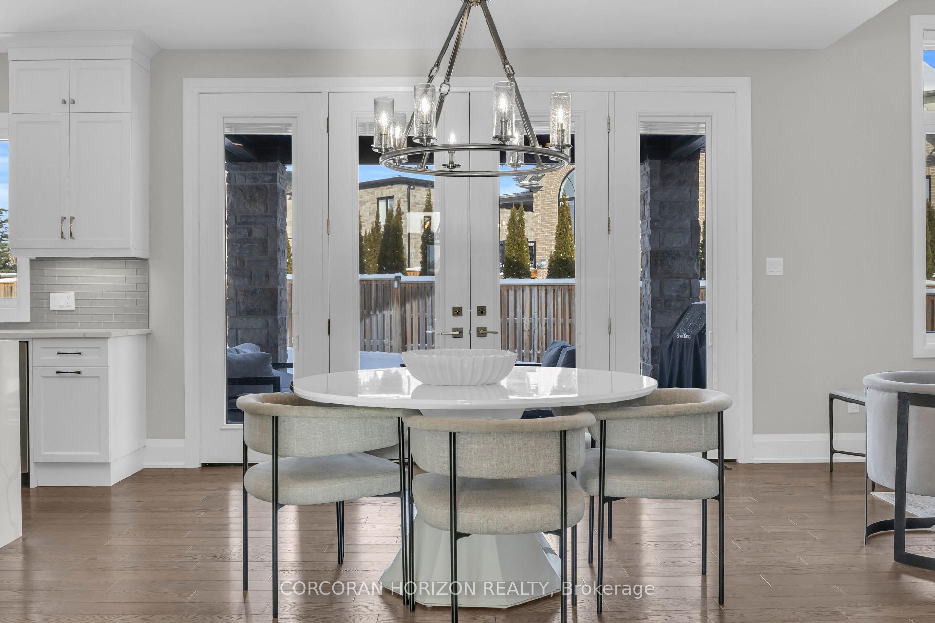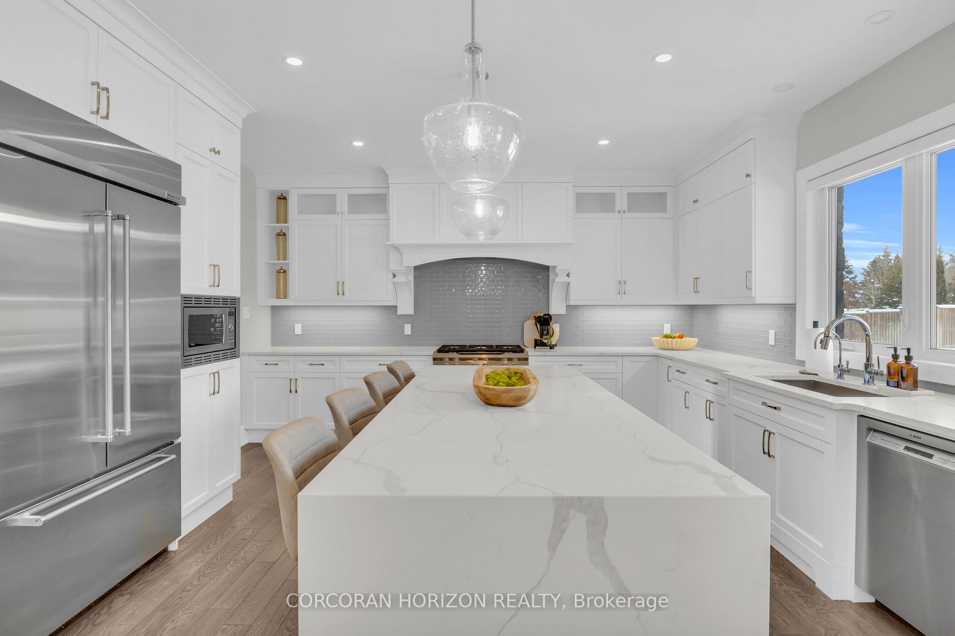 Over 5,700 sq ft of finished living space and located on a large 0.25-acre lot in the sought-after Deer Ridge neighbourhood. Tucked away on a quiet court, this custom-built home offers a comfortable layout with carefully selected finishes throughout. The main entry opens into a bright two-storey foyer, with a formal dining room nearby that connects to the kitchen through a practical servery and pantry. The kitchen features white cabinetry, quartz countertops, a waterfall island, tiled backsplash, a built-in refrigerator, and a dual-fuel range with an oversized hood. The breakfast area includes French doors that open to a covered back porch, making it easy to enjoy the large outdoor space. The family room sits just off the kitchen and includes high coffered ceilings, a large picture window, and a gas fireplace with a floor-to-ceiling mantel. A powder room, mudroom with access to the triple car garage, and a spacious home office complete the main level. The upper floor offers four generously sized bedrooms. Two share a five-piece Jack and Jill bathroom, one includes its own ensuite and walk-in closet, and the primary bedroom features a large walk-in closet and an ensuite with a soaker tub and walk-in shower with rain head. Laundry is also conveniently located on the upper level, and all bathrooms are equipped with heated floors for added comfort. The basement benefits from very high ceilings and large above-grade windows filling the space with natural light. It is currently used as a recreation room, an additional bedroom, and a three-piece bathroom. Additional highlights include smart lighting throughout the home and automatic window coverings, offering added convenience and efficiency. Outside, the home is finished with a stone façade and includes an exterior air and weather barrier system, in-ground irrigation, a security system, and a water conditioning system. This is a great opportunity to settle into one of the most sought-after areas in Kitchener.