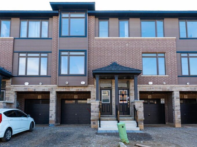 Welcome to Unit 91-25 Isherwood Ave, Cambridge! This stunning, newly built 2-bedroom, 3-bathroom stacked townhouse offers a stylish and spacious layout with premium finishes throughout. Spread across two storeys, the home features an open-concept living space that flows seamlessly into a modern kitchen with stainless appliances and high-end finishes. Upstairs, you’ll find two generous bedrooms, each with 10 foot ceilings, great closet space and natural light. Enjoy the convenience of three bathrooms, ideal for busy households. A private balcony provides the perfect spot for outdoor relaxation, while parking adds to the convenience. With low condo fees, this home offers affordable living without compromising on luxury. Situated in a highly desirable area, just minutes from shopping, schools, and the 401, this townhouse is an ideal choice for first-time homebuyers seeking both luxury and accessibility. With its contemporary design and excellent location, this townhouse is a must-see!