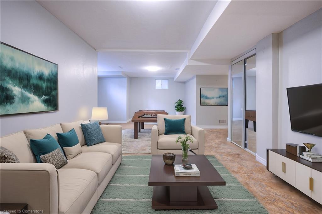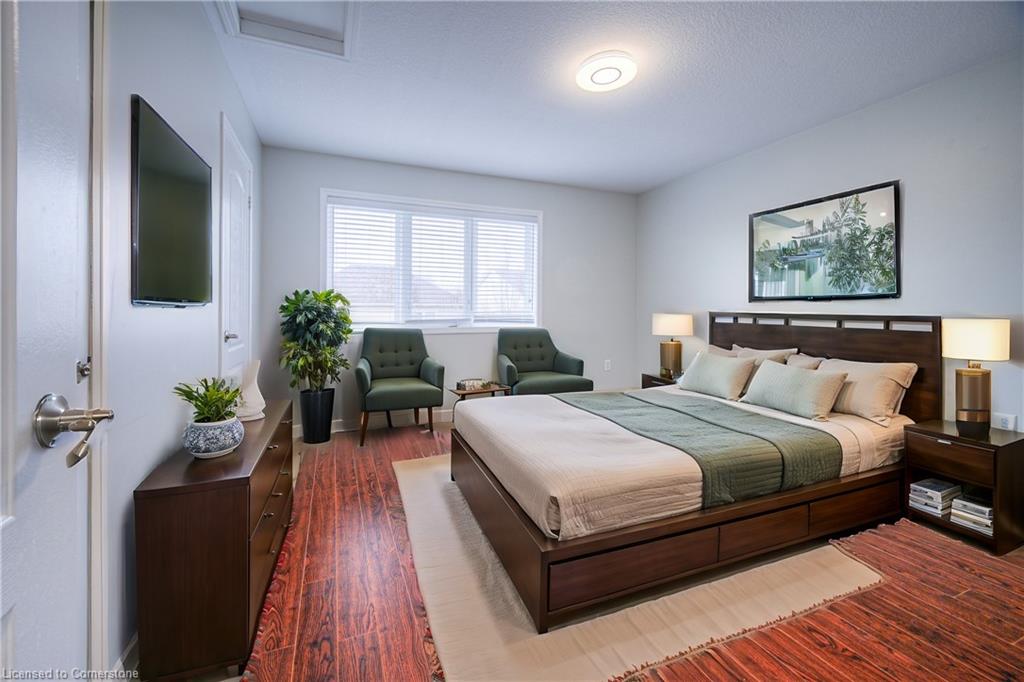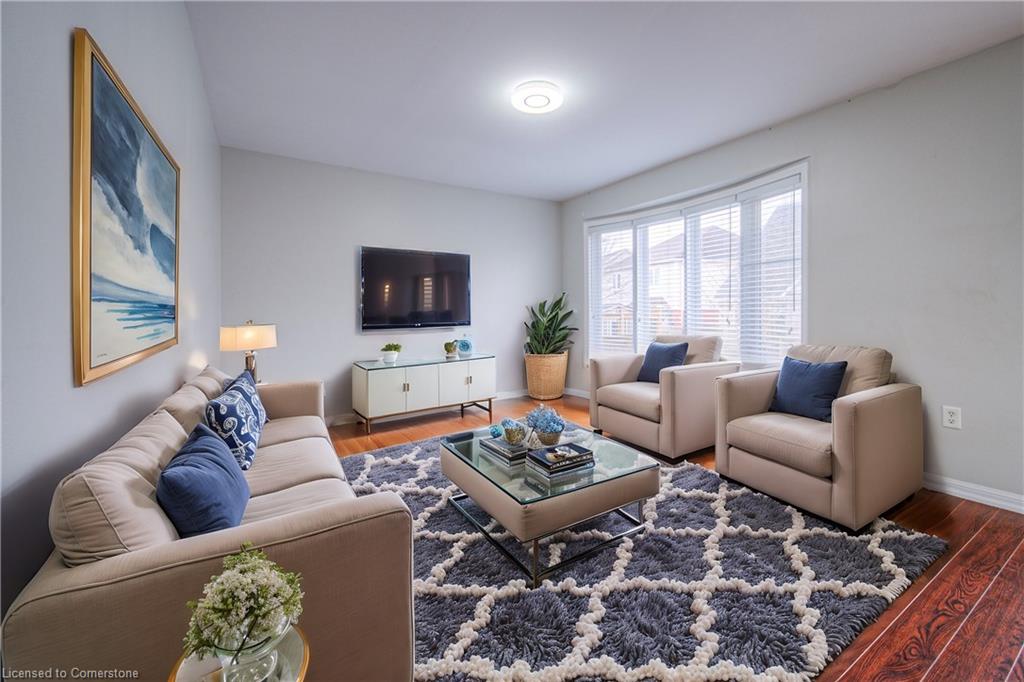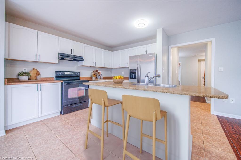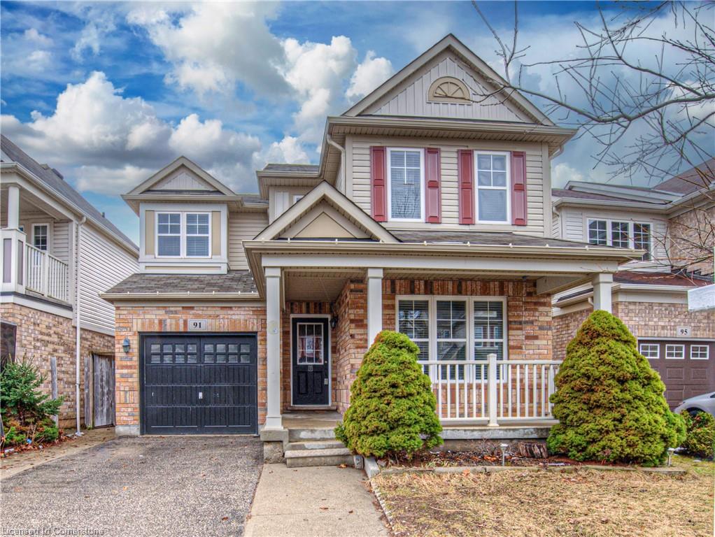 NESTLED IN AN EXCLUSIVE ENCLAVE OF HESPELER, 91 Callaway Drive is located in the highly sought-after Millpond Community. This charming 3-bedroom home offers over 2,300 sq. ft. of bright and spacious living space. You are welcomed by a large, inviting front porch overlooking a landscaped garden. Inside, the thoughtful layout includes a formal living/dining room—ideal for a main-floor office—along with an open-concept family room and kitchen featuring an island with seating and a garden door leading to the fully fenced yard with a patio. With 3.5 bathrooms, including a 4pc ensuite, and a large finished lower level, this home offers ample space for your growing family. Notable features and upgrades include an owned water softener and hot water heater, AC (2020), a rough-in for a gas stove in the kitchen, parking for up to 4 cars, and an abundance of windows. The home is carpet-free, except for the stairs. Conveniently located just minutes from the 401, schools, shopping, places of worship, and scenic river walk trails leading to Hespeler Village, this home offers both comfort in a prime location.