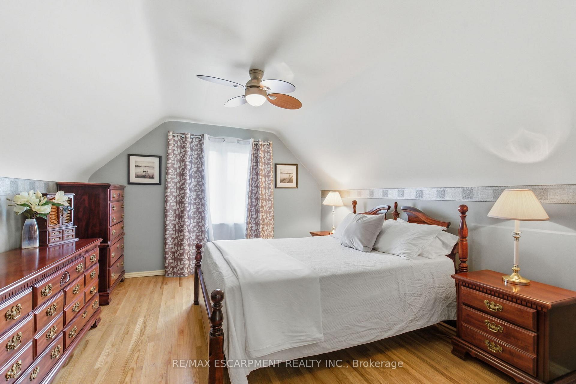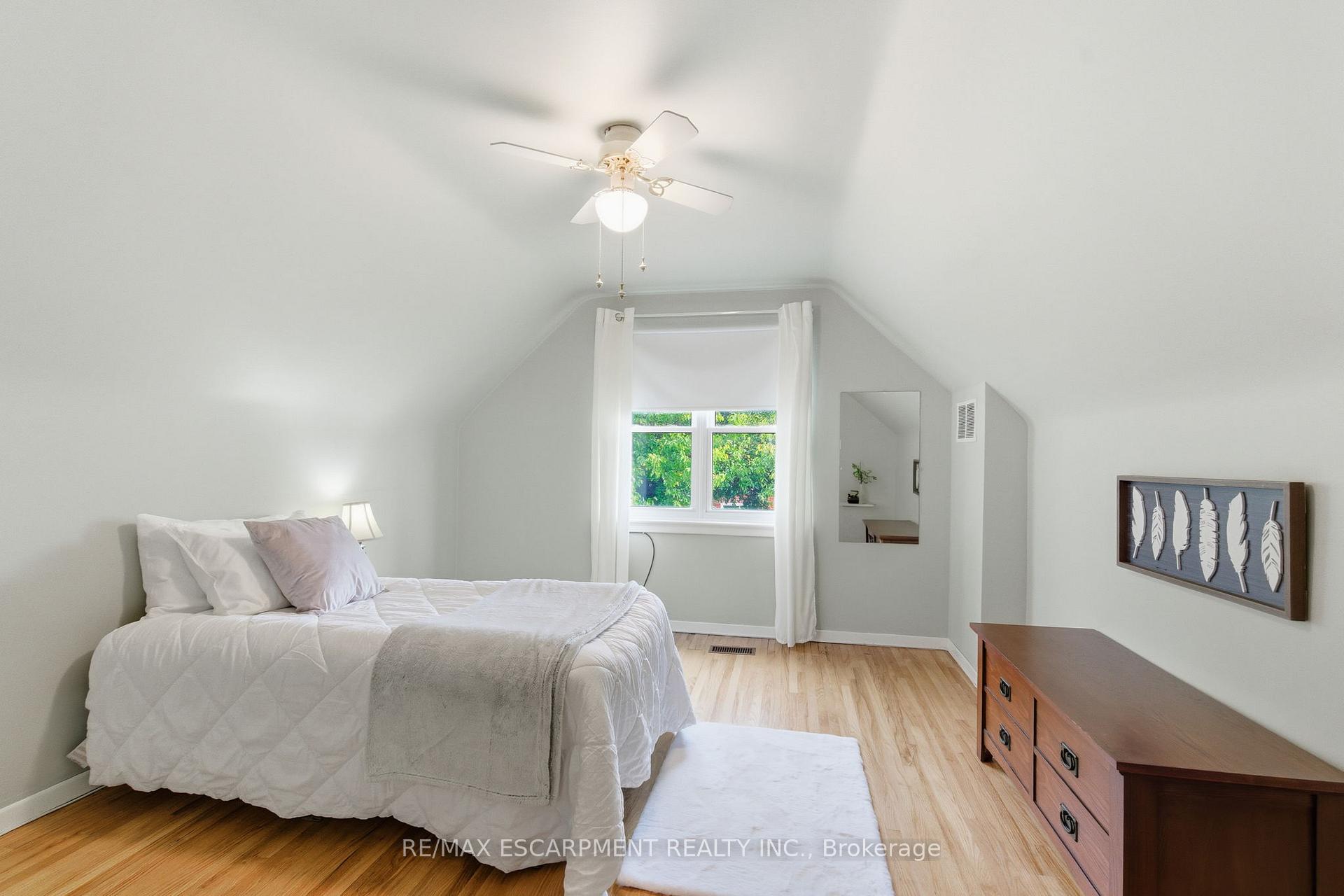 91 East 42nd is a 1.5-storey, all-brick detached home on a spacious lot in Sunninghill, one of the East Mountain’s most desirable neighbourhoods. Featuring easy-care landscaping, character, and modern updates throughout. The main floor includes a bright living area, open-concept dining space, a stylish 4-piece bathroom, and a versatile bedroom ideal for guests or a home office. The kitchen features a gas stove and walkout to a fully fenced backyard with a gazebo-great for outdoor enjoyment. Upstairs offers two generous bedrooms with ample closet space. The fully finished basement includes a 3-piece bathroom, laundry room, gas fireplace, and separate side entrance, providing “in-law suite” potential. A private driveway accommodates up to four vehicles, with additional street parking available. Conveniently located near Mohawk Sports Park, Mountain Brow trails, shopping centres, grocery stores, and Juravinski Hospital, this home blends outdoor activity, urban convenience, and community living.