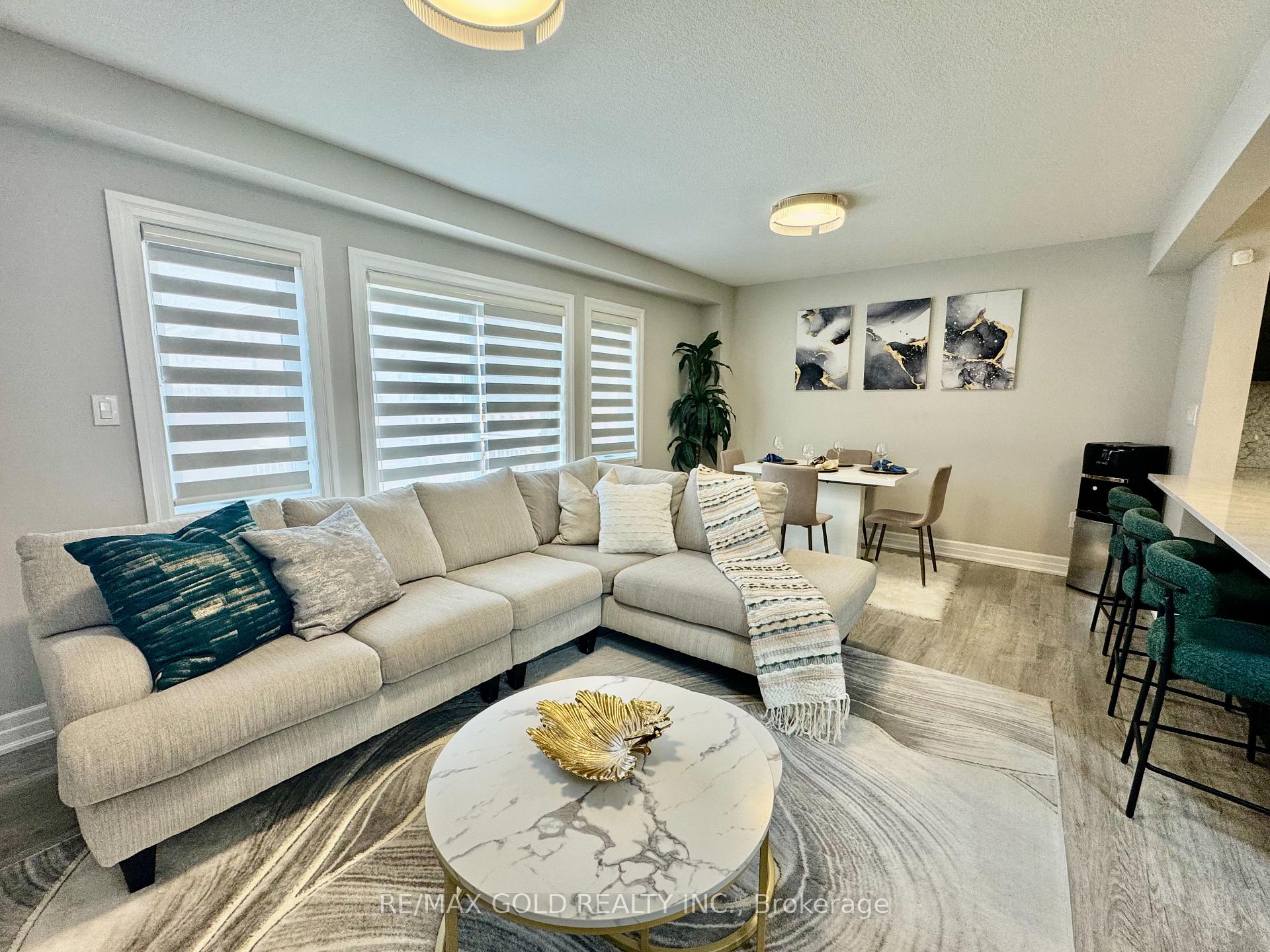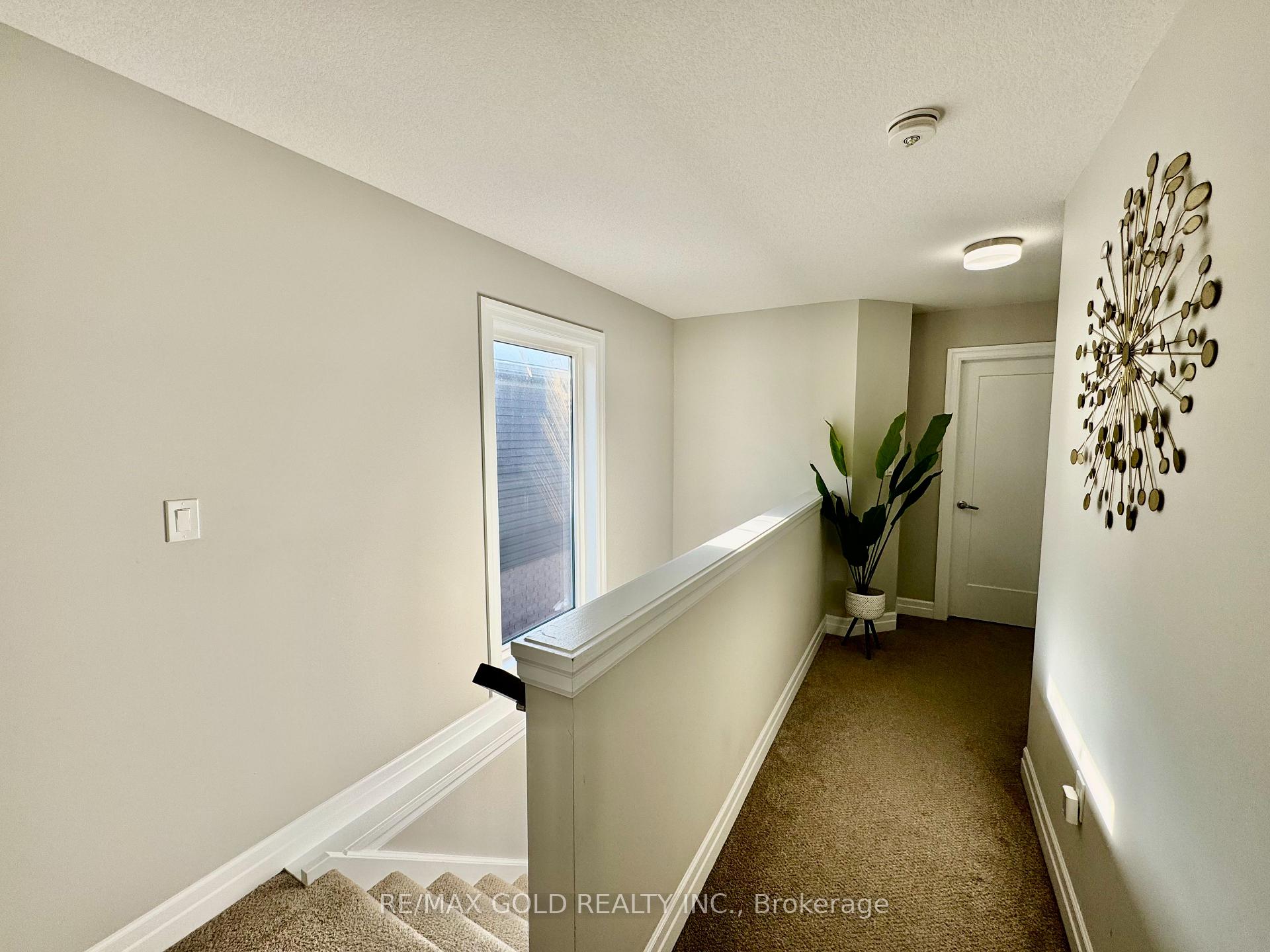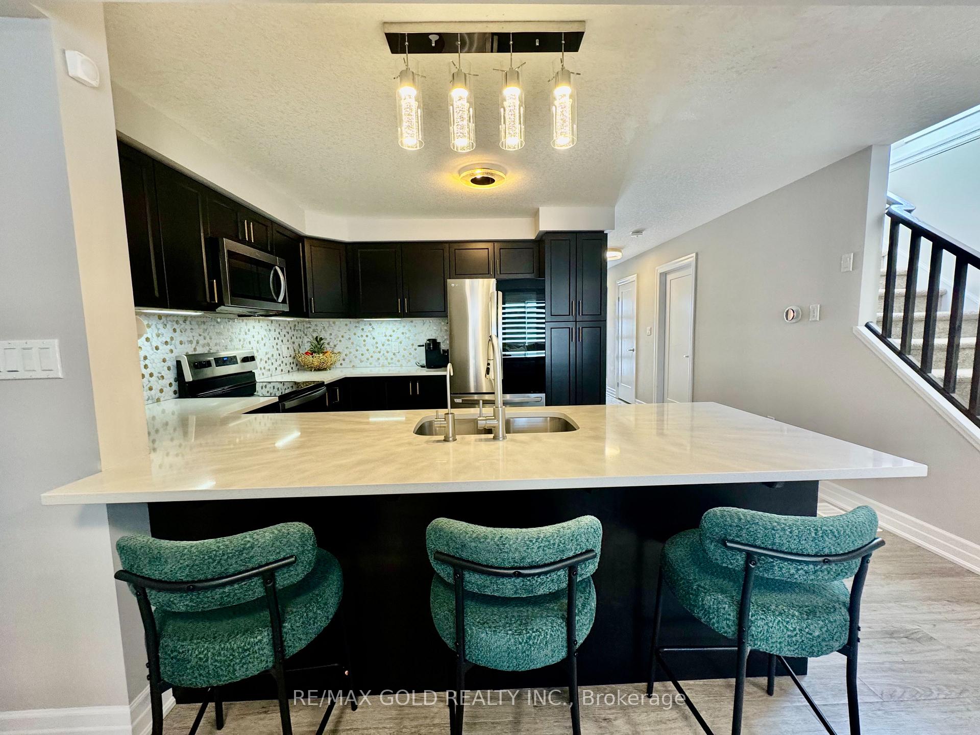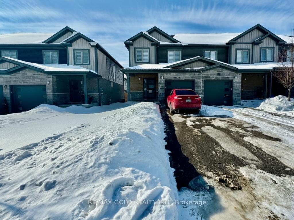 End-unit contemporary freehold two-storey townhome located in a desirable, family-friendly neighbourhood. This carpet-free main floor home offers excellent curb appeal with a stone, brick and vinyl exterior, single-car garage, and covered porch. The bright main floor features an open-concept living and dining area with sliding patio doors leading to a private backyard, along with an upgraded kitchen complete with stainless steel appliances, RO system, granite countertops, modern cabinetry, and ample counter space, plus a convenient powder room and inside entry from the garage. The second level includes three spacious bedrooms and two full bathrooms, highlighted by a large primary suite with a walk-in closet and private ensuite, second-floor laundry, and an additional walk-in closet in one of the secondary bedrooms. The unspoiled basement offers a large window and rough-in for a 3-piece bathroom, providing endless potential for future finishing. Ideally located close to schools, parks, shopping, transit, future LRT routes, and just minutes from Highway 401 for easy commuting.