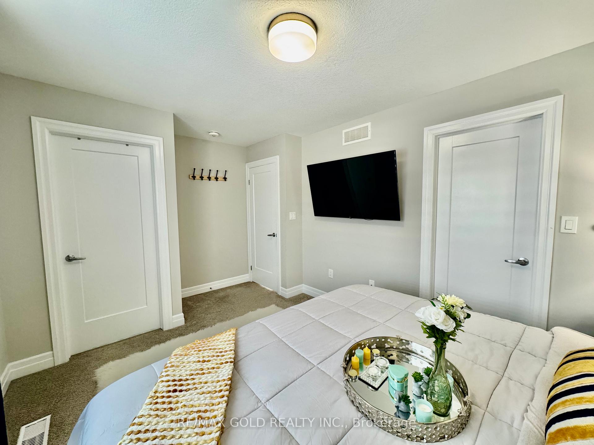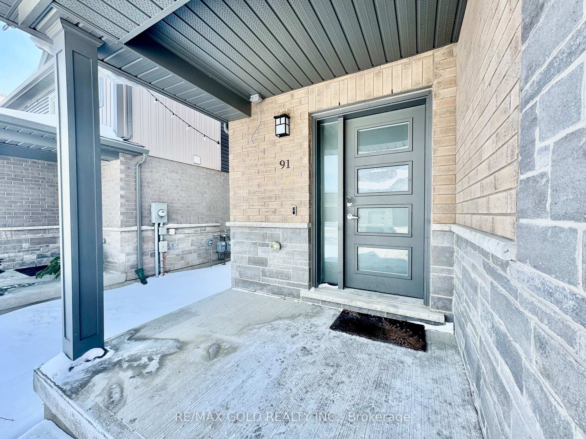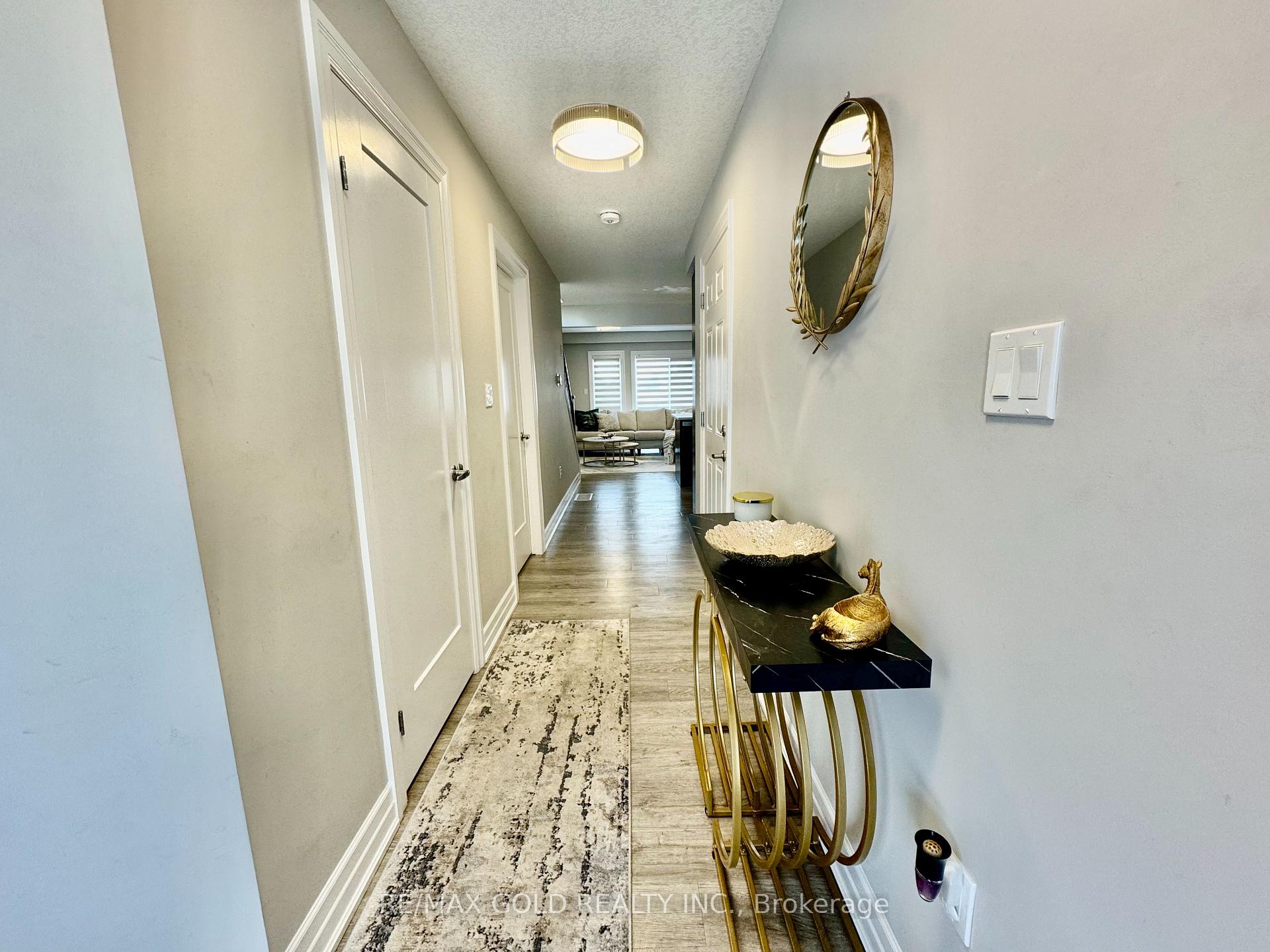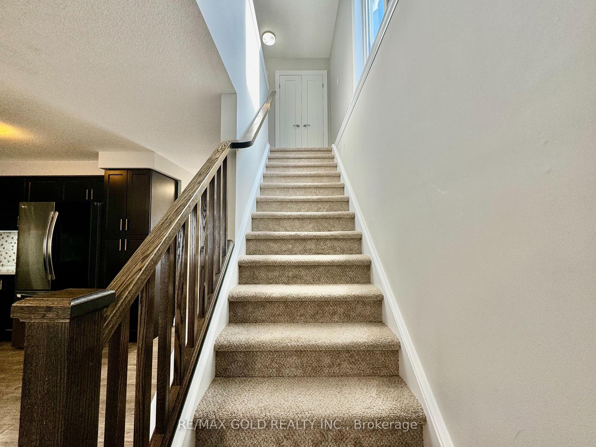 End-unit contemporary freehold two-storey townhome located in a desirable, family-friendly neighbourhood. This carpet-free main floor home offers excellent curb appeal with a stone, brick and vinyl exterior, single-car garage, and covered porch. The bright main floor features an open-concept living and dining area with sliding patio doors leading to a private backyard, along with an upgraded kitchen complete with stainless steel appliances, RO system, granite countertops, modern cabinetry, and ample counter space, plus a convenient powder room and inside entry from the garage. The second level includes three spacious bedrooms and two full bathrooms, highlighted by a large primary suite with a walk-in closet and private ensuite, second-floor laundry, and an additional walk-in closet in one of the secondary bedrooms. The unspoiled basement offers a large window and rough-in for a 3-piece bathroom, providing endless potential for future finishing. Ideally located close to schools, parks, shopping, transit, future LRT routes, and just minutes from Highway 401 for easy commuting.