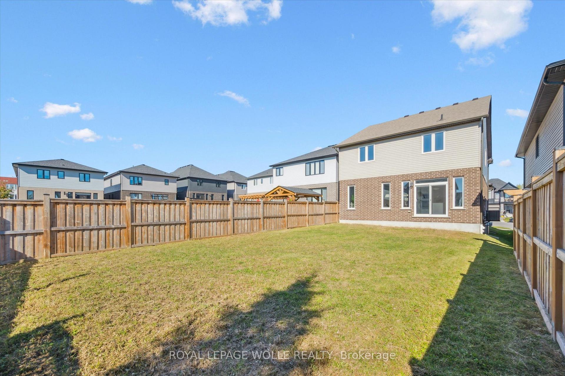 This modern 3-year-new single detached home sits on an oversized lot in a quiet, family-friendly cul-de-sac in a sought-after neighbourhood. The move-in-ready home features a carpet-free, open-concept main floor with 9′ ceilings, abundant natural light, and a stylish kitchen with a large quartz island. Upstairs offers four spacious bedrooms and two full bathrooms, including a primary suite with a luxurious 5-piece ensuite, glass shower, and soaker tub. The basement provides great potential for a large rec room, legal 5th bedroom, or office, with rough-in for an additional bathroom. Further highlights include energy-efficient HRV ventilation system, EV charger rough-in, double garage for 2 cars plus driveway parking for an additional 5+ cars or RV/boat, an extra-long front yard that can be converted to additional driveway, a premium lot purchased at developer’s upgrade with a backyard that can easily accommodate a pool and large deck, and new appliances. Conveniently located just minutes from Huron Natural Area, top schools, parks, shopping, library, Huron Community Centre, and Hwy 401, this 2022-built home perfectly blends modern comfort and convenience.