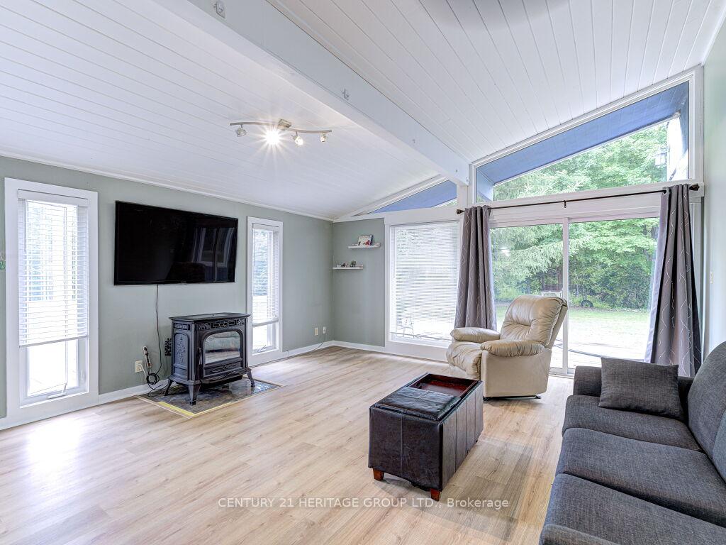 This country property offers a simple and relaxing lifestyle. House was recently repainted and refreshed .Large windows allow natural light to flow and to enjoy a long country views. New floors were recently installed in living/ground room and kitchen. You will enjoy a wood burn pellet stove on chilly night. Bright and spacious kitchen combined with dining area creates a great family meet place. Primary bedroom backing onto farmland/green space offers a walk out to newly redone deck. The house offers vaulted ceilings throughout. A large 30FT X 34FT detached garage is a great feature of this property and fully prepared for automotive funs to proceed with their hobby. The feature of the garage is a built-in hoist. This spacious and cozy property will satisfy any nature lovers and is awaiting a new family to start their journey. Motivated Seller!