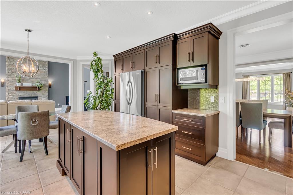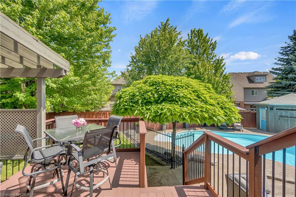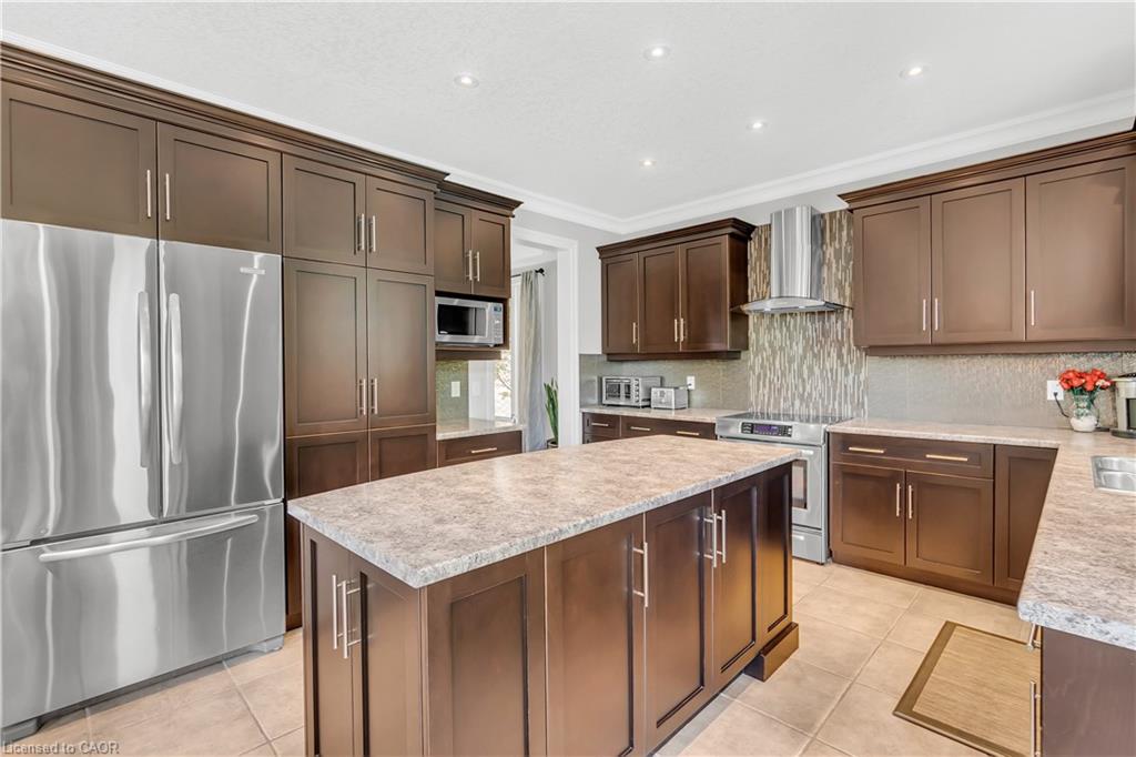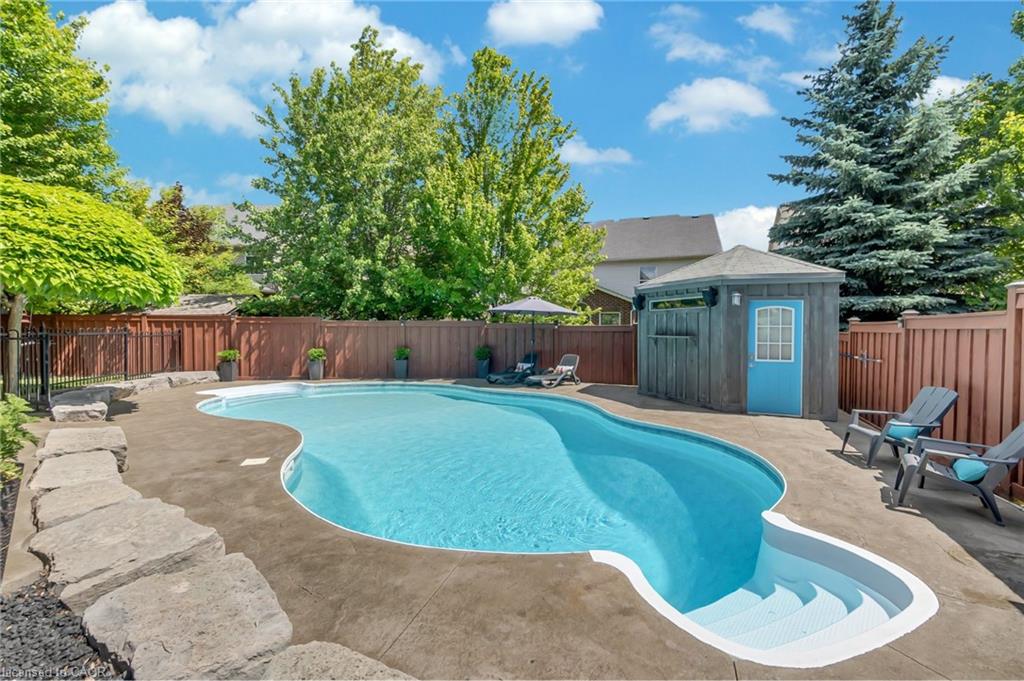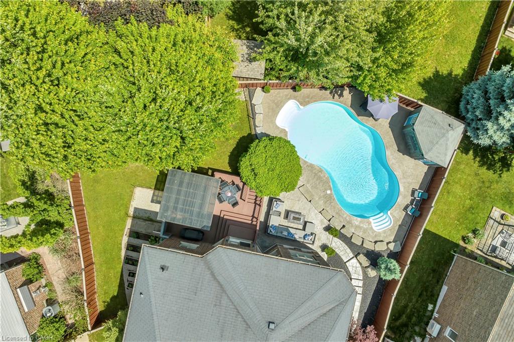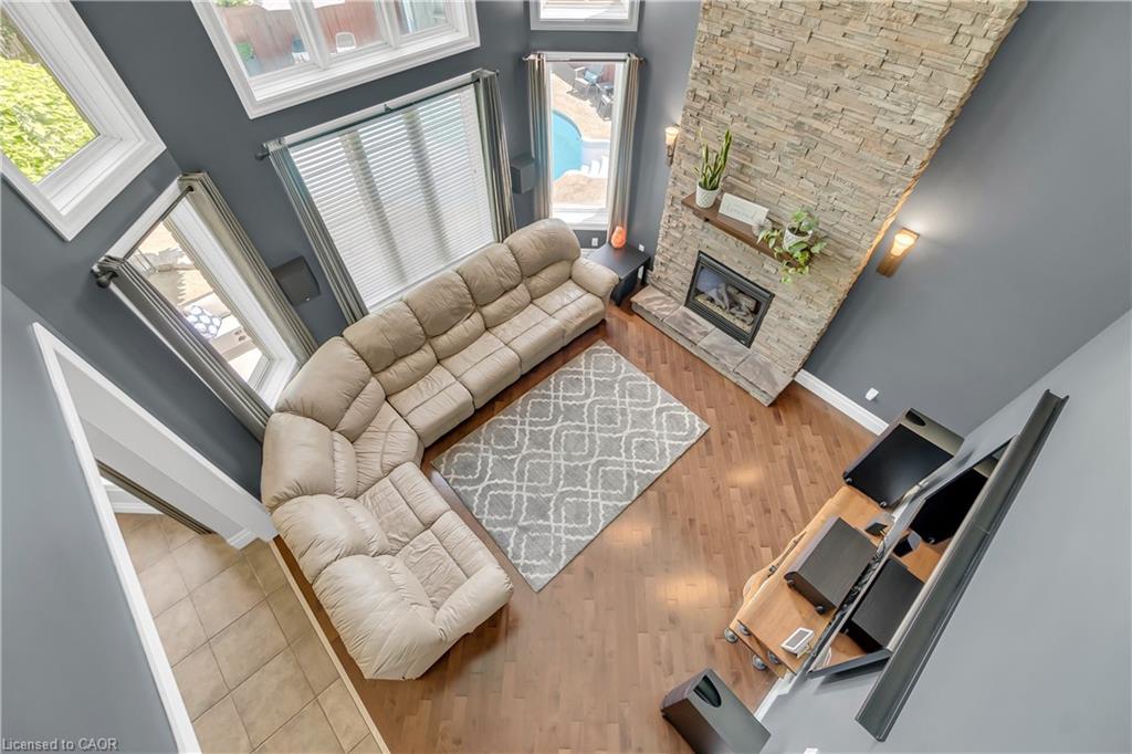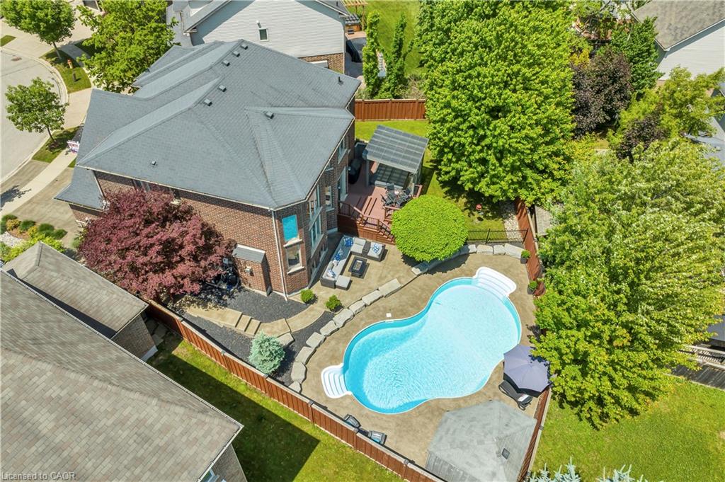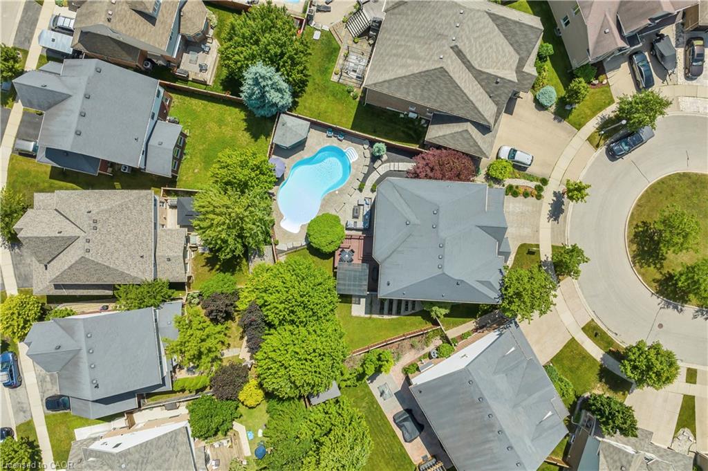 Welcome to 918 Fung Place, Kitchener, nestled in the highly sought-after Idlewood/Lackner Woods neighbourhood. Tucked away on a quiet court in a peaceful cul-de-sac, this exceptional detached home makes a striking first impression with its charming curb appeal, lush landscaping & generous parking for 4 vehicles: 2 in Garage, 2 in driveway. Step inside to a grand foyer with soaring 9ft ceilings & a carpet-free main level. The heart of the home is the breathtaking great room with 18-ft high ceilings, floor-to-ceiling stone fireplace, expansive windows, 8ft High Doors, custom crown moulding & beautifully finished trim work throughout. The modern kitchen features premium SS Appliances, ample cabinetry, chic backsplash & clear view of backyard paradise, while the adjacent dining area is perfect for family meals. A convenient main floor laundry room & a stylish powder room add further functionality. Upstairs, you’ll find 4 spacious bedrooms & 2 full bathrooms. The primary suite complete with a large walk-in closet & luxurious 5pc ensuite. The remaining bedrooms are generously sized with their own spacious closets & a shared bathroom. The unfinished basement features impressive 9-ft ceilings & offers endless possibilities: whether you envision a home theatre, gym, rec room, or personal retreat, the space is yours to design. Step outside to experience your own private resort-style oasis. The backyard is a true show-stopper, boasting an 18 x 36-foot;8ft deep saltwater in-ground heated pool, complete with a new water heater installed in 2023. Relax year-round in hot tub, perfectly sized for 6 or more people or entertain on the large deck that’s ideal for summer BBQs & family gatherings. There’s also plenty of green space for kids or pets to play. Located just minutes from Chicopee Ski Hill, top-rated schools, scenic parks, shopping plazas, public transit & easy access to Highway 7/8. Don’t miss your chance to own this stunning family home, Book your showing Today!