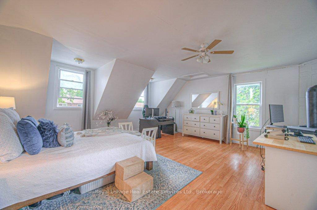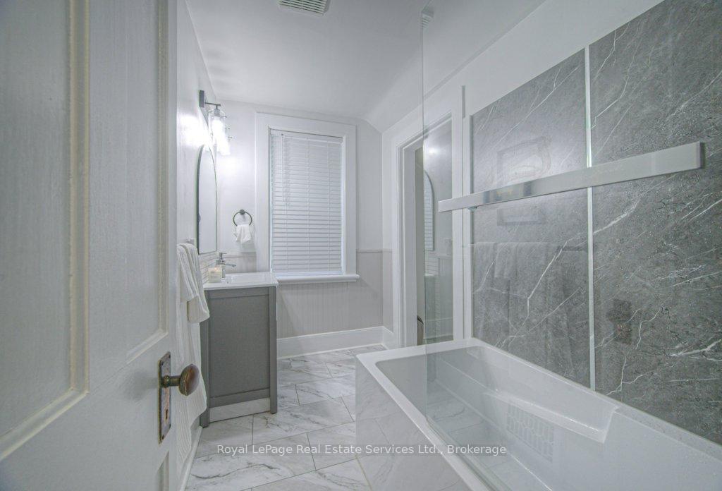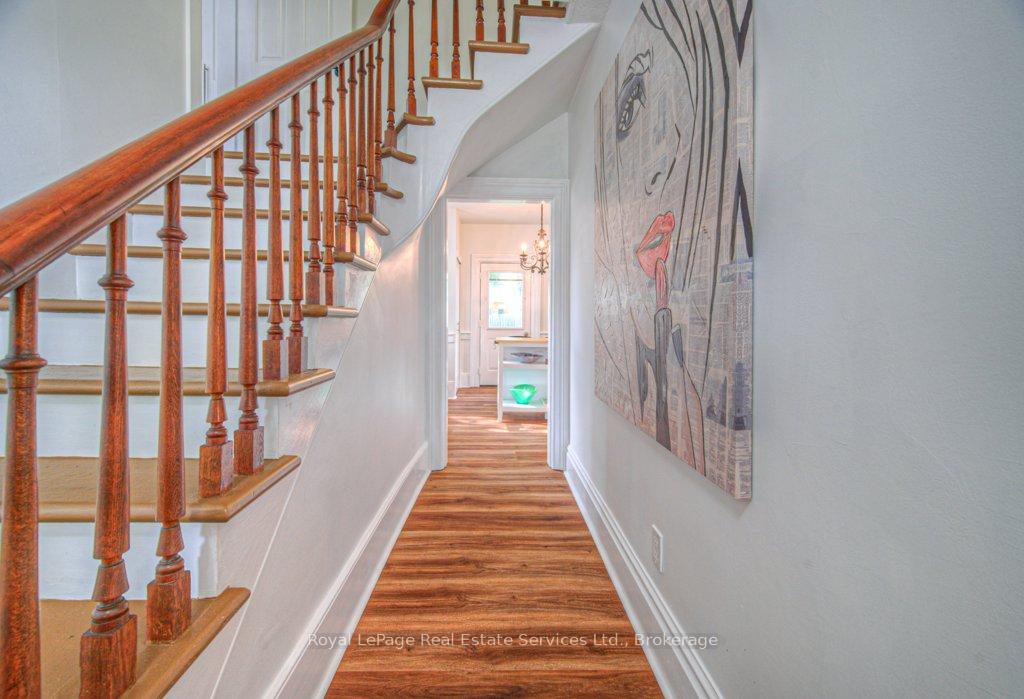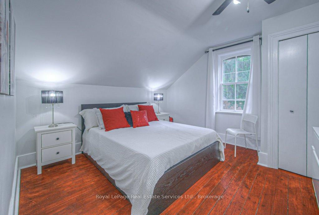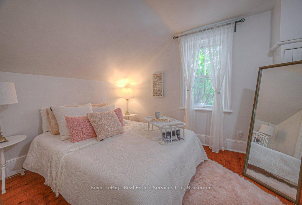 Stunning Turnkey 2-storey home in highly desirable and Historic ‘Hespeler’, Cambridge. PLUS fabulous Totally SEPARATE and self contained BASEMENT APARTMENT or Nanny suite.This picturesque 4 bedroom (+ 2)home is Beautifully Renovated/Updated w Attention to every detail! Quality craftsmanship & modern finishes. Soaring 9′ ceilings on both floors! Gorgeous large family size eat-in kitchen w great flow-Entertain, work, celebrate! Separate Dining Room combined w Cozy Living room provides intimate space for dinners, movies, lounging w family and friends etc. Walk out from kitchen to large fenced yard w new deck, gazebo, Cement path, mature trees, and garden shed.Main Floor finished w laundry & 2 pce powder room.Refinished Hardwood stairs and floors on second level w 4 bedrooms-X-large Primary RETREAT complete w freestanding gas fireplace, many large windows and dormers.This room offers a no fuss alternative from bdrm to OVERSIZED FAMILY ROOM. 3 other bedrooms are BRIGHT, FRESH AND FULL SIZED! New comfort flooring on main also has hdwd underneath.Vaulted ceilings and finishes like 14″ baseboards, chair rails and wainscoting have been preserved, representative of the old world charm you would expect from a solid home built in 1890’s. Brand new gorgeous VACANT 2 bdrm bsmt apt w sep entrance, offers eat in kitchen, good sized living room + 3 pce bath and private laundry, . “Income potential” for sure! Professionally painted throughout. Parking for 2 in garage plus paved 3 car drive. New floors, 2 kitchens, baths, eavestroughs, deck, laundry, front porch/railings, ceiling etc, 200 AMP electric, paint, stairs, landscaping, steps, doors etc. Pie shaped lot-APPROX 100 FRONT! Short walk to schools, parks, trails, shops and restaurants-downtown Hespeler. Easy access to highway 401 and Hwy24 Main Strip! Perfect for professionals, families or anyone who wants a quality lifestyle where function meets design! Supplement income w Market rent approx $1700-1800. QUIK CLOSE POSSIBLE!