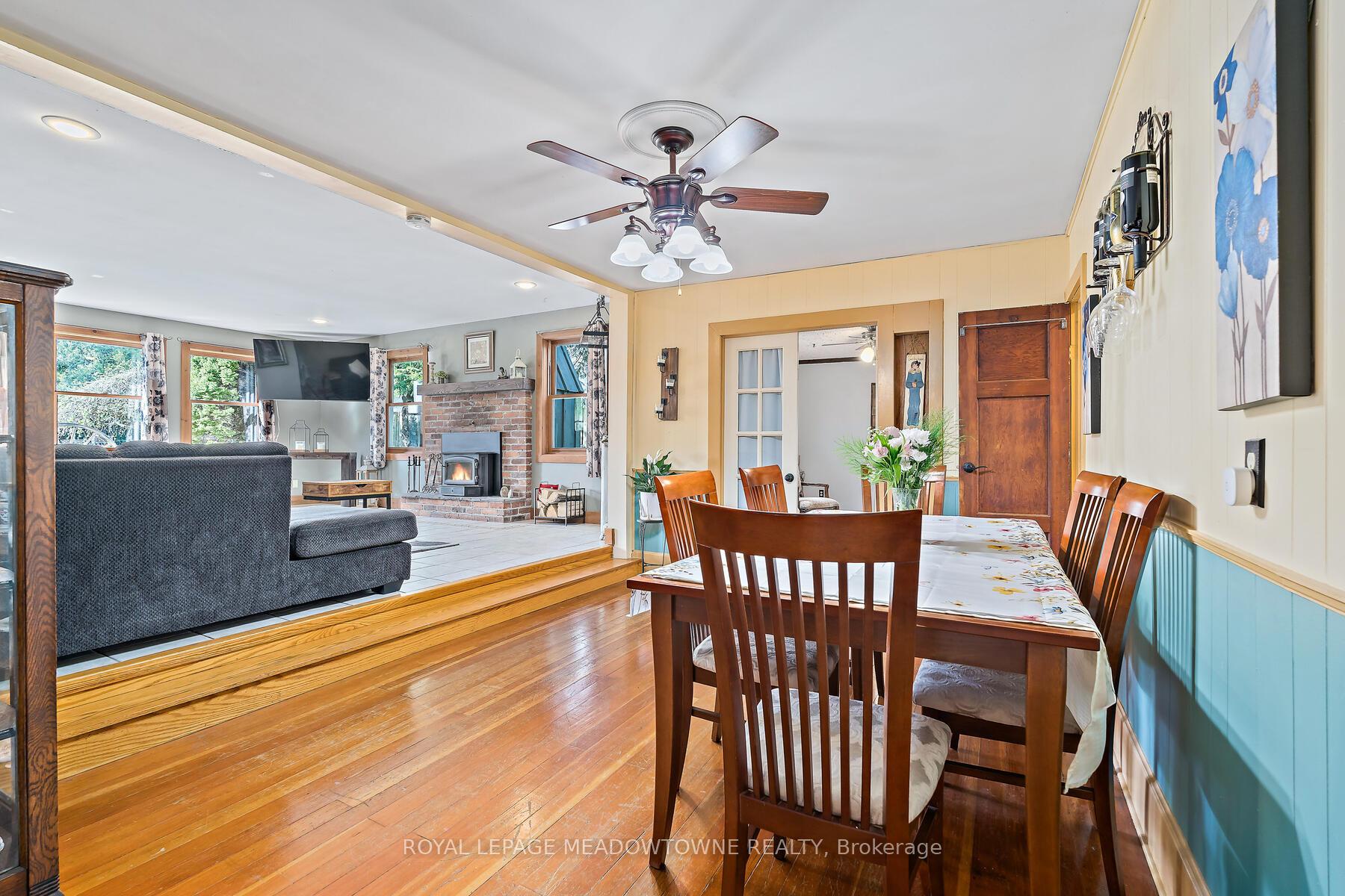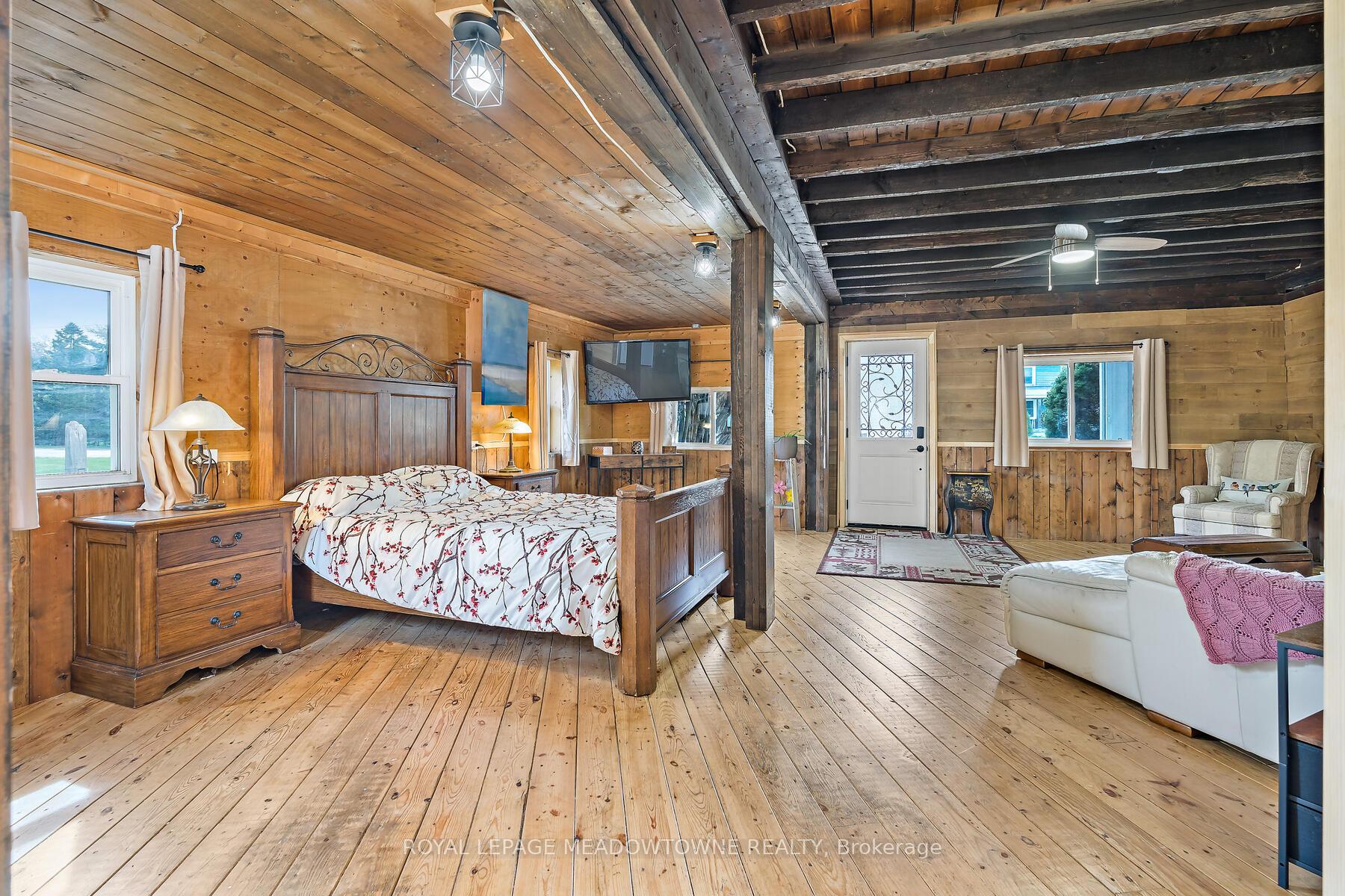 Located in the charming hamlet of Cedar Valley. You will find 9201 Sideroad 24. This property use to be the Old Cedar Valley General Store. So if you are looking for a home with character, history and charm then look no further. From the moment you walk through the front door, you can feel the warmth exuding from every room. Large open concept living / dining room area is great for entertaining and those big family get togethers. Updated kitchen has ample cupboard and counter space for you, laminate floors and large windows to let in loads of natural sunlight while allowing you to look out into your own little backyard garden sanctuary.Generous primary master bedroom with his and hers closets, wood floors, French doors and windows all the way around. Second bedroom looks out over the backyard and has built in shelves for additional storage. Your 4 piece Bathroom is conveniently located by the primary bedroom and is bright with a window in the shower. There is a spectacular bonus room that can be just about anything a family room, games room, man cave, studio the possibilities are absolutely endless, wood floors, great storage, separate entrance at the front and walkout to the backyard. Lower level is a full basement that has your laundry room and provides additional storage and a possible workshop space for the handyman. Enjoy your fully fenced backyard paradise, with beautiful perennial gardens and mature trees. Sitting on the back deck or around the bonfire pit embrace all the magic and tranquility this property has to offer. You have a garden shed for extra storage out back. Charm, character and functionality all together in this unique one of a kind property. Perfect for a first time buyers or for those looking to downsize or anyone who wants something no one else has. You don’t want to miss this little gem!!