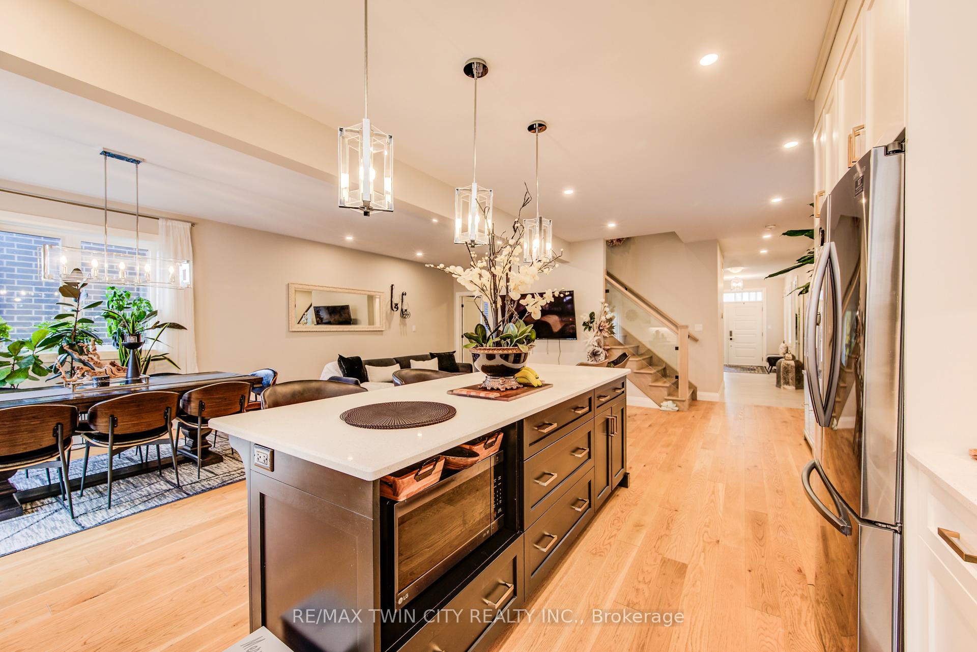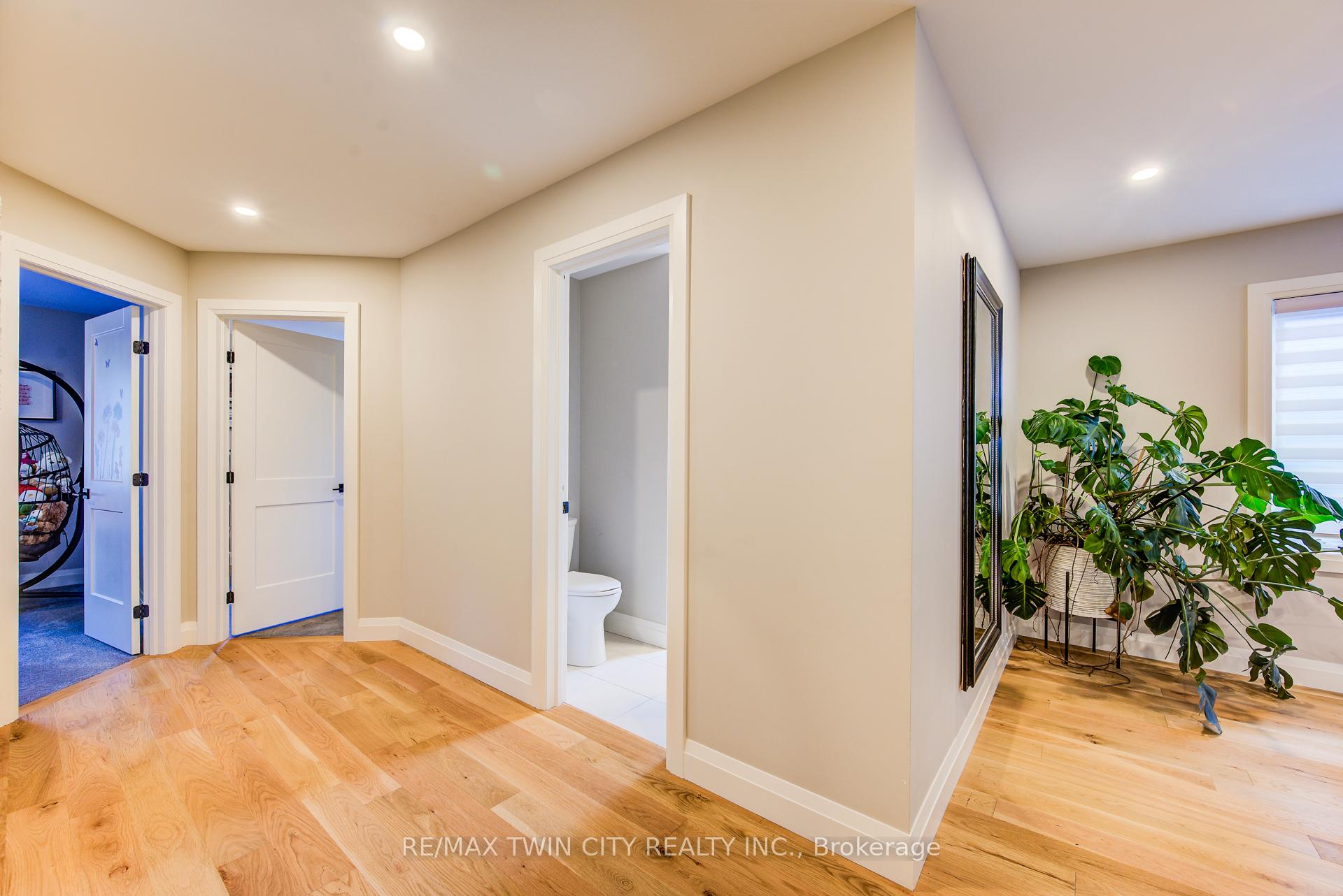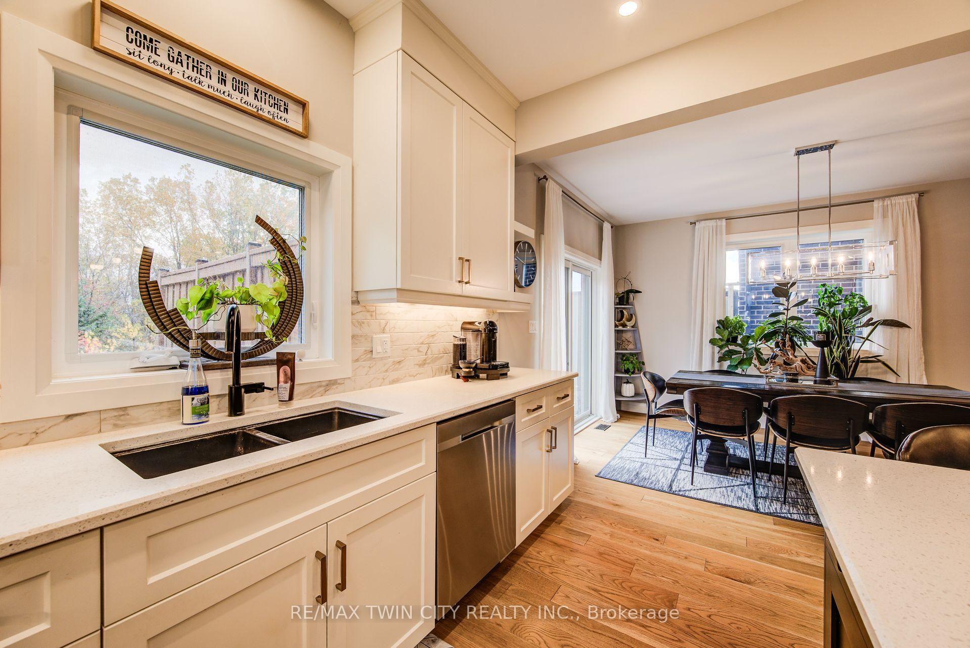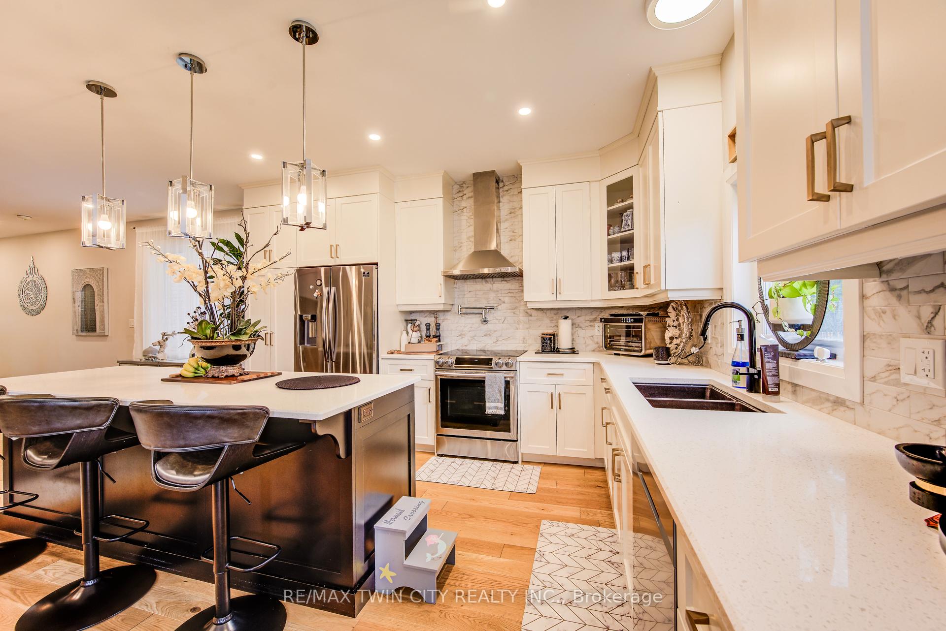 This stunning, former Crescent model Home in Doon Crossing is complete top to bottom with luxury finishes. No item has been overlooked when it comes to this beautifully finished, Dundee B model in South Kitchener, complete with a walkout basement with a bedroom and a Kitchen, which makes it perfect for an in-law suite. Nestled amongst a private collection of custom homes, this 2-story home feels extremely lavish and spacious. Upon entry, you walk into a large foyer with ample storage and a 2-piece powder room. Once in the heart of the home, you will find a breathtaking kitchen with custom cabinetry with gold accents – including tall upper cabinets with crown moulding, quartz countertops, a massive island with pendant lighting, pot filler and tasteful backsplash. This kitchen is truly to die for. Adjacent to the kitchen, you will find a bright and open concept living room and a dining room, perfect for hosting friends and family. Rounding out the main floor is a separate office space for those working from home. Moving upstairs, you will find a custom staircase with glass panelling that leads you to the breathtaking master suite. The master suite is separate from the remaining 3 bedrooms on this floor, has two large walk-in closets and an ensuite you will never want to leave; it is complete with a soaker tub, walk-in shower with bench and a double vanity. The second floor has 3 other large bedrooms and another bathroom for the rest of the family. Chapel Hill Court is 7 minutes to the 401, close to shopping and great schools. There are ample walking trails in the area, a golf course and Conestoga College. Every detail in this home is finished with class and quality. Large windows throughout the home on every level for natural light, and a gorgeous glass staircase leading you to the upper level. Landscaped tastefully, fully fenced private backyard with an upper-level deck backing onto a natural environment. This home is a must-see! You will truly be amazed!