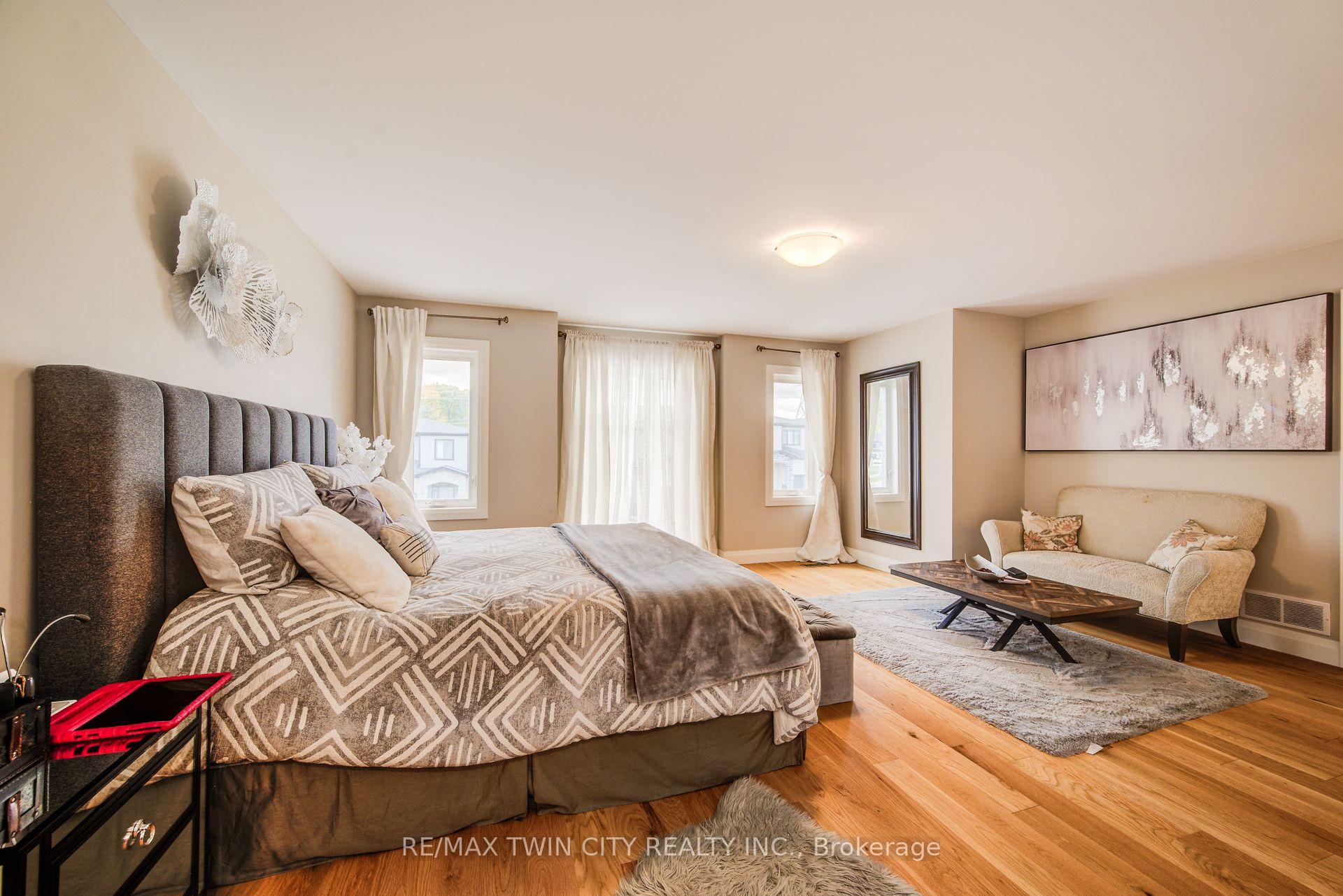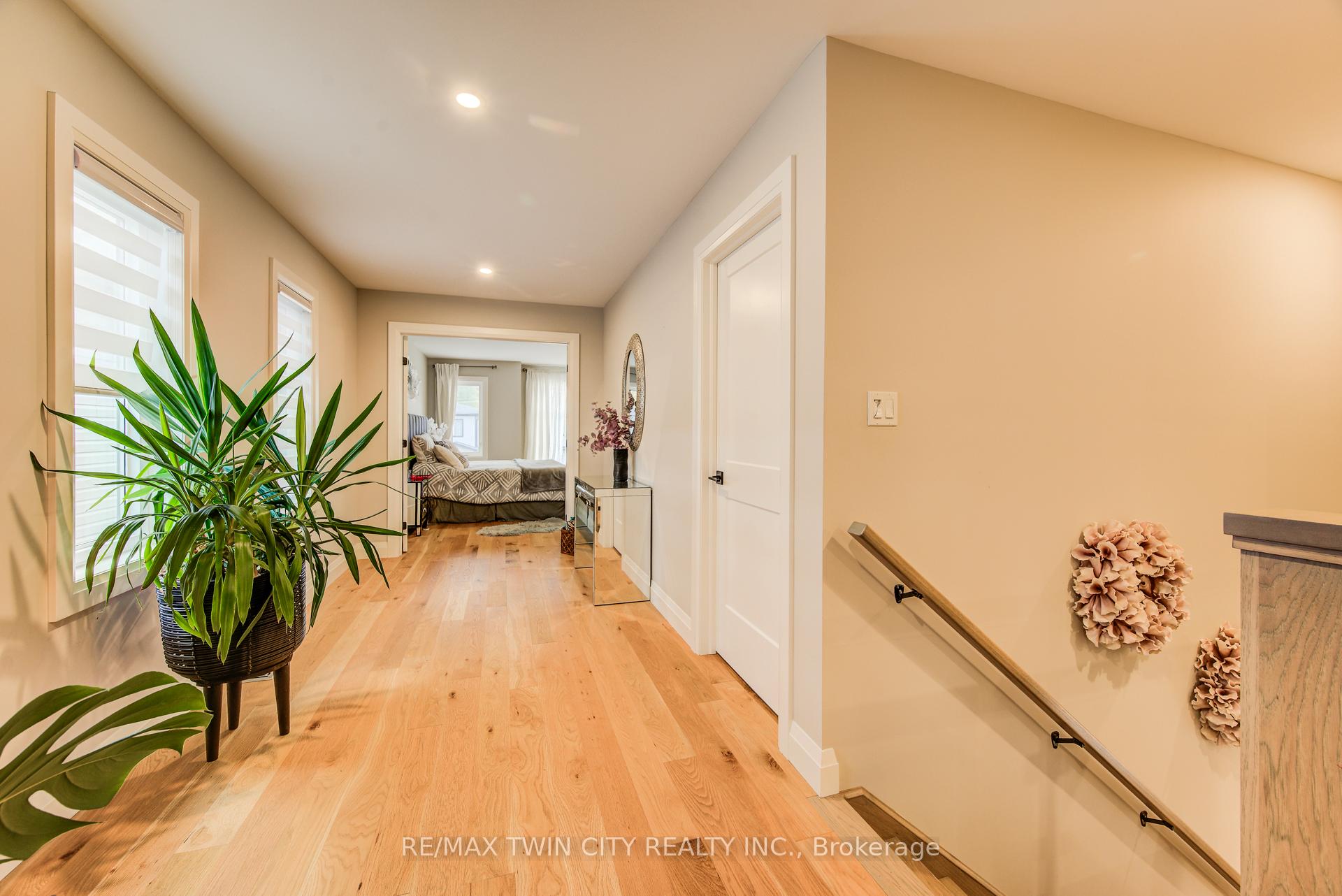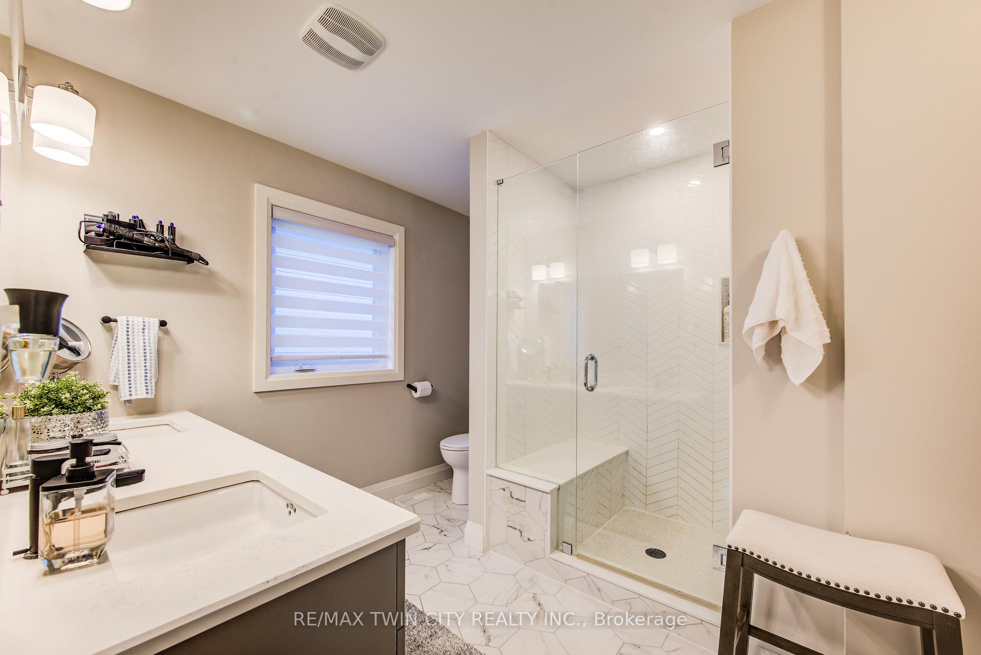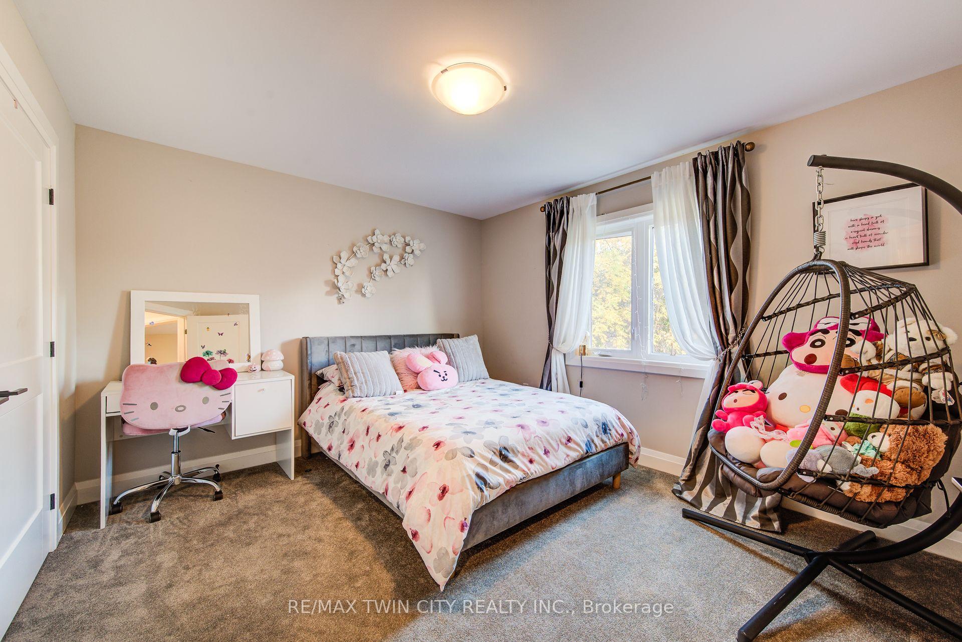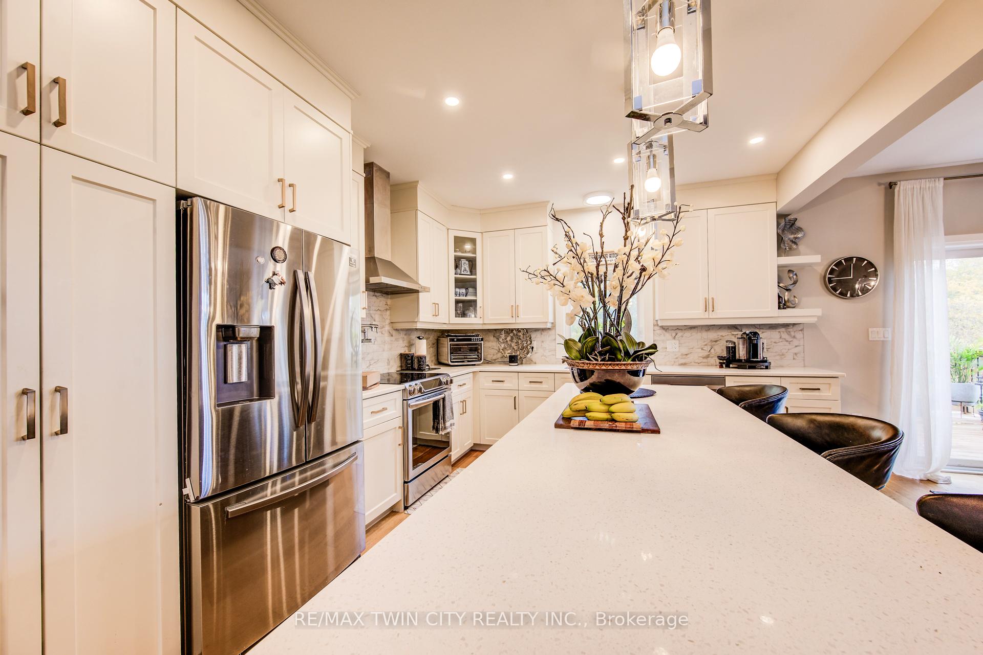 This stunning, former Crescent model Home in Doon Crossing is complete top to bottom with luxury finishes. No item has been overlooked when it comes to this beautifully finished, Dundee B model in South Kitchener, complete with a walkout basement with a bedroom and a Kitchen, which makes it perfect for an in-law suite. Nestled amongst a private collection of custom homes, this 2-story home feels extremely lavish and spacious. Upon entry, you walk into a large foyer with ample storage and a 2-piece powder room. Once in the heart of the home, you will find a breathtaking kitchen with custom cabinetry with gold accents – including tall upper cabinets with crown moulding, quartz countertops, a massive island with pendant lighting, pot filler and tasteful backsplash. This kitchen is truly to die for. Adjacent to the kitchen, you will find a bright and open concept living room and a dining room, perfect for hosting friends and family. Rounding out the main floor is a separate office space for those working from home. Moving upstairs, you will find a custom staircase with glass panelling that leads you to the breathtaking master suite. The master suite is separate from the remaining 3 bedrooms on this floor, has two large walk-in closets and an ensuite you will never want to leave; it is complete with a soaker tub, walk-in shower with bench and a double vanity. The second floor has 3 other large bedrooms and another bathroom for the rest of the family. Chapel Hill Court is 7 minutes to the 401, close to shopping and great schools. There are ample walking trails in the area, a golf course and Conestoga College. Every detail in this home is finished with class and quality. Large windows throughout the home on every level for natural light, and a gorgeous glass staircase leading you to the upper level. Landscaped tastefully, fully fenced private backyard with an upper-level deck backing onto a natural environment. This home is a must-see! You will truly be amazed!