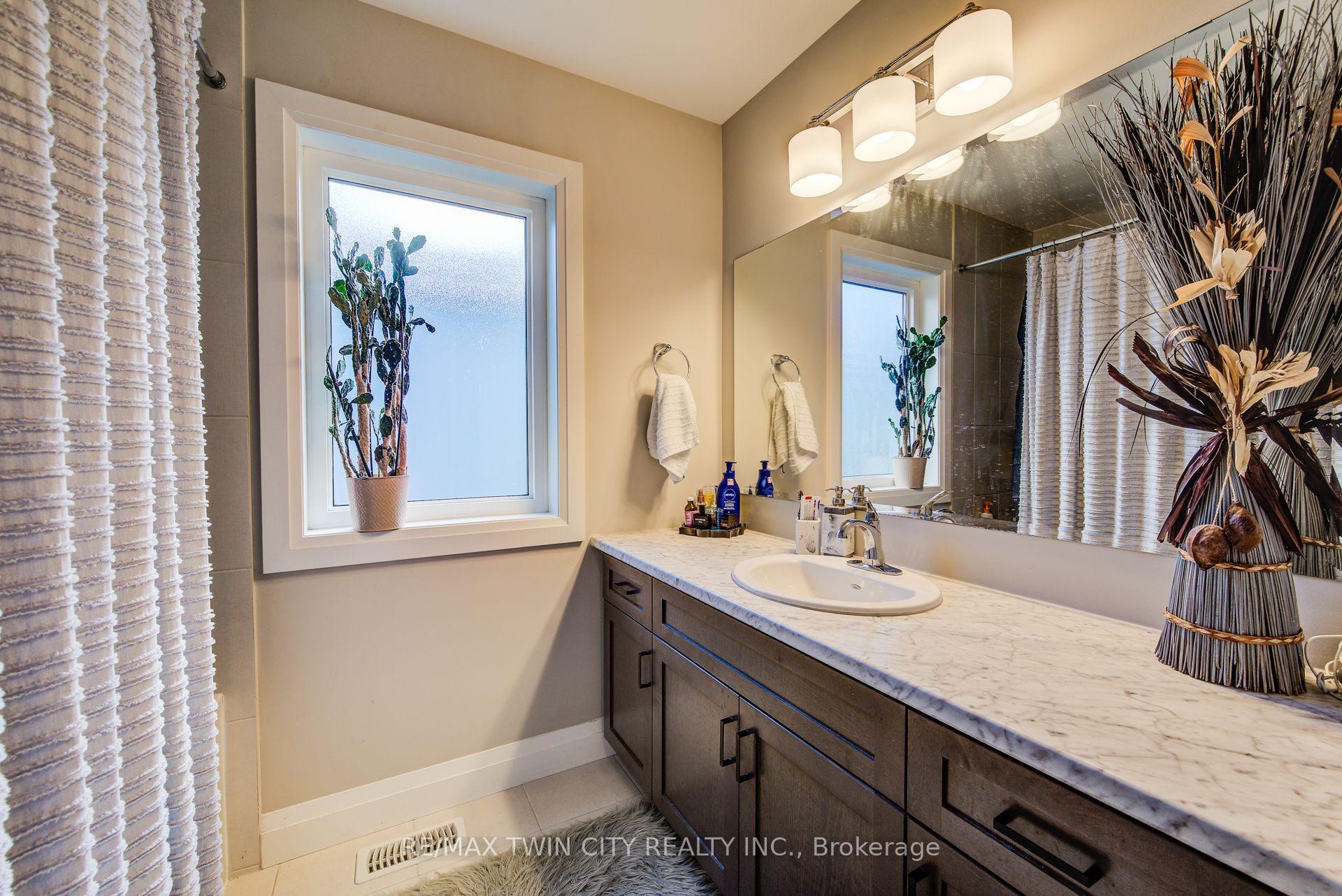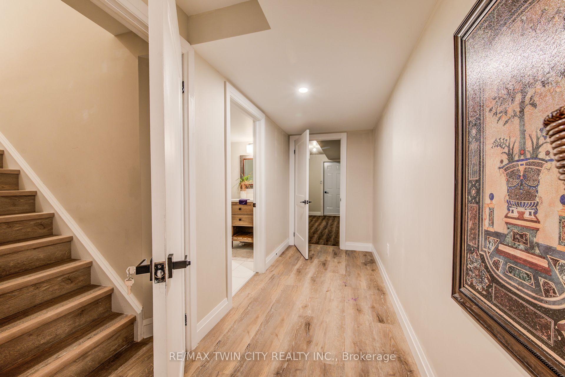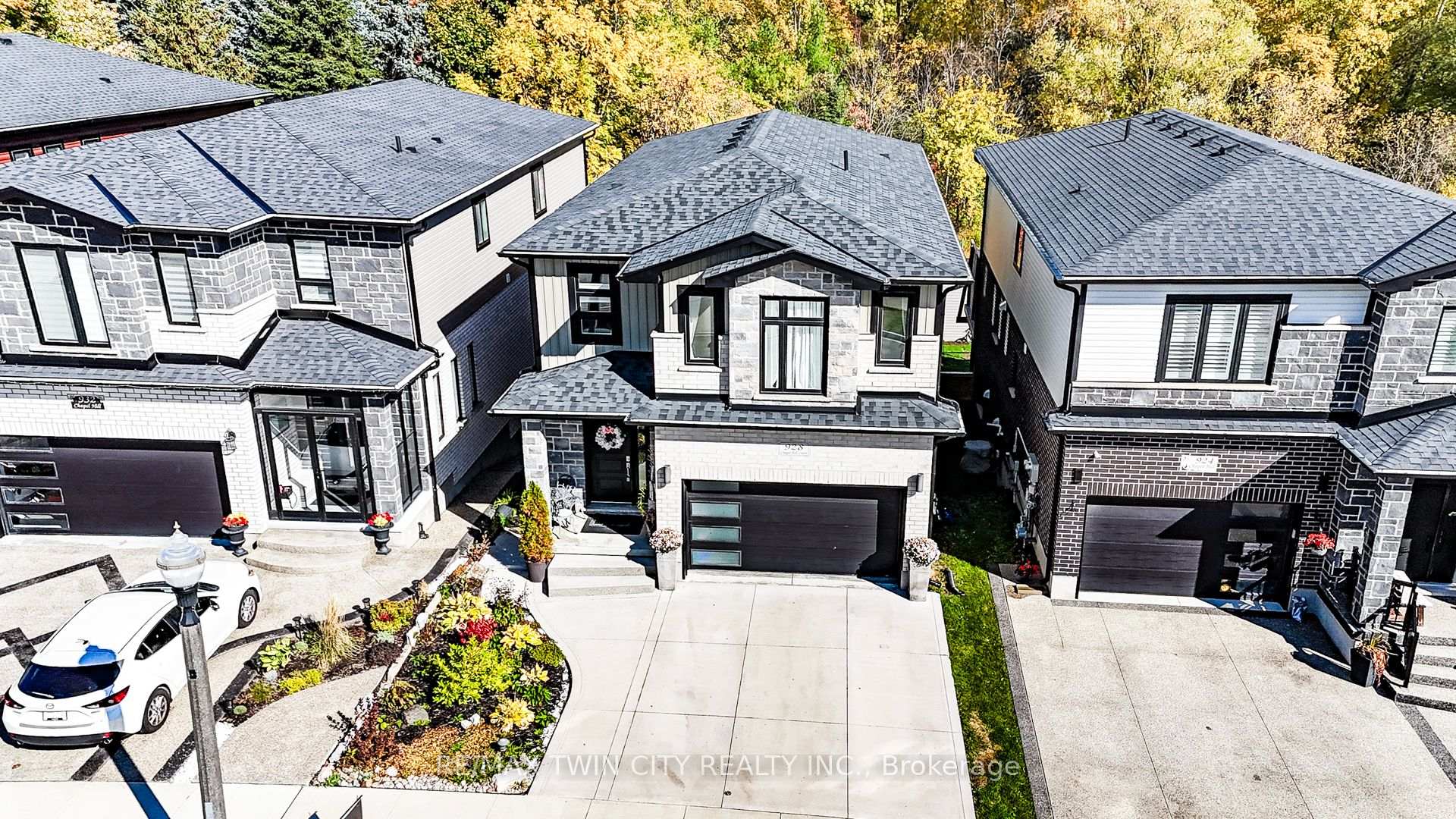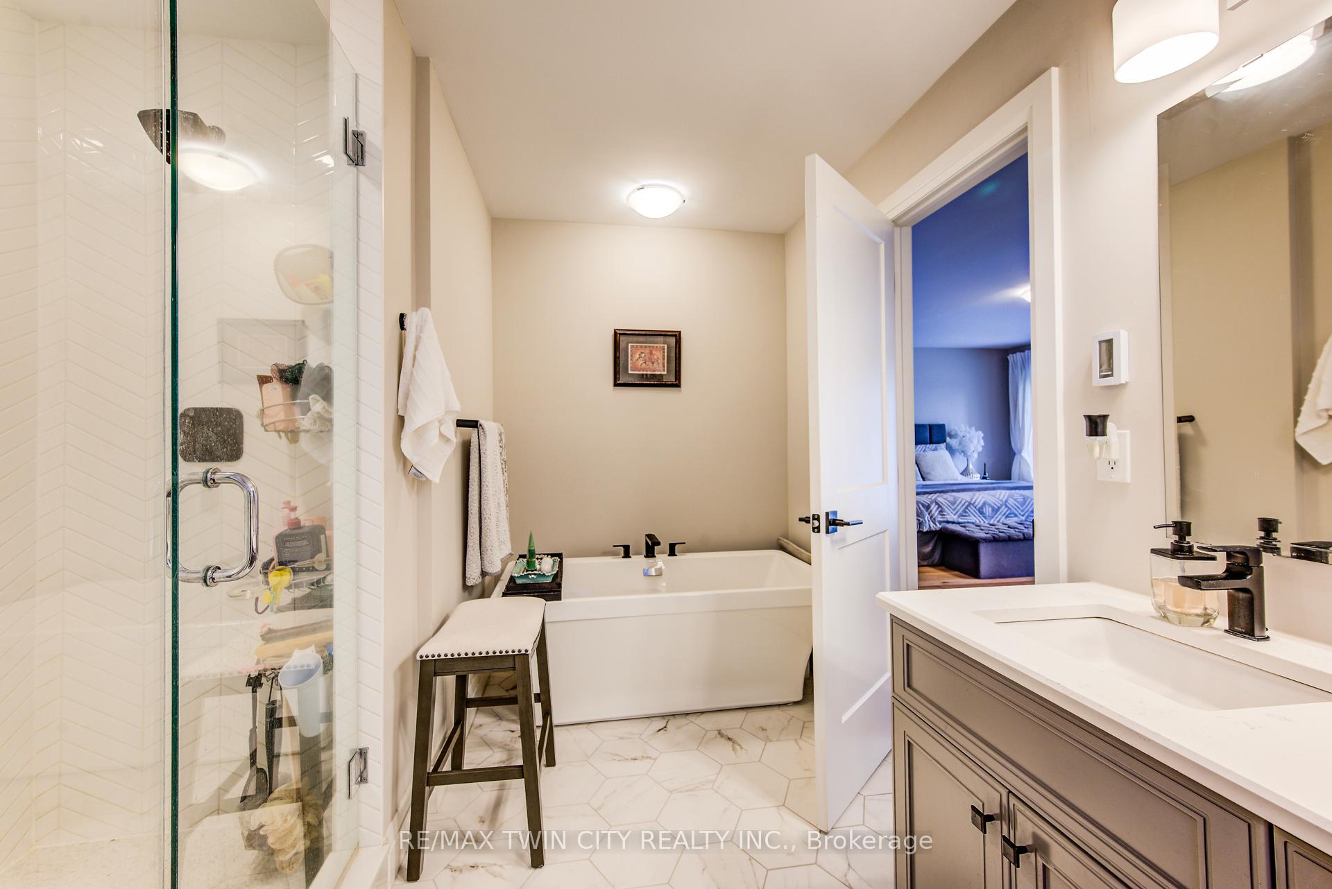 This stunning, former Crescent model Home in Doon Crossing is complete top to bottom with luxury finishes. No item has been overlooked when it comes to this beautifully finished, Dundee B model in South Kitchener, complete with a walkout basement with a bedroom and a Kitchen, which makes it perfect for an in-law suite. Nestled amongst a private collection of custom homes, this 2-story home feels extremely lavish and spacious. Upon entry, you walk into a large foyer with ample storage and a 2-piece powder room. Once in the heart of the home, you will find a breathtaking kitchen with custom cabinetry with gold accents – including tall upper cabinets with crown moulding, quartz countertops, a massive island with pendant lighting, pot filler and tasteful backsplash. This kitchen is truly to die for. Adjacent to the kitchen, you will find a bright and open concept living room and a dining room, perfect for hosting friends and family. Rounding out the main floor is a separate office space for those working from home. Moving upstairs, you will find a custom staircase with glass panelling that leads you to the breathtaking master suite. The master suite is separate from the remaining 3 bedrooms on this floor, has two large walk-in closets and an ensuite you will never want to leave; it is complete with a soaker tub, walk-in shower with bench and a double vanity. The second floor has 3 other large bedrooms and another bathroom for the rest of the family. Chapel Hill Court is 7 minutes to the 401, close to shopping and great schools. There are ample walking trails in the area, a golf course and Conestoga College. Every detail in this home is finished with class and quality. Large windows throughout the home on every level for natural light, and a gorgeous glass staircase leading you to the upper level. Landscaped tastefully, fully fenced private backyard with an upper-level deck backing onto a natural environment. This home is a must-see! You will truly be amazed!